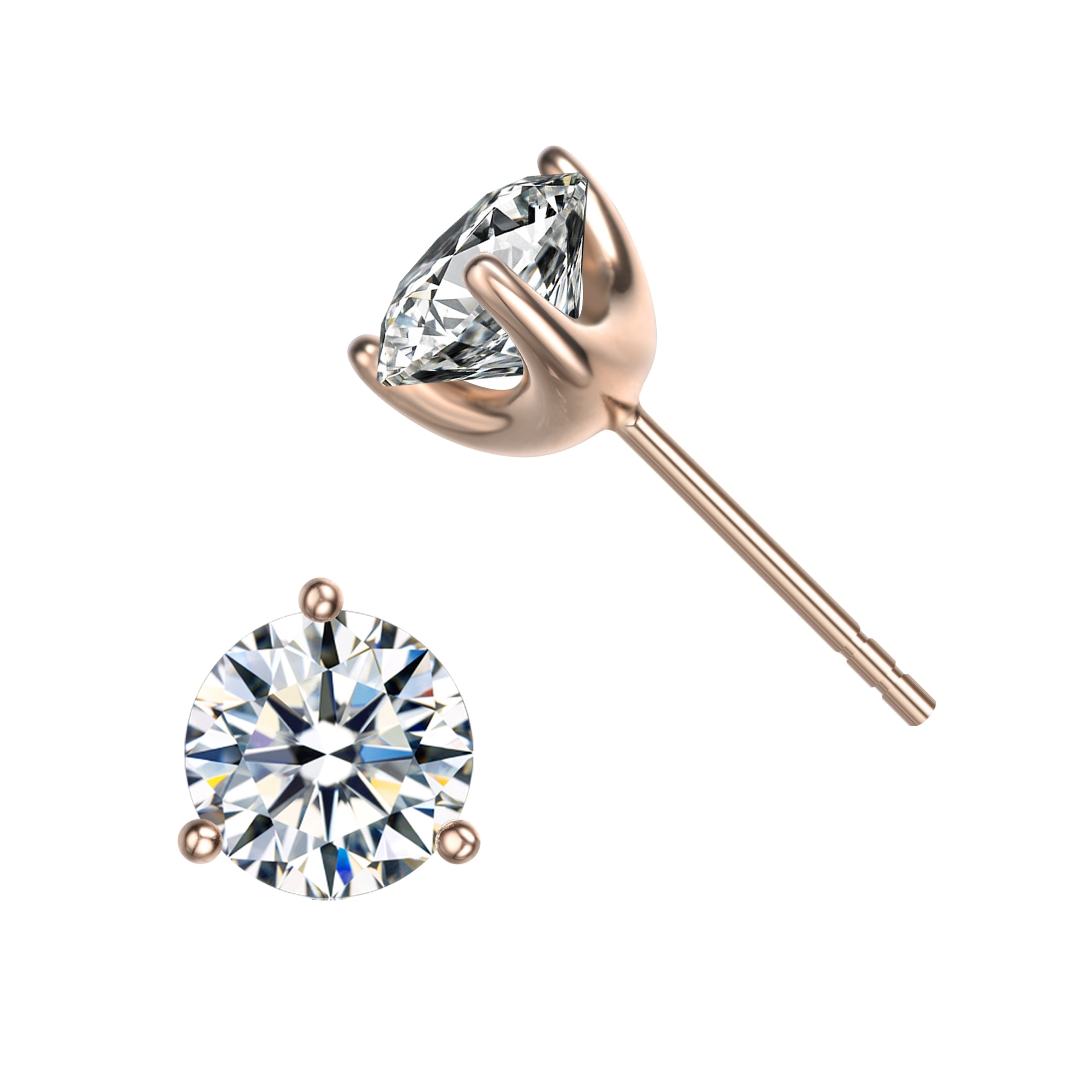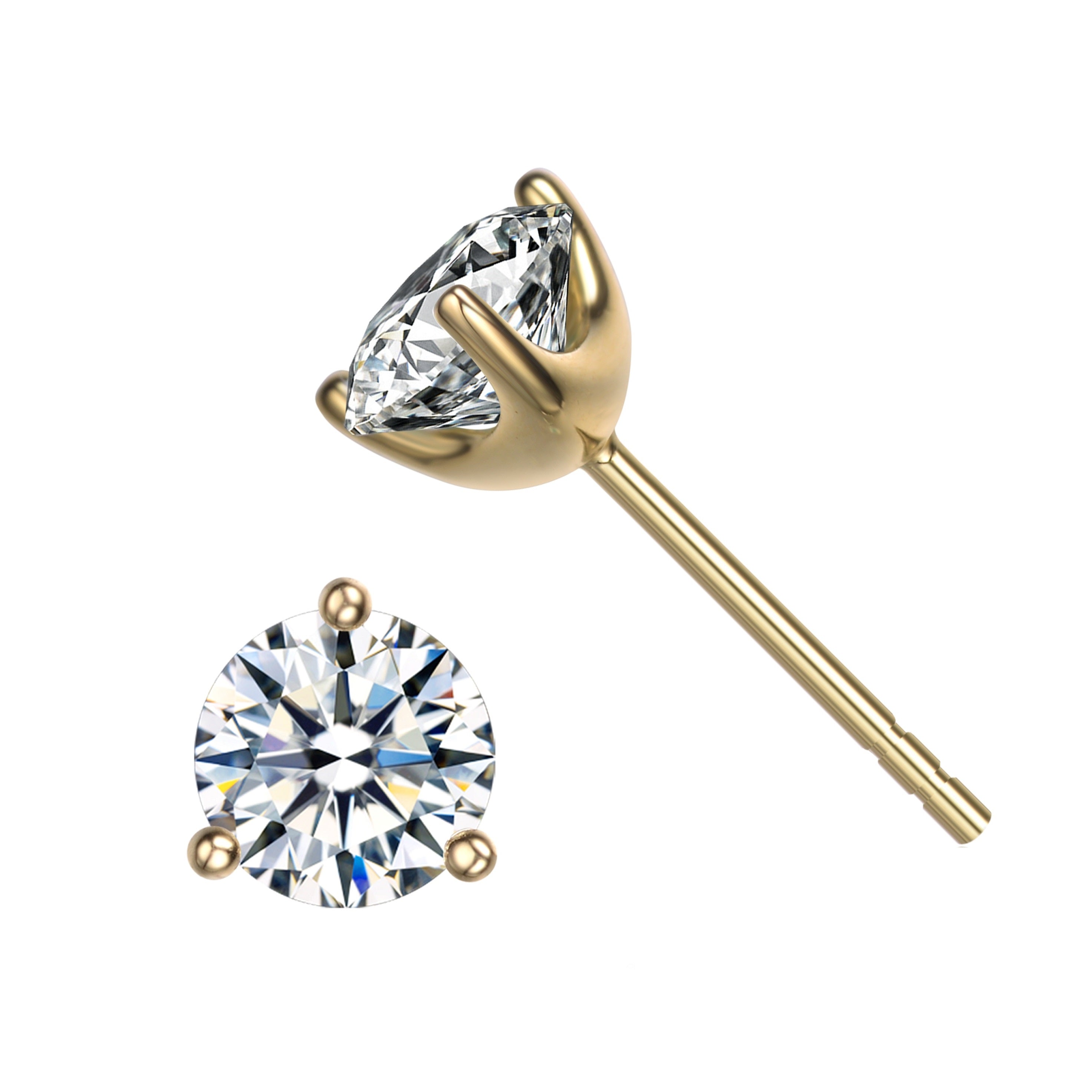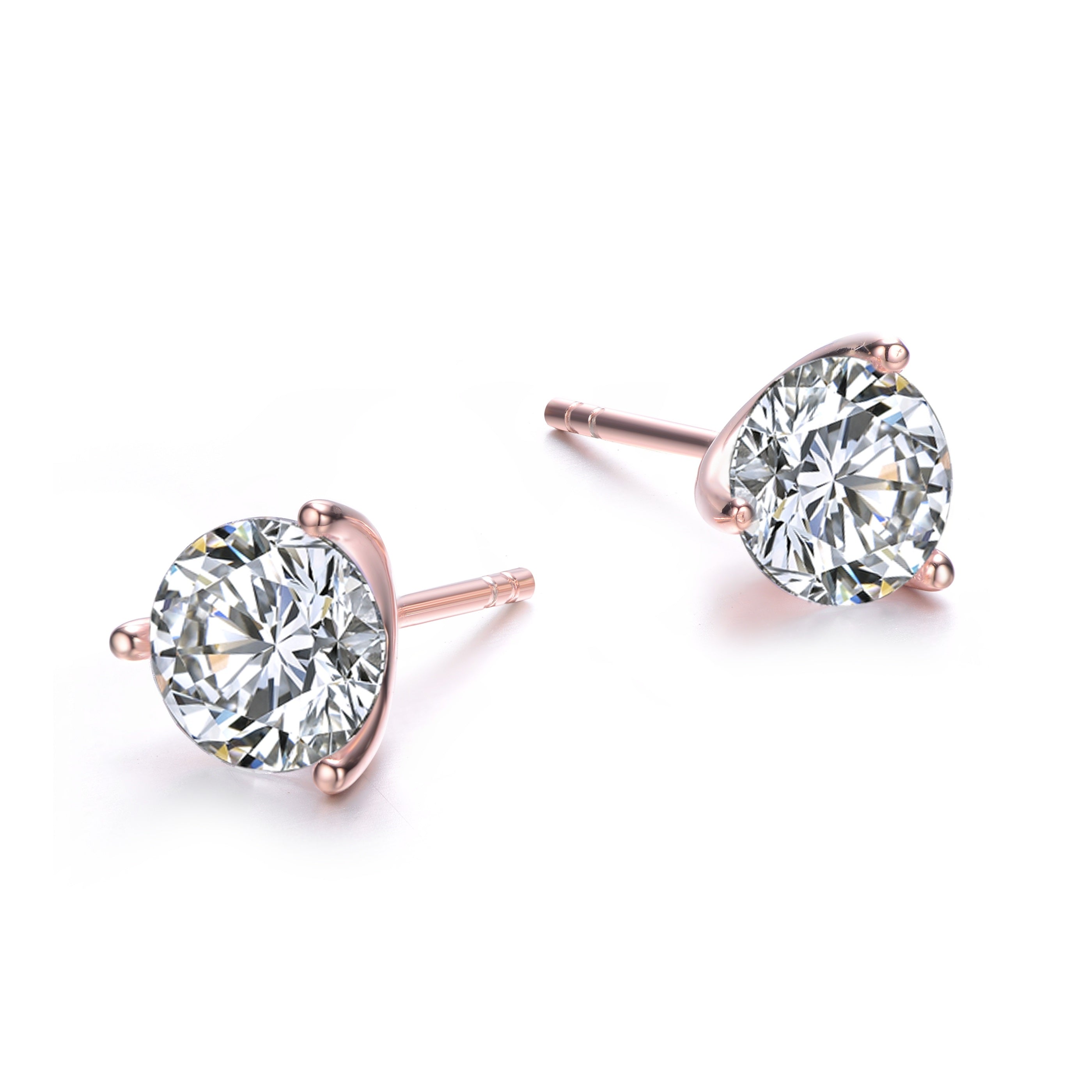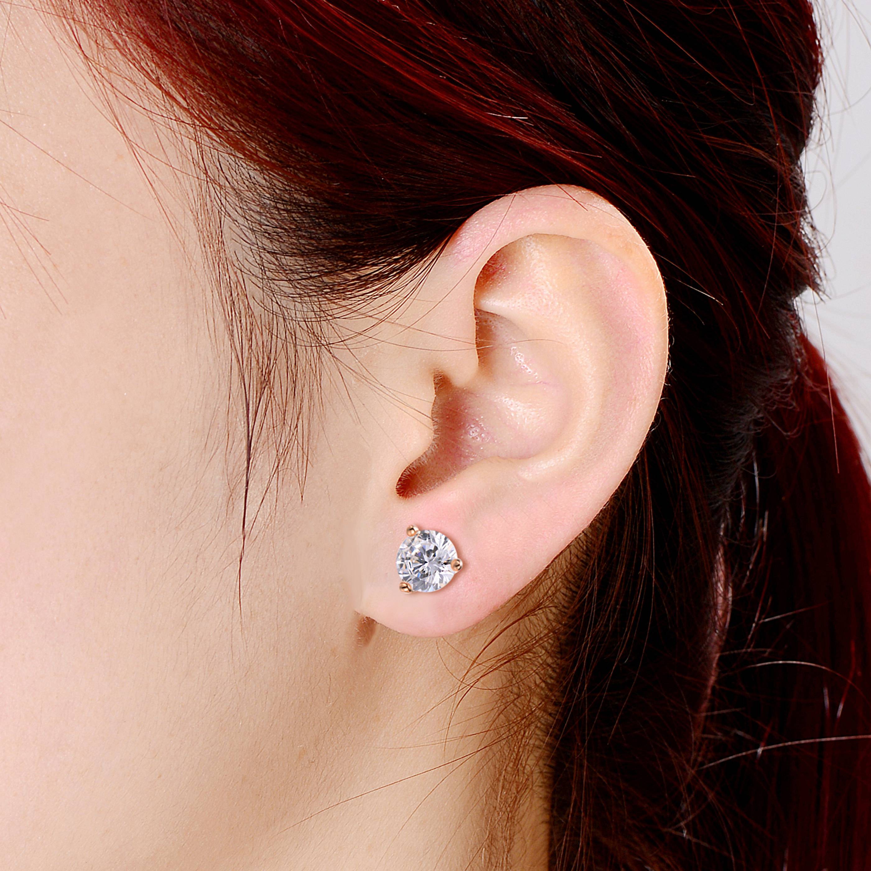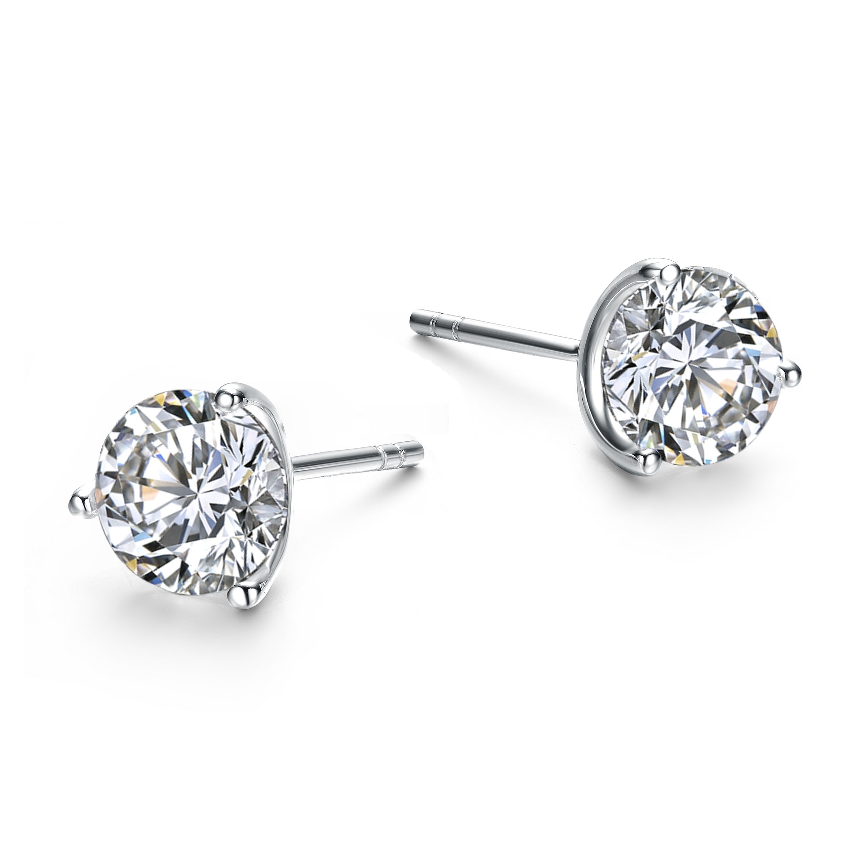 White Gold Plated 3-Prong Martini Solitaire Stud Earrings