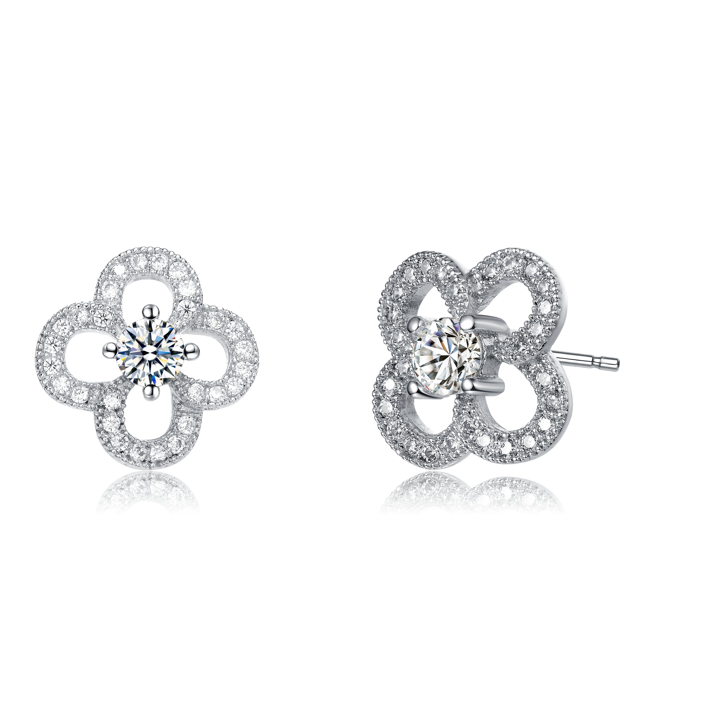 These stud earrings feature a delightful flower shape, crafted with sparkling cubic zirconia. Each petal glimmers, creating a radiant bloom around a lustrous center stone. Perfect for adding a floral touch of glamour.