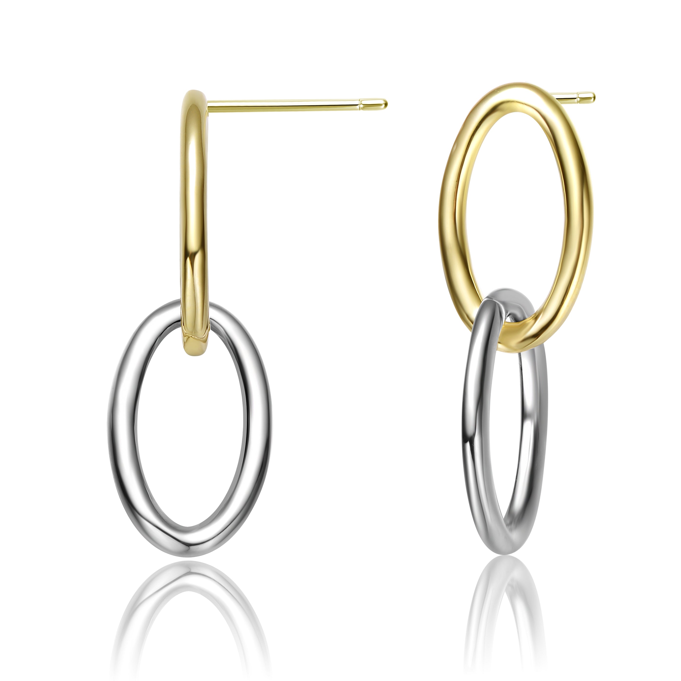 Rg 14k Gold Plated Two Tone Oval Drop Earrings