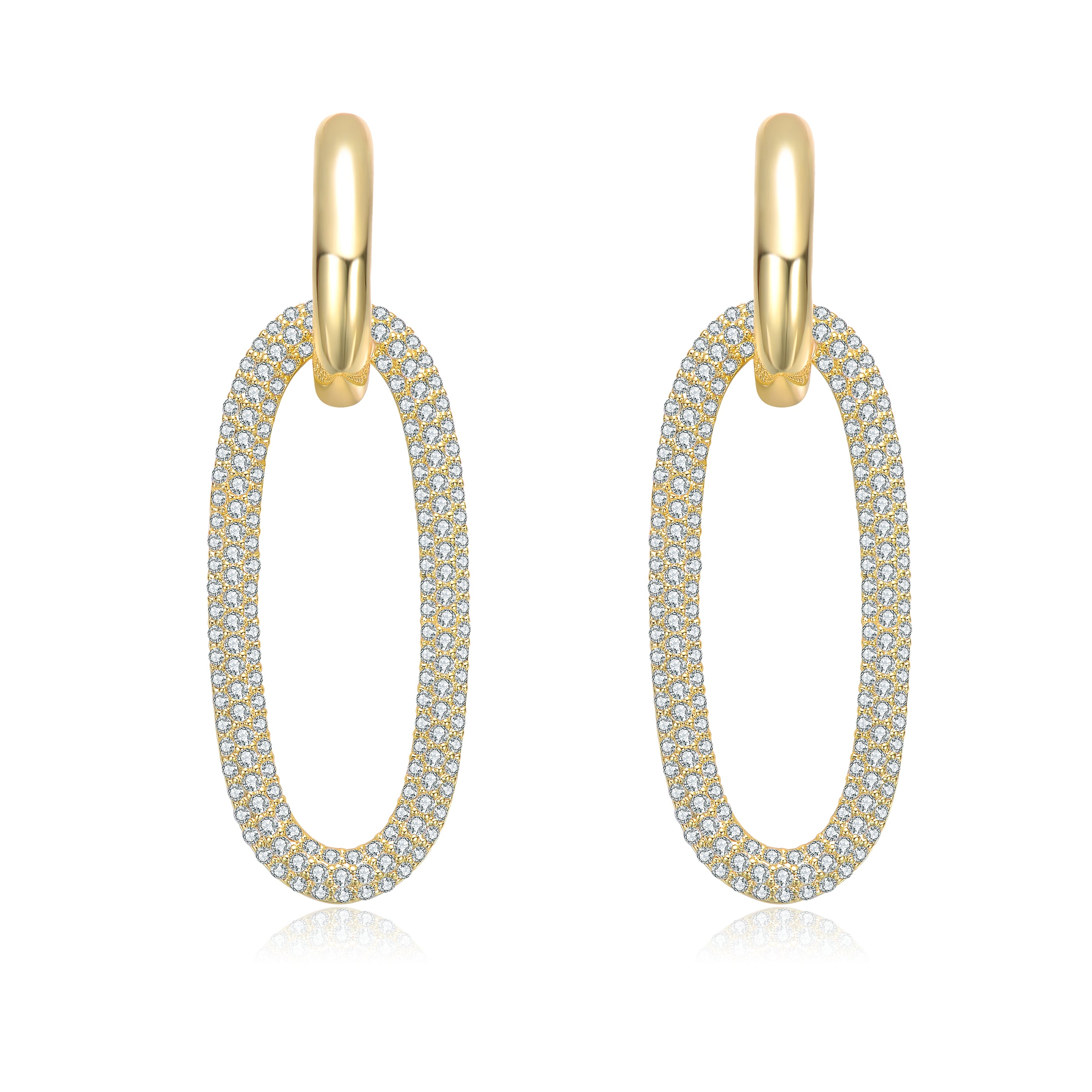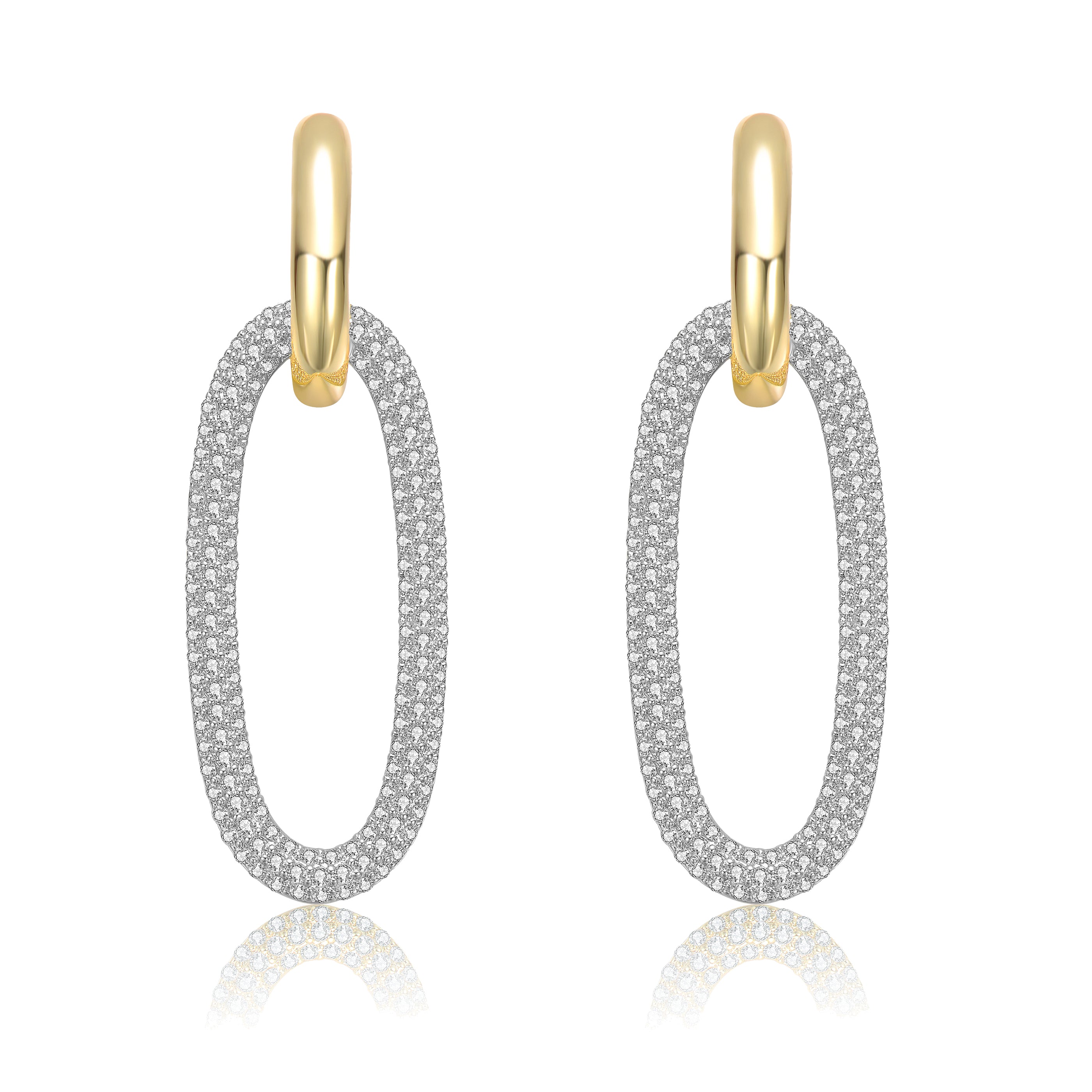 These beautiful huggie hoop earrings feature a tubular shape, making them easy to mix and match. A shimmering oval hoop with Lab Created Diamonds is linked to the bottom of each hoop, inspired by contemporary jewelry designs. Curved posts provide an infinity fit sitting close to the earlobes.