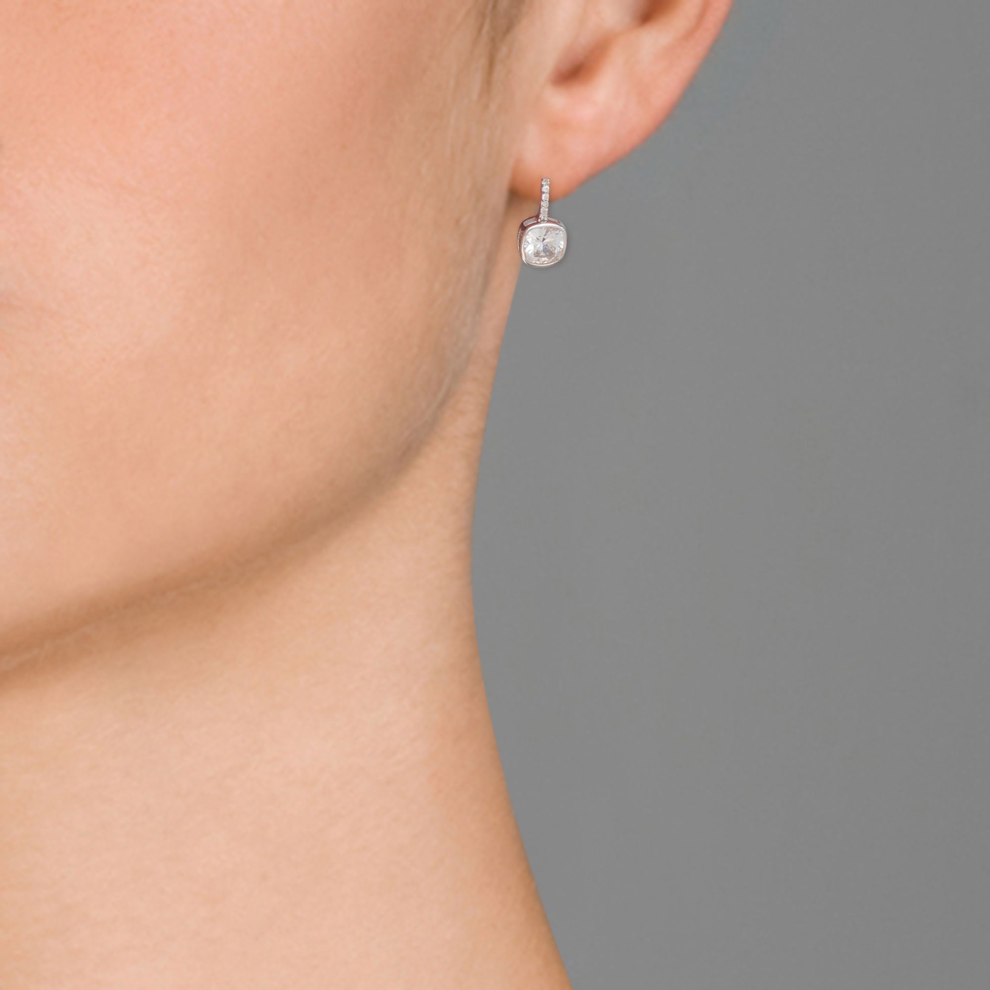 These fine earrings feature square-cut clear simulated stones, which dangle under a thin row of round clear simulated stones. Crafted with platinum plating, the earrings are secured with butterfly clasps. This exquisite piece of jewelry is perfect for every occasion and makes an excellent gift as well.