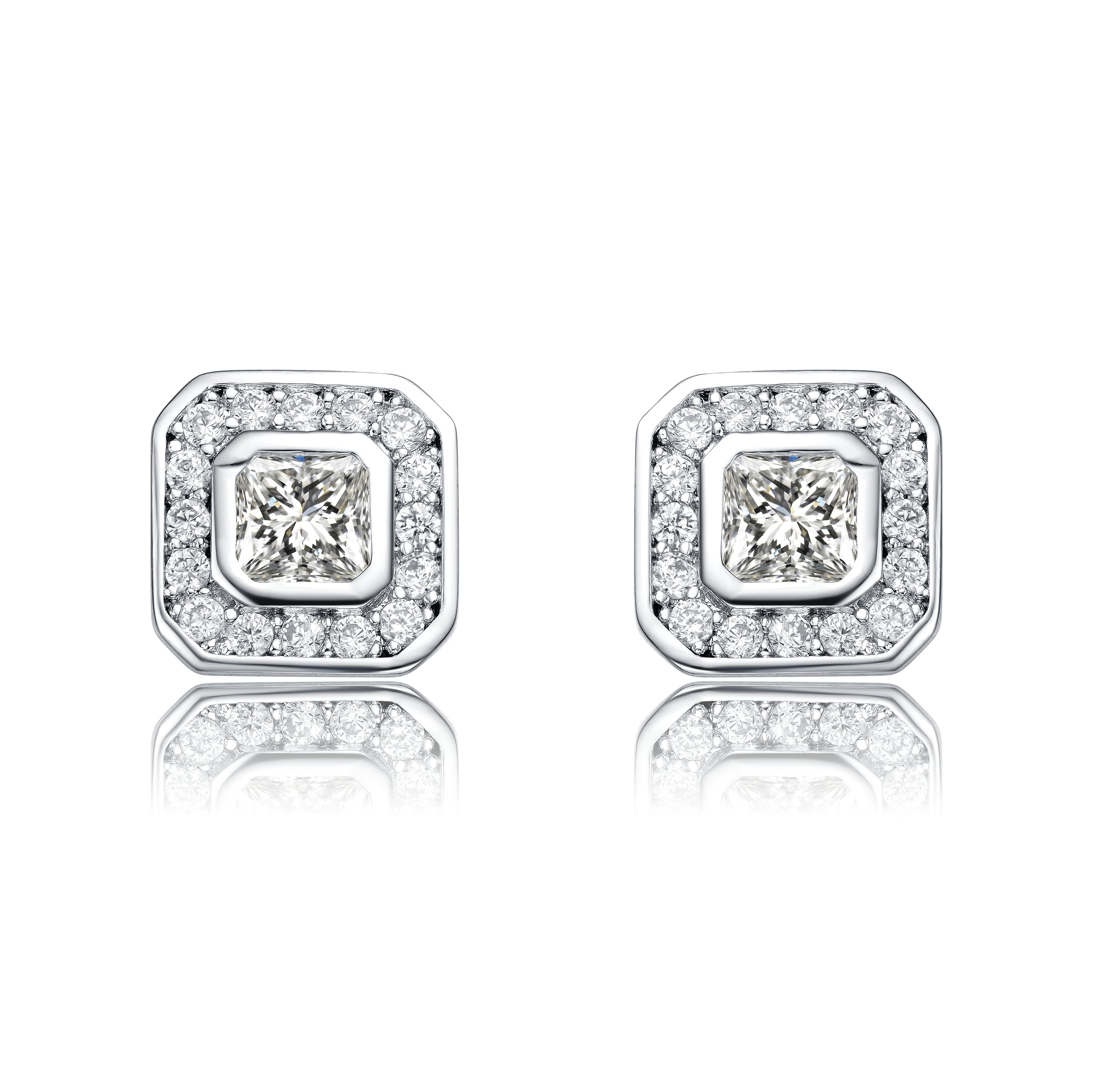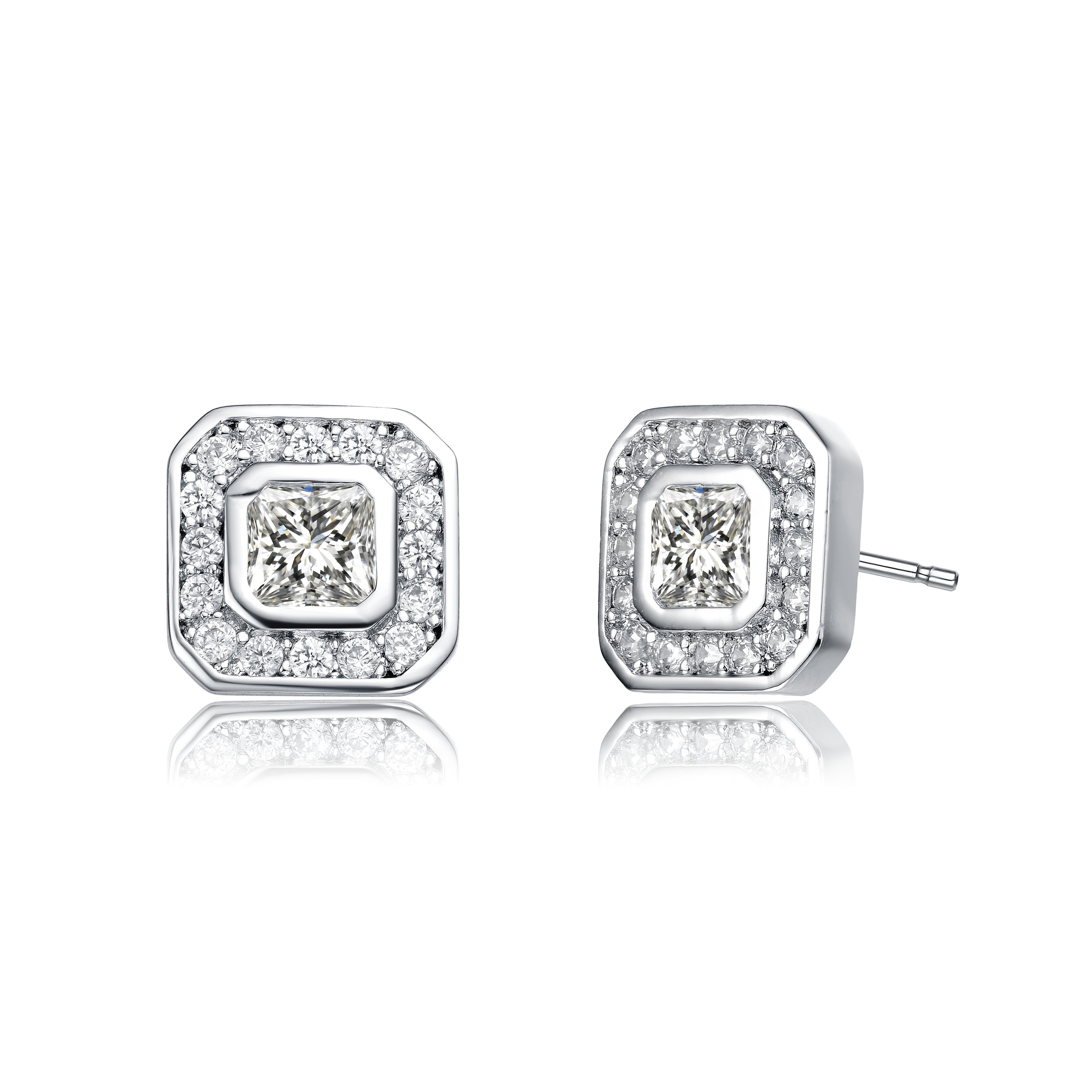 Exclusive Rhodium Plated Cubic Zirconia Square Stud Earrings