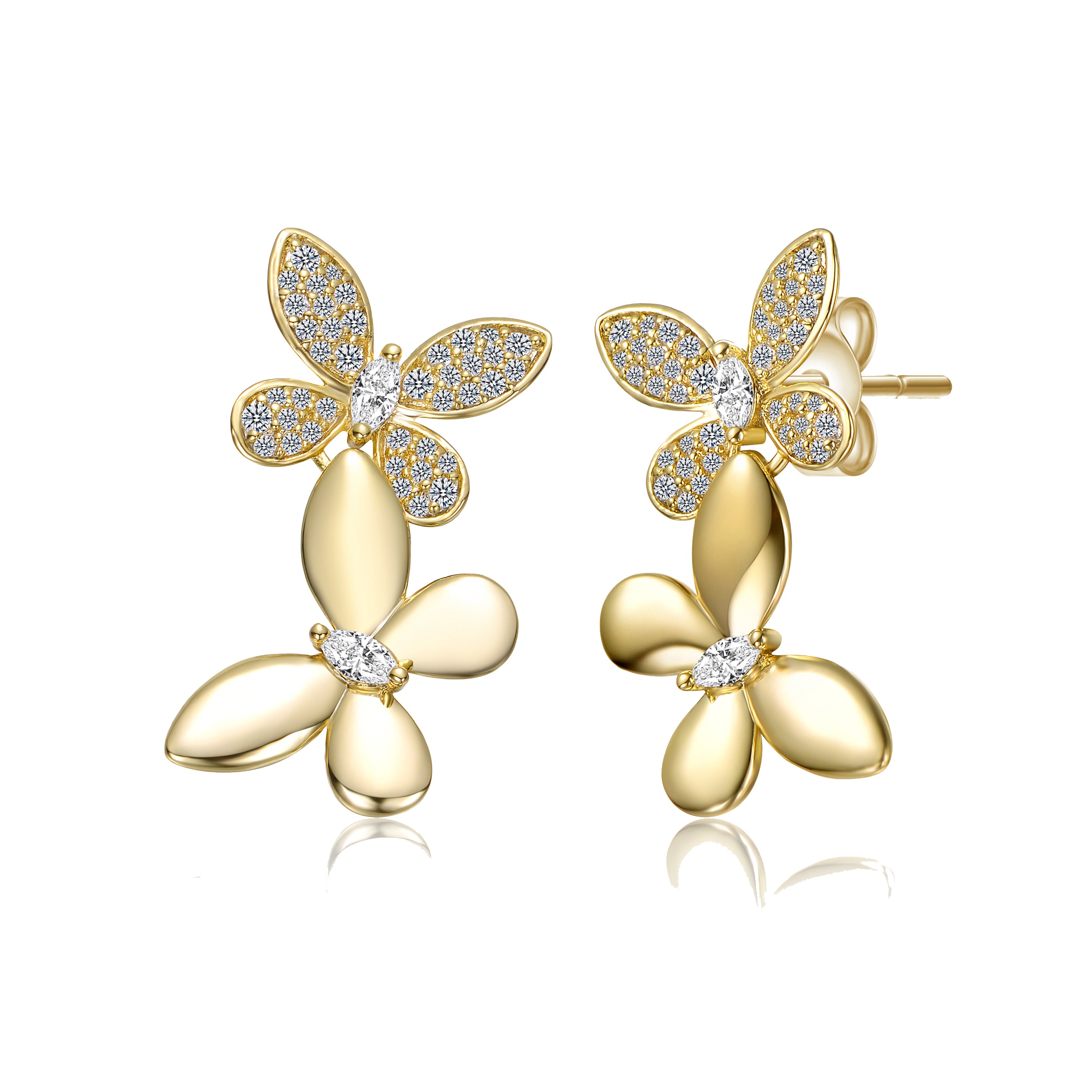 Gold-Plated Floral Cubic Zirconia Stud Earrings