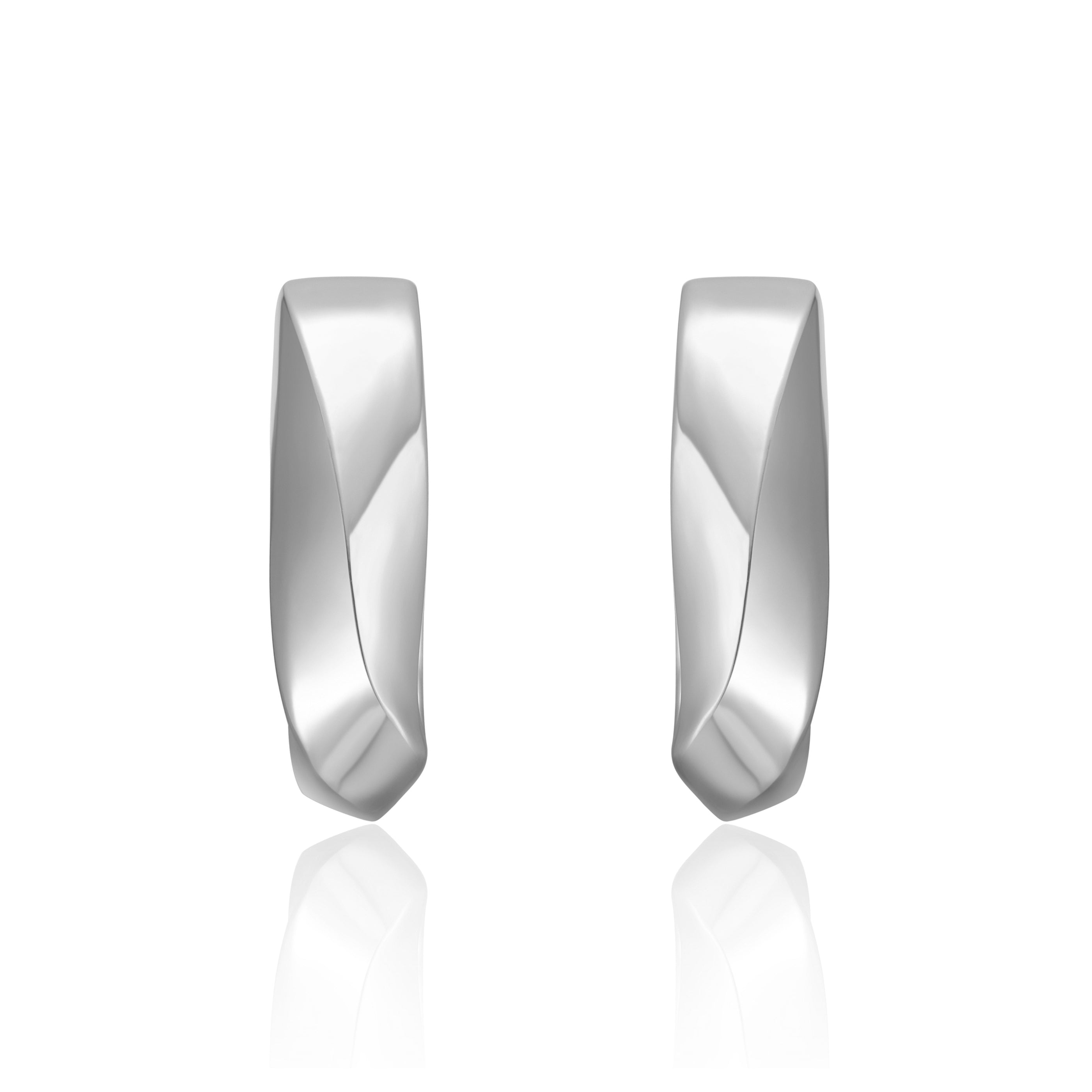 Rhodium plated modern shape to this classic style. These lightweight, tubular hoops go perfectly with studs, dangles, and hoop earrings, making them the ultimate complement to your highly accessorized style. Hinge backs keep these hoops in place, giving them an infinity fit as they sit next to the earlobes.