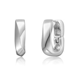Rhodium Plated Geometric Rectangle Mini Hoop Earrings