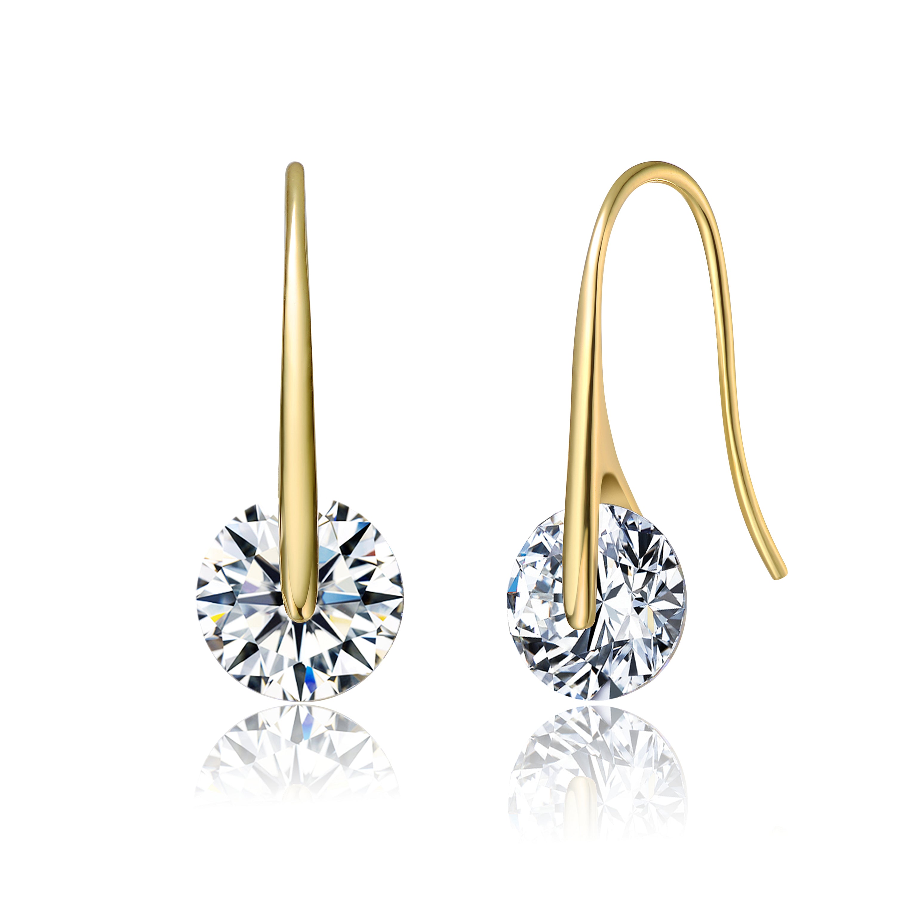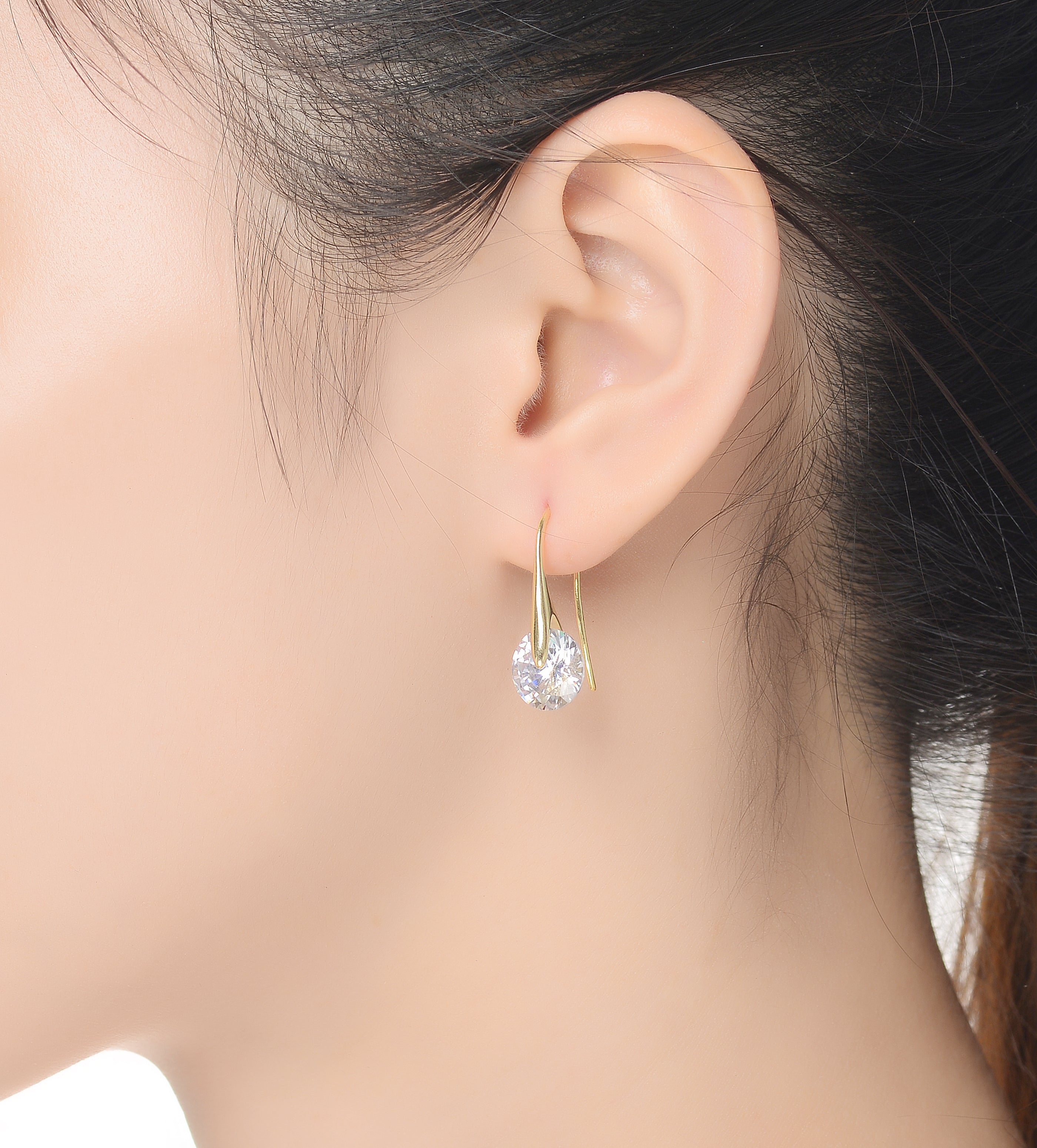 Stylish solitaire drop earrings. Add these pretty dangle earrings to your casual, night, formal, or semi-formal look, making them the perfect detail for your style. A sparkling round brilliant cut solitaire stone set in the middle of each shiny French hook gives them a classic yet glamorous appeal, allowing them to easily slip on the ears. Gift them as a birthday or holiday gift. Choose from white, gold, mint tourmaline, and ruby red color options.