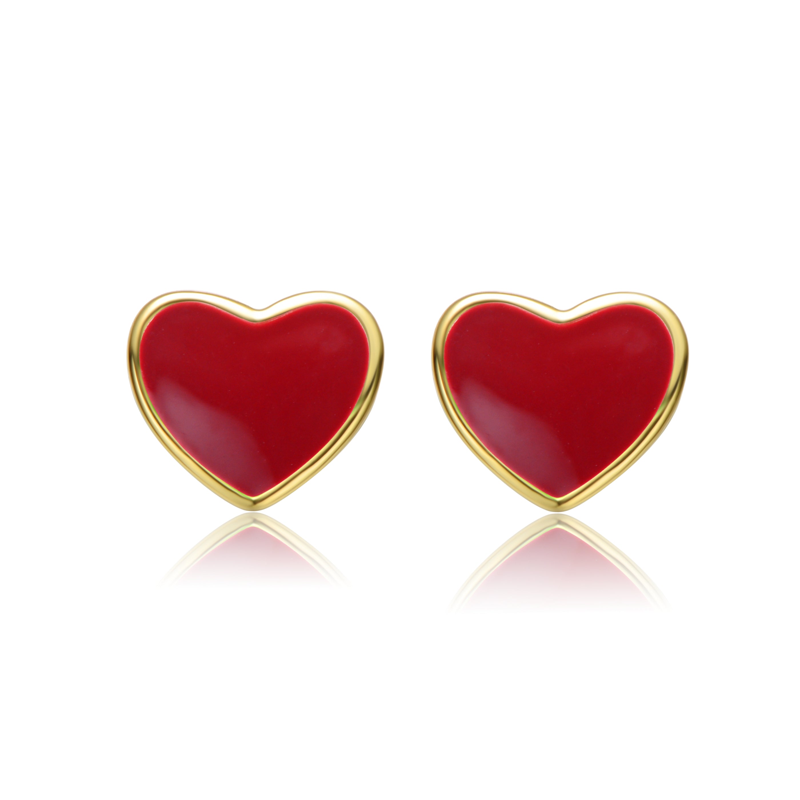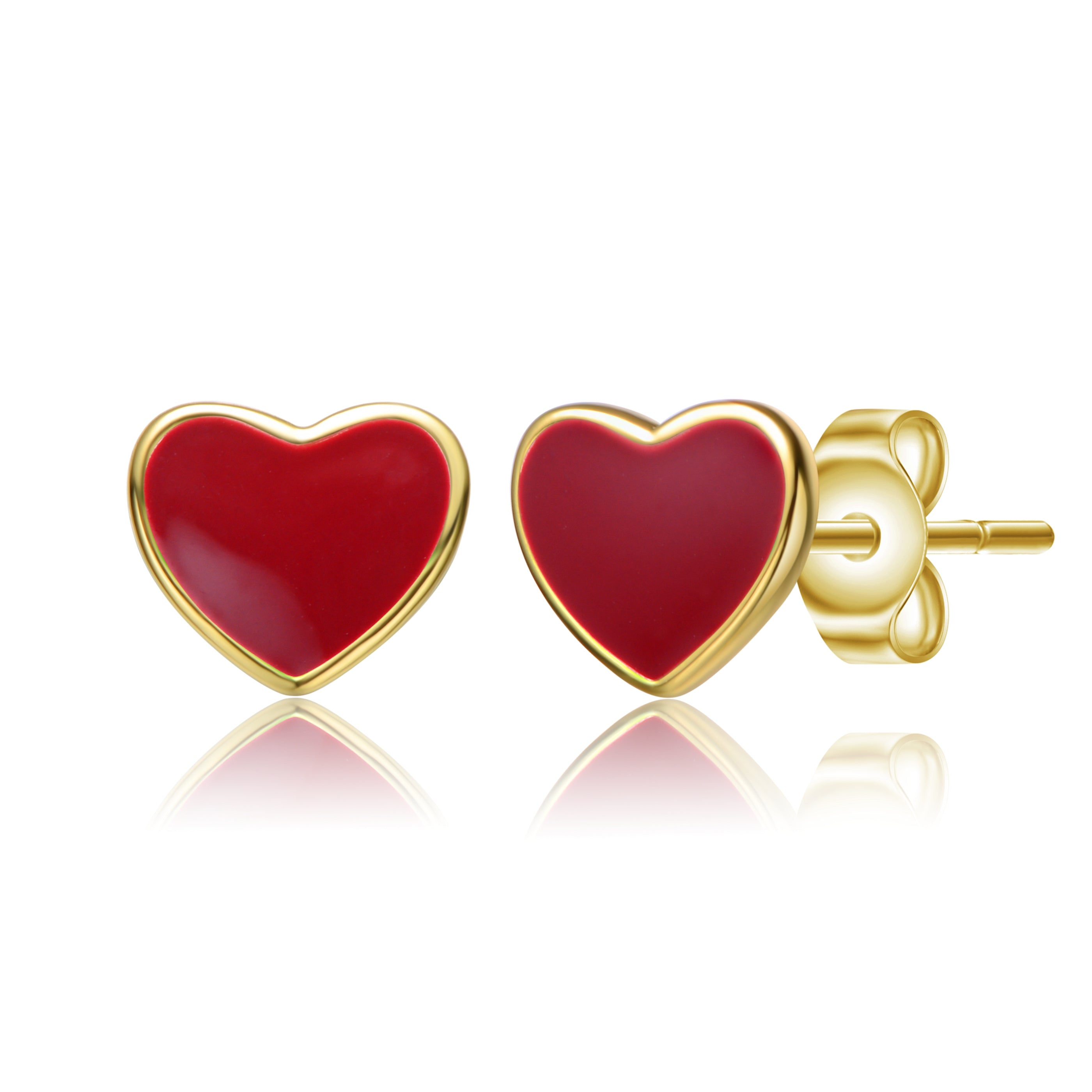 Toddler/Kids 14k Gold Plated Colored Enamel Tiny Flat Heart Stud Earrings