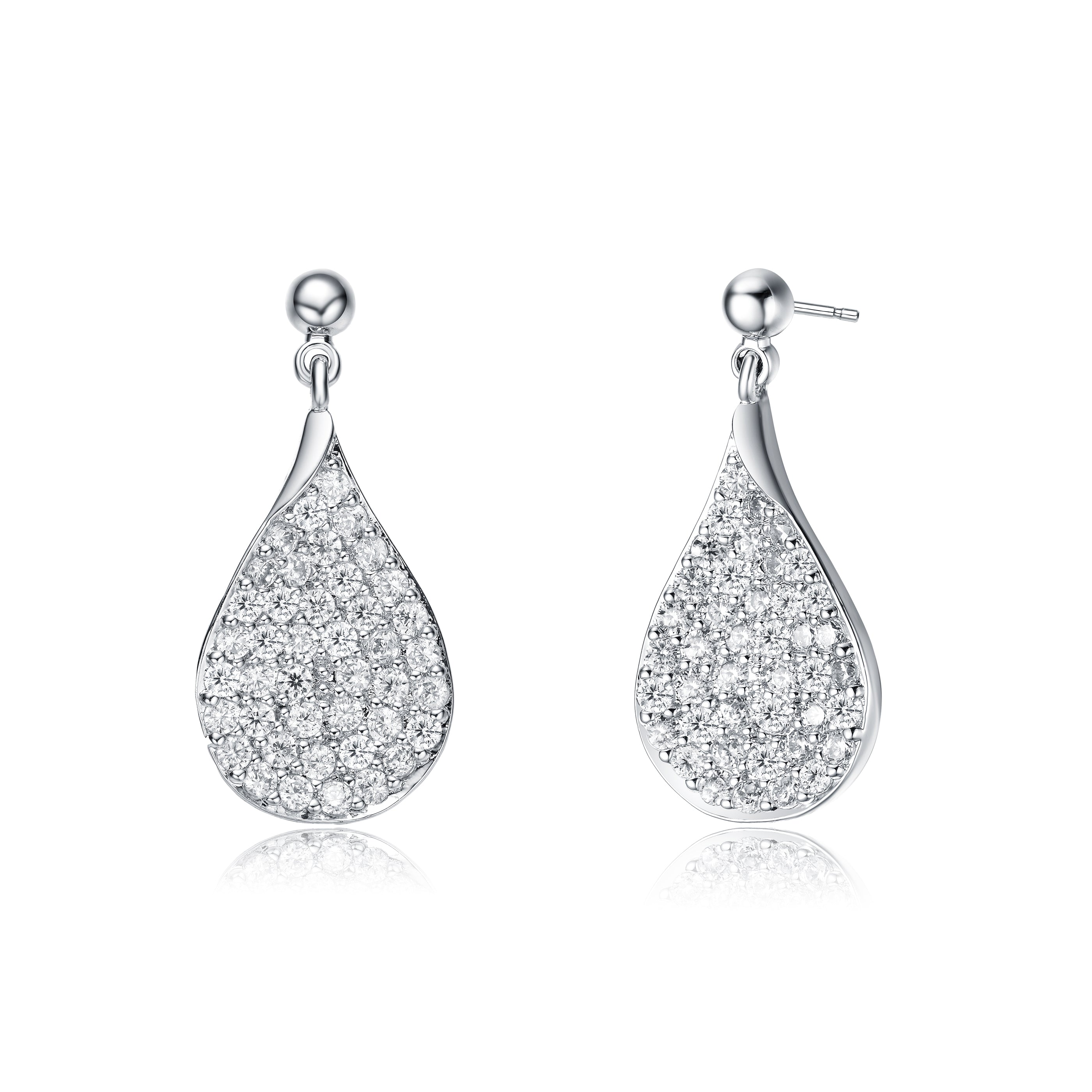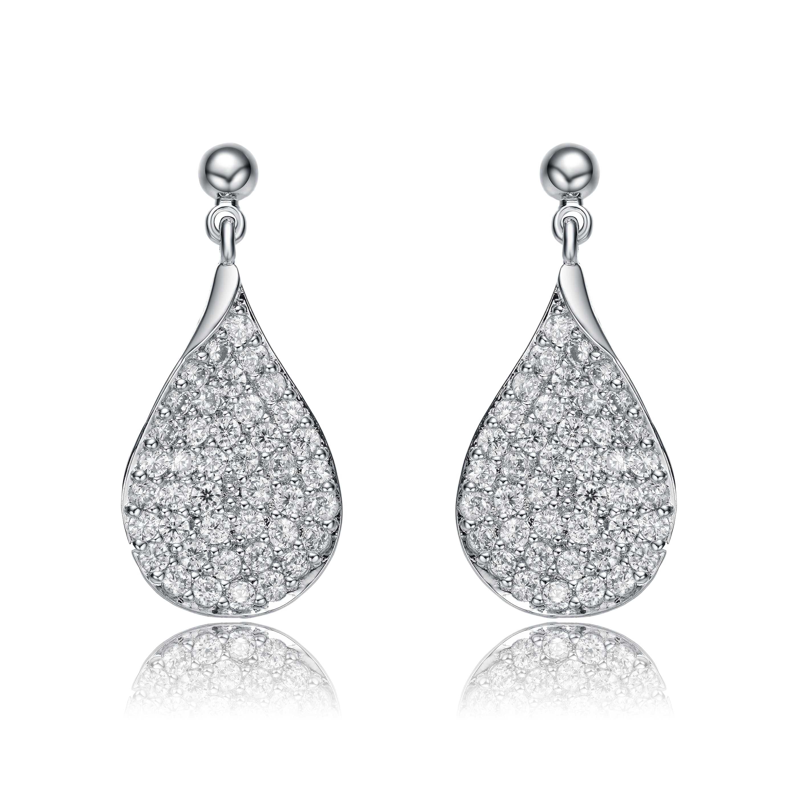 White Gold Plated with French Pave Cubic Zirconia Raindrop Pear Dangle Earrings