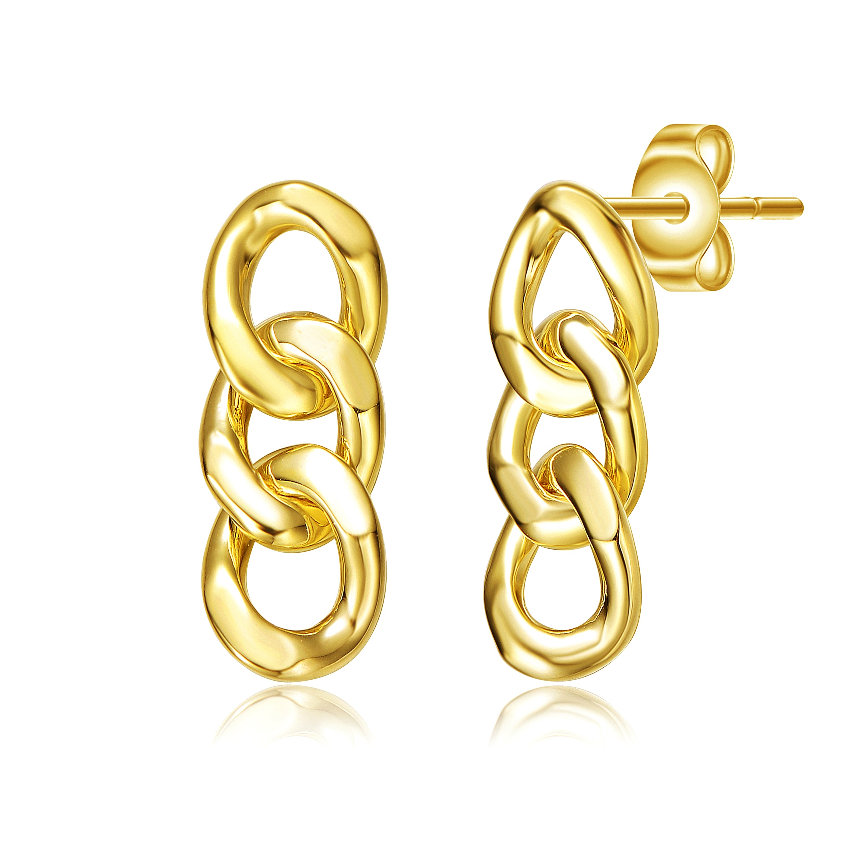 14k Yellow Gold Plated U-Shaped Link Chain Drop Earrings with Golden Ball