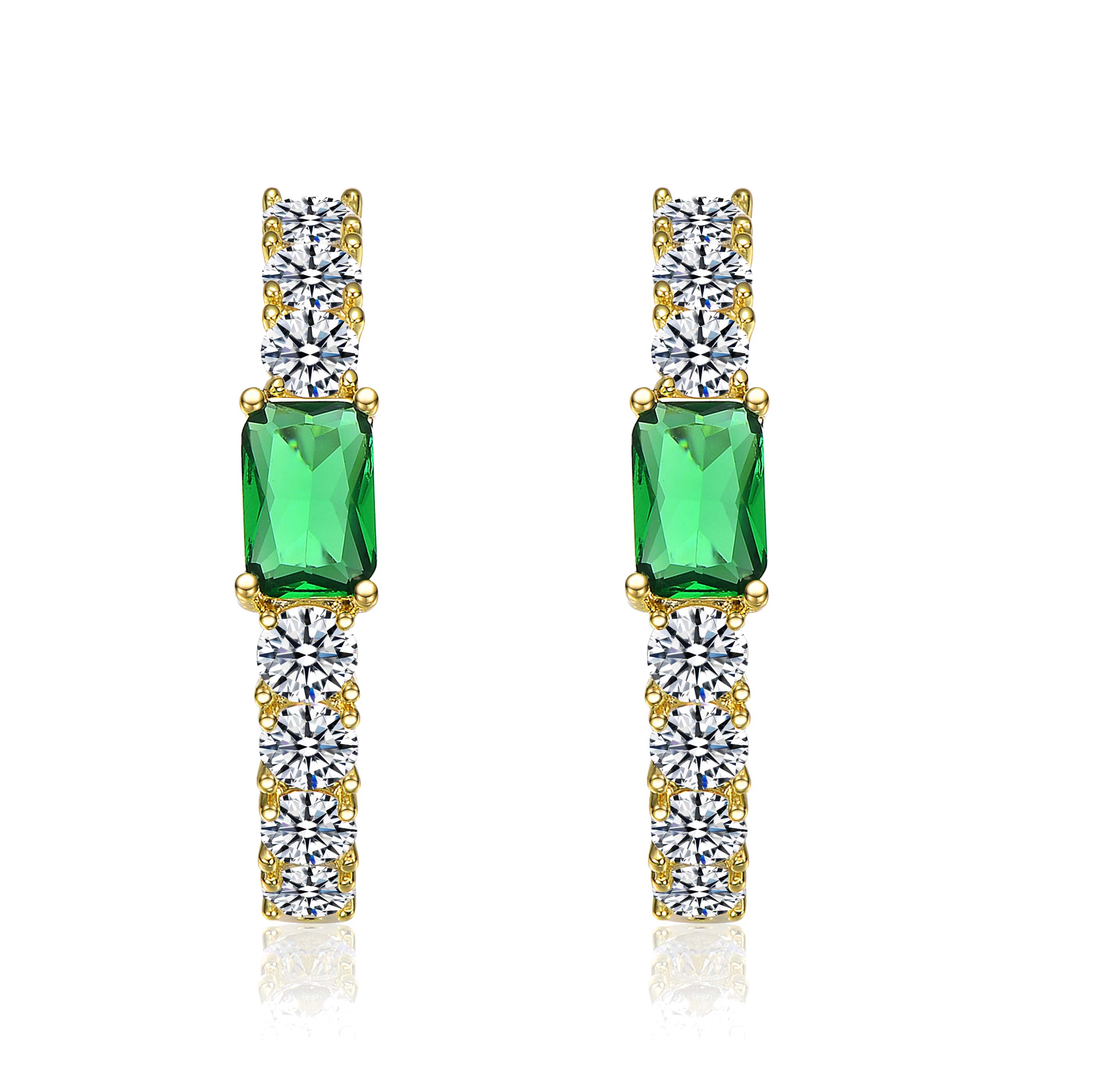 14k Gold Plated Emerald-Green Cubic Zirconia Inside-Out Hoop Earrings