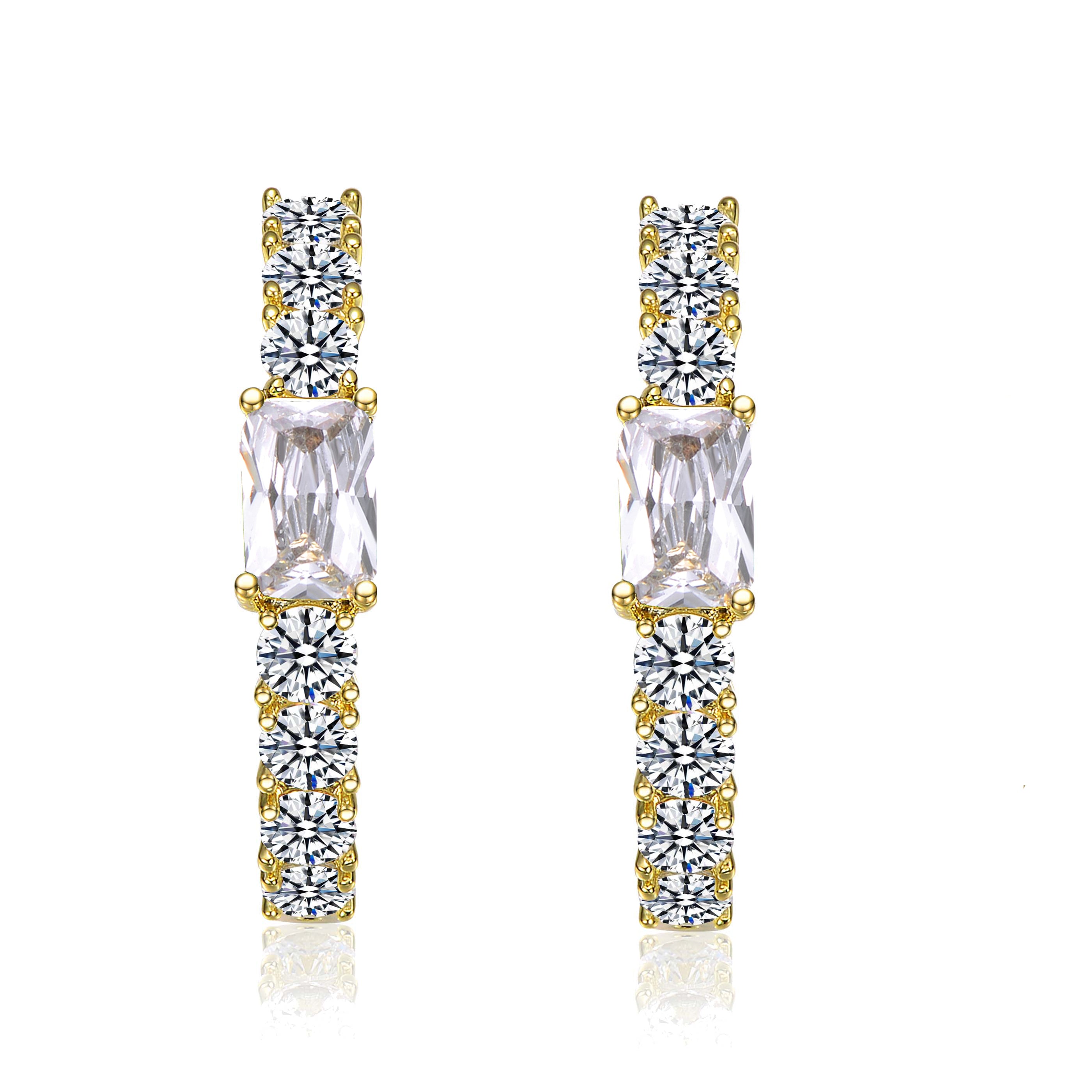 14k Gold Plated Cubic Zirconia Rectangle Link Linear Dangle Earrings