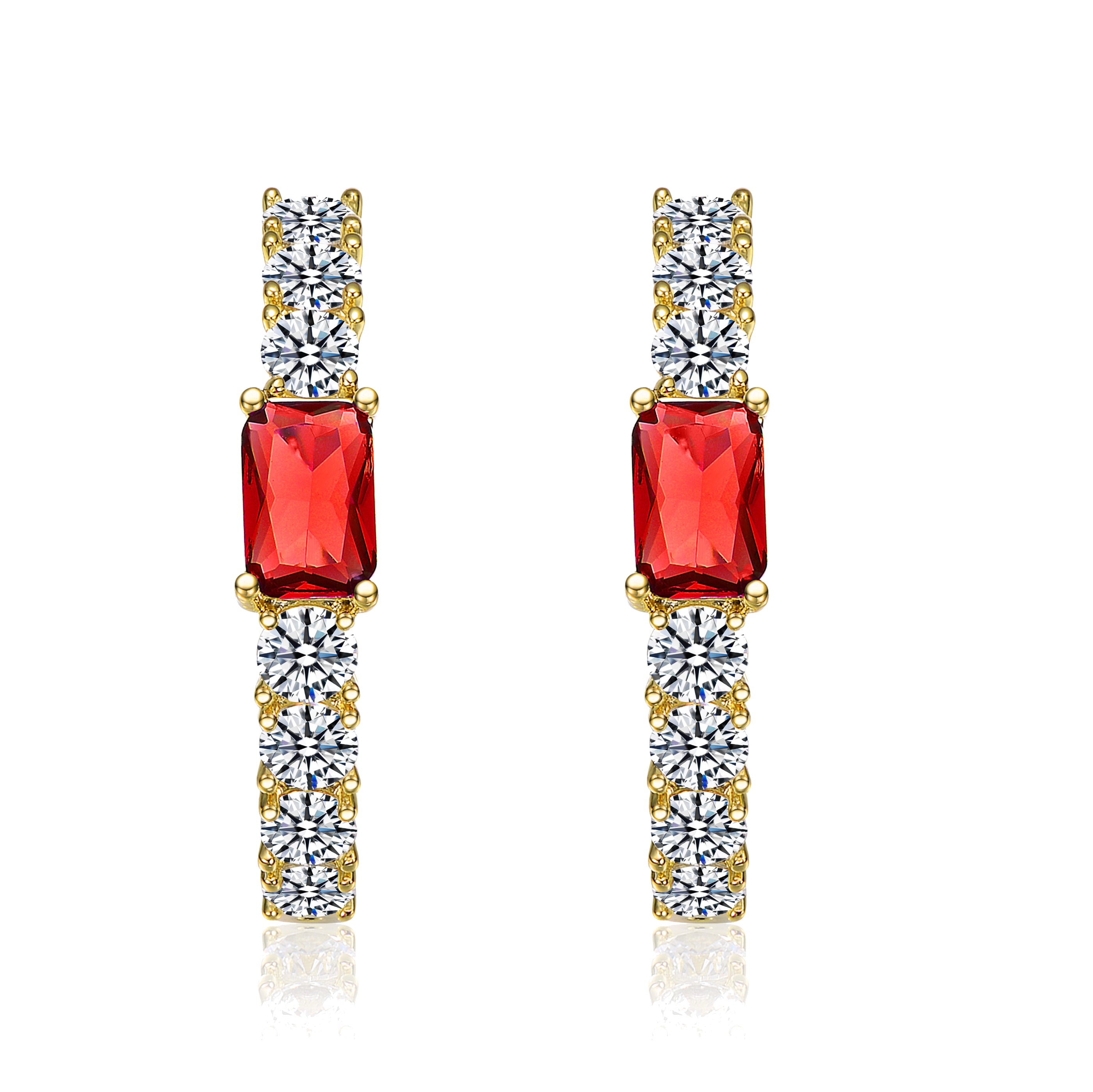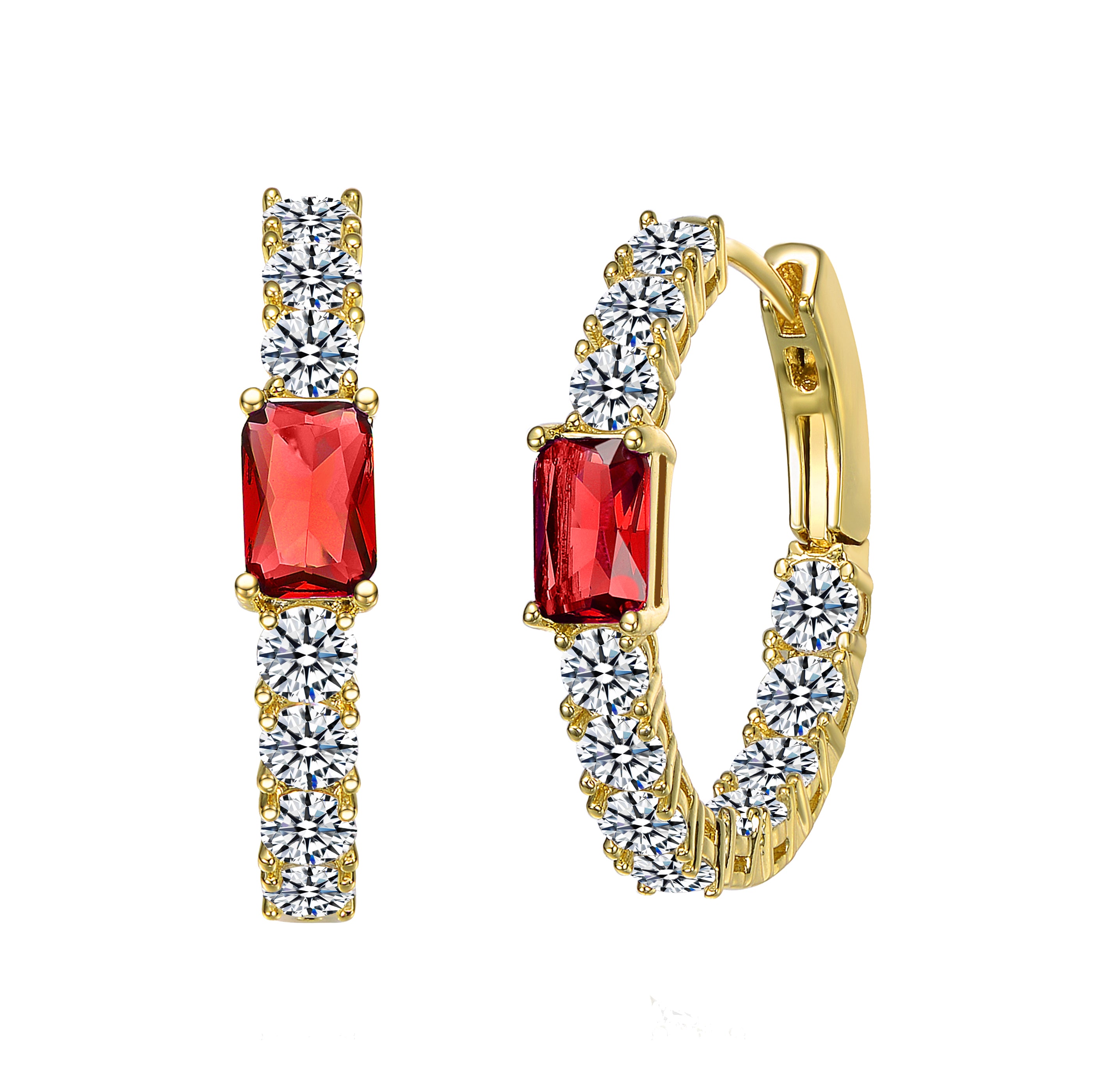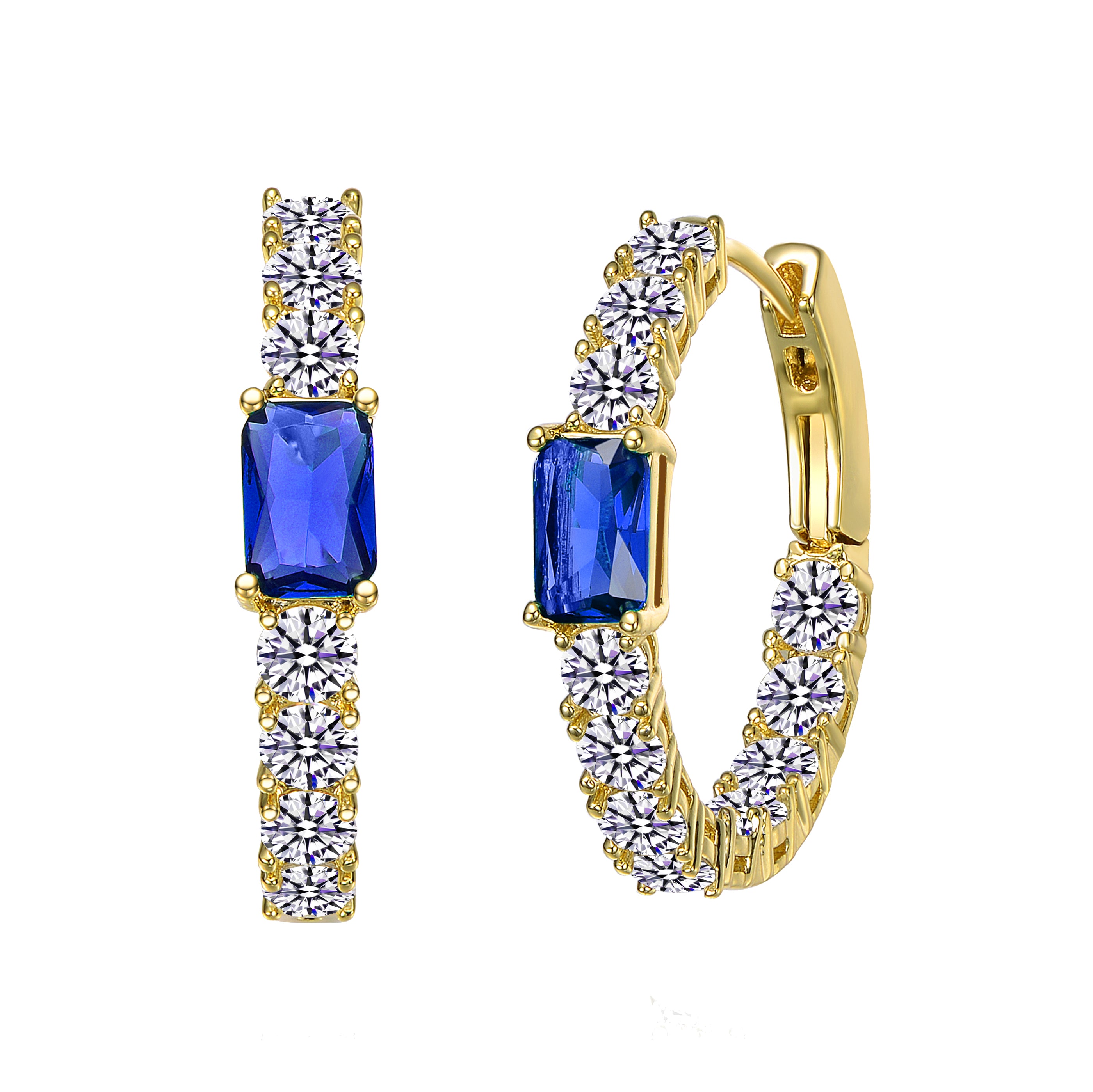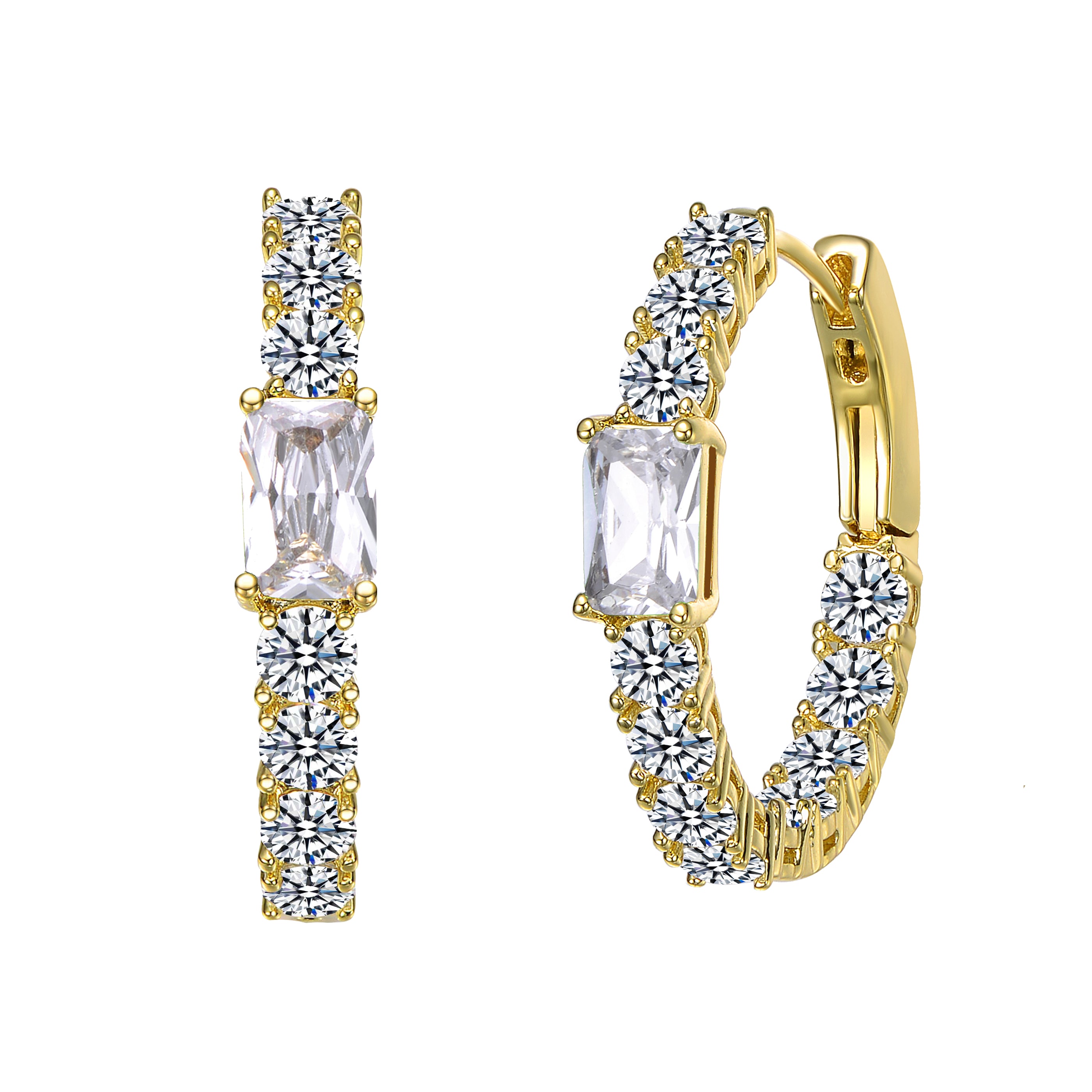 14k Gold Plated with Baguette Cubic Zirconia Hoop Earrings