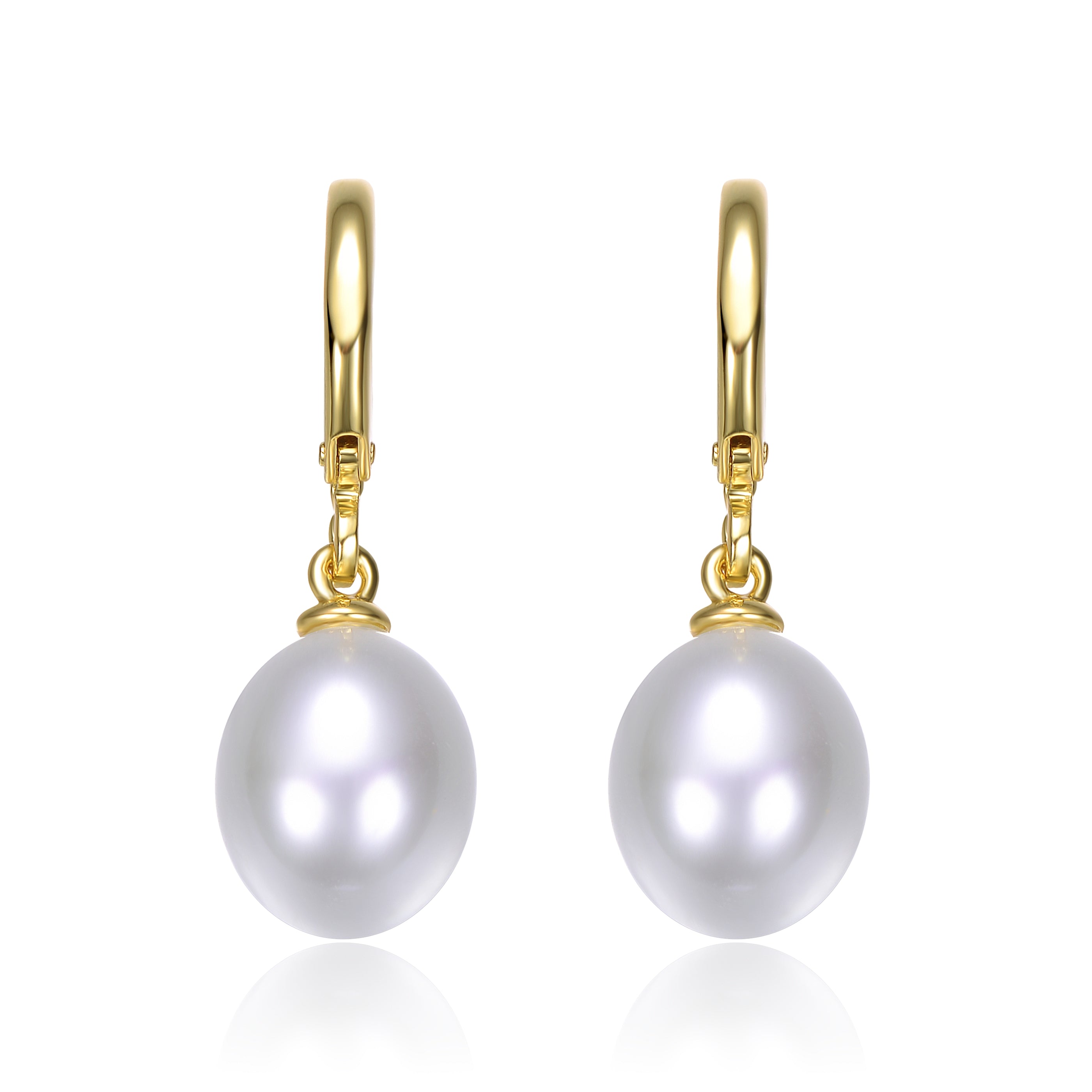 14k Yellow Gold Plated with Cubic Zirconia Oblong Oval Raindrop Hoop Earrings