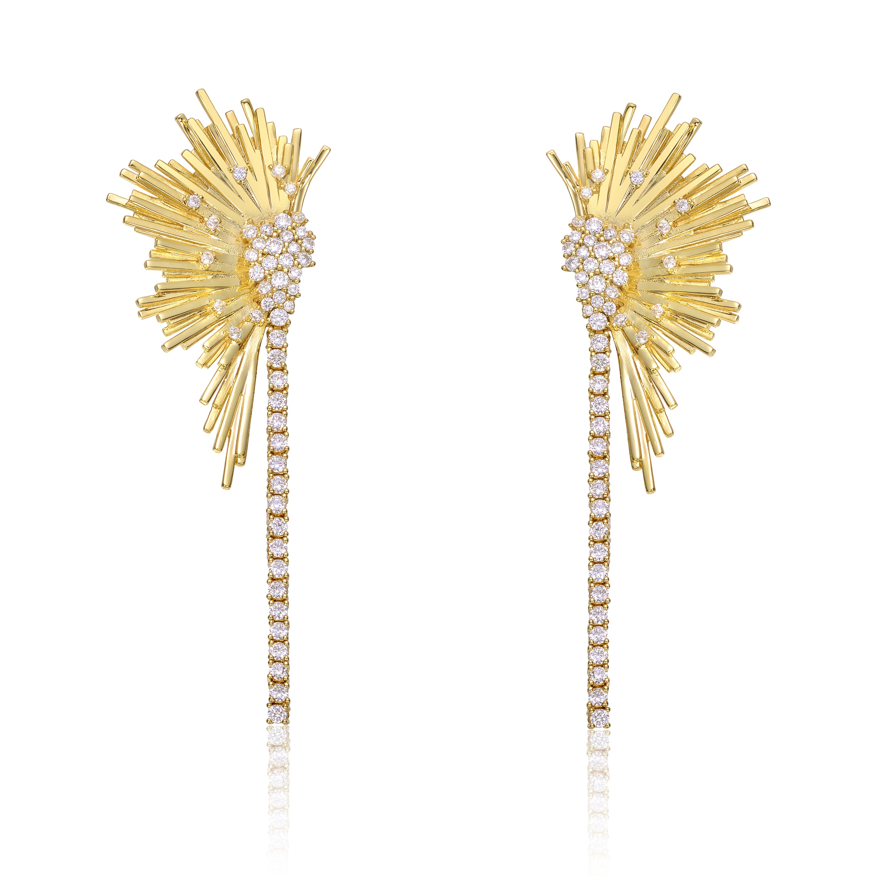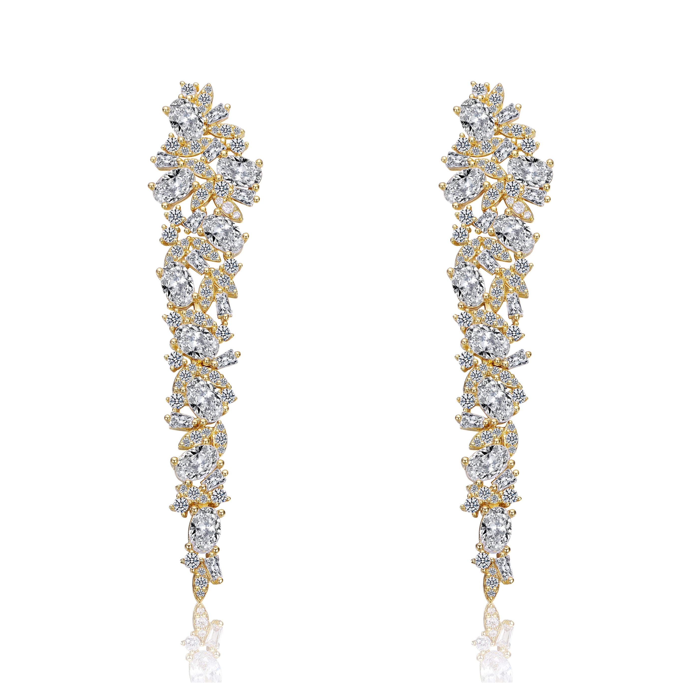 14k Gold Plated Cubic Zirconia Waterfall Cluster Linear Earrings