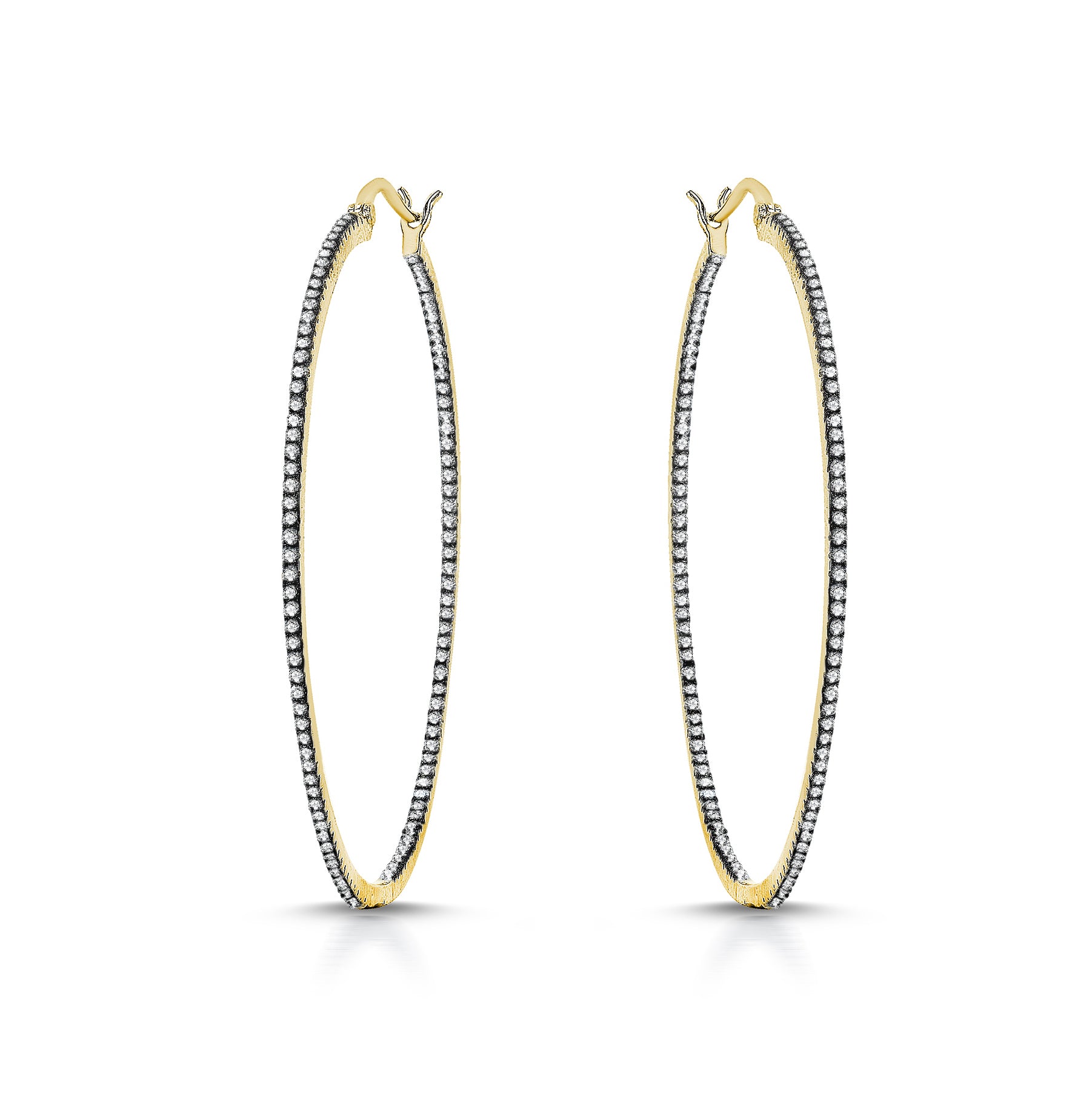 14k Yellow Gold Plated with Cubic Zirconia Solitaire Double Trapeze Inside-Out Oblong Hoop Earrings