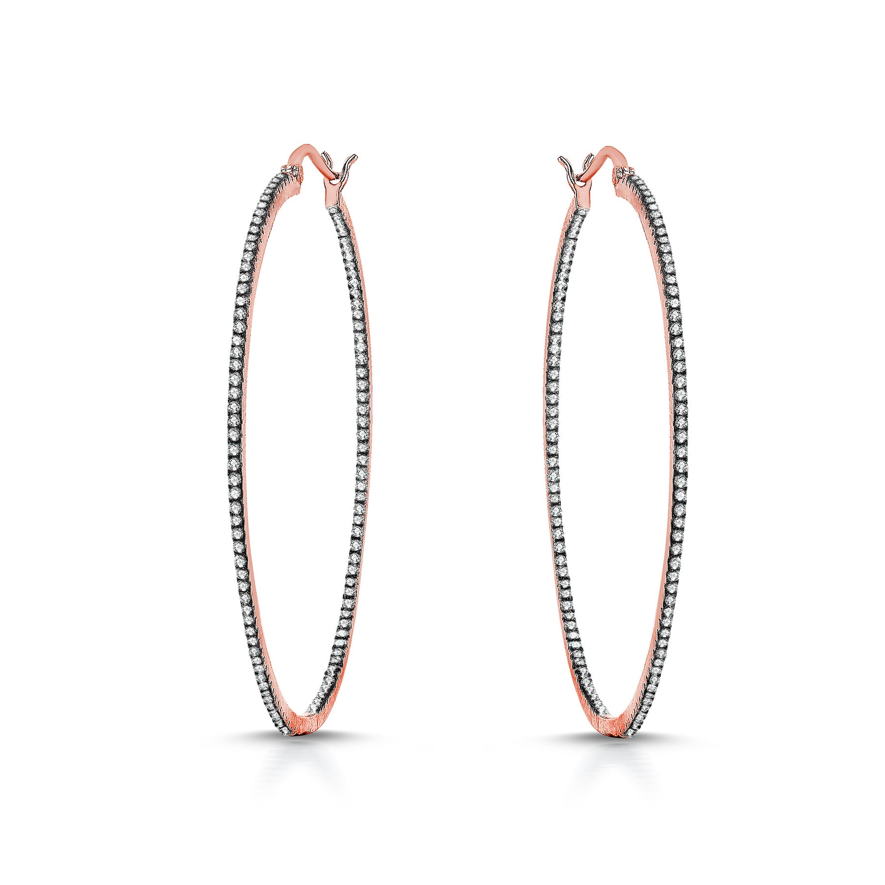 14k Gold Plated Cubic Zirconia Pave Oblong Oval Hoop Earrings