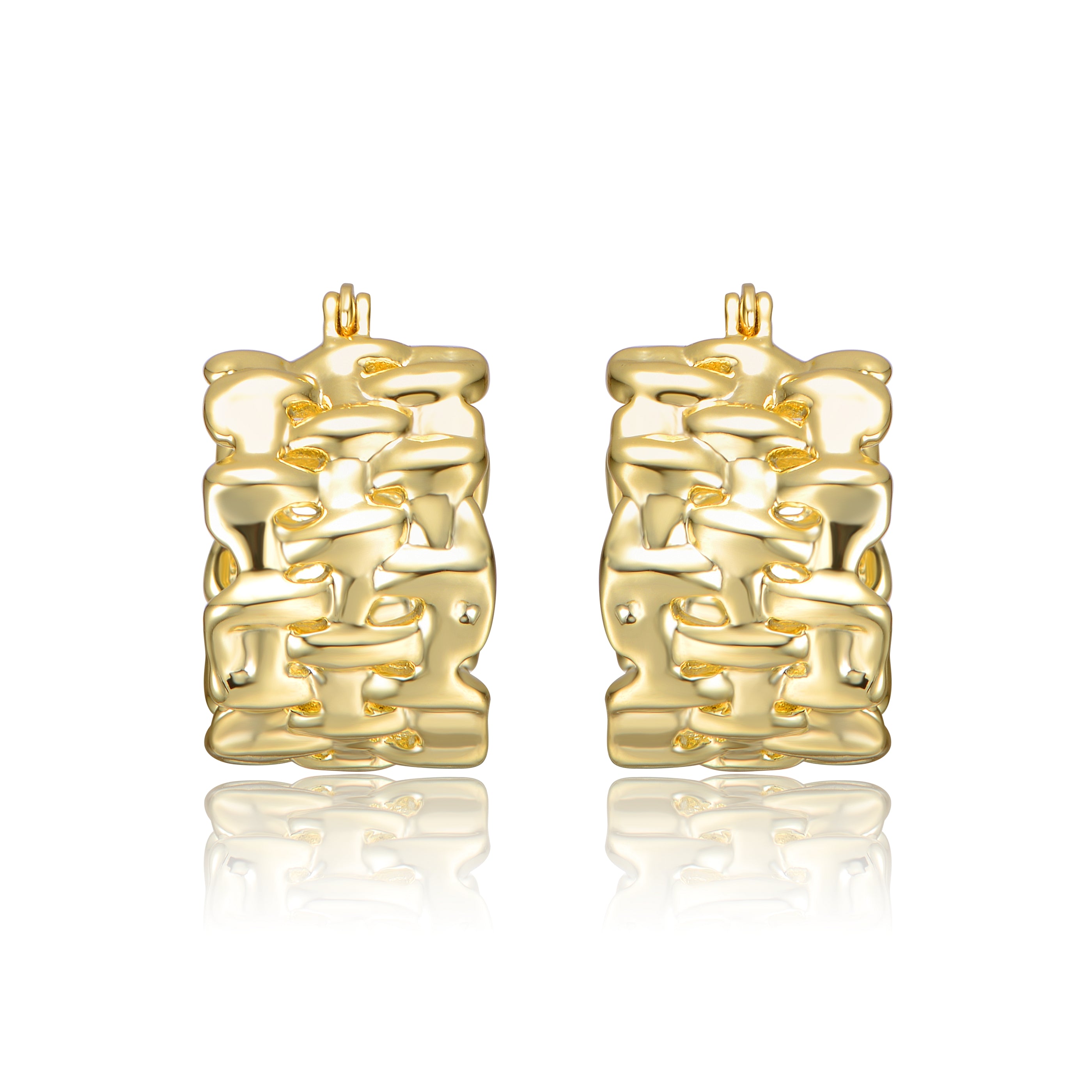 14k Gold Plated Nature Basket Weave Chunky C-Hoop Earrings