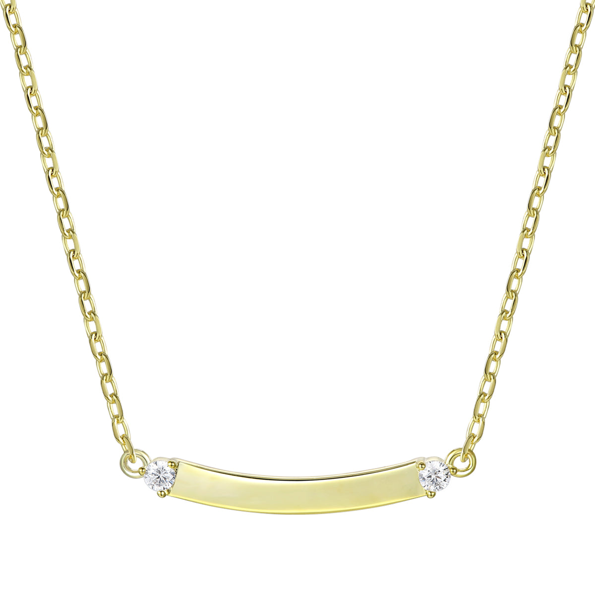 14K Gold Plated Cubic Zirconia Curved Bar Necklace