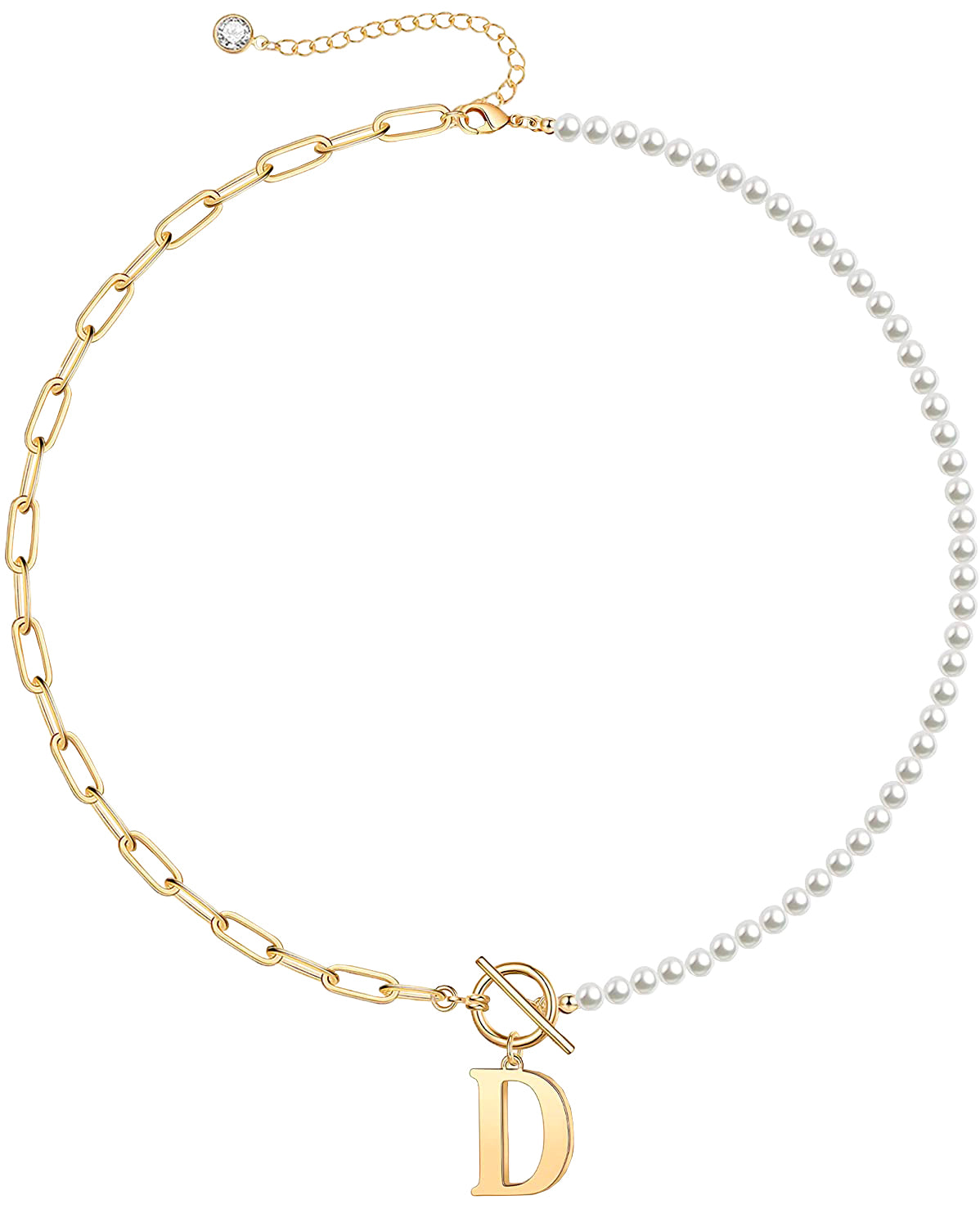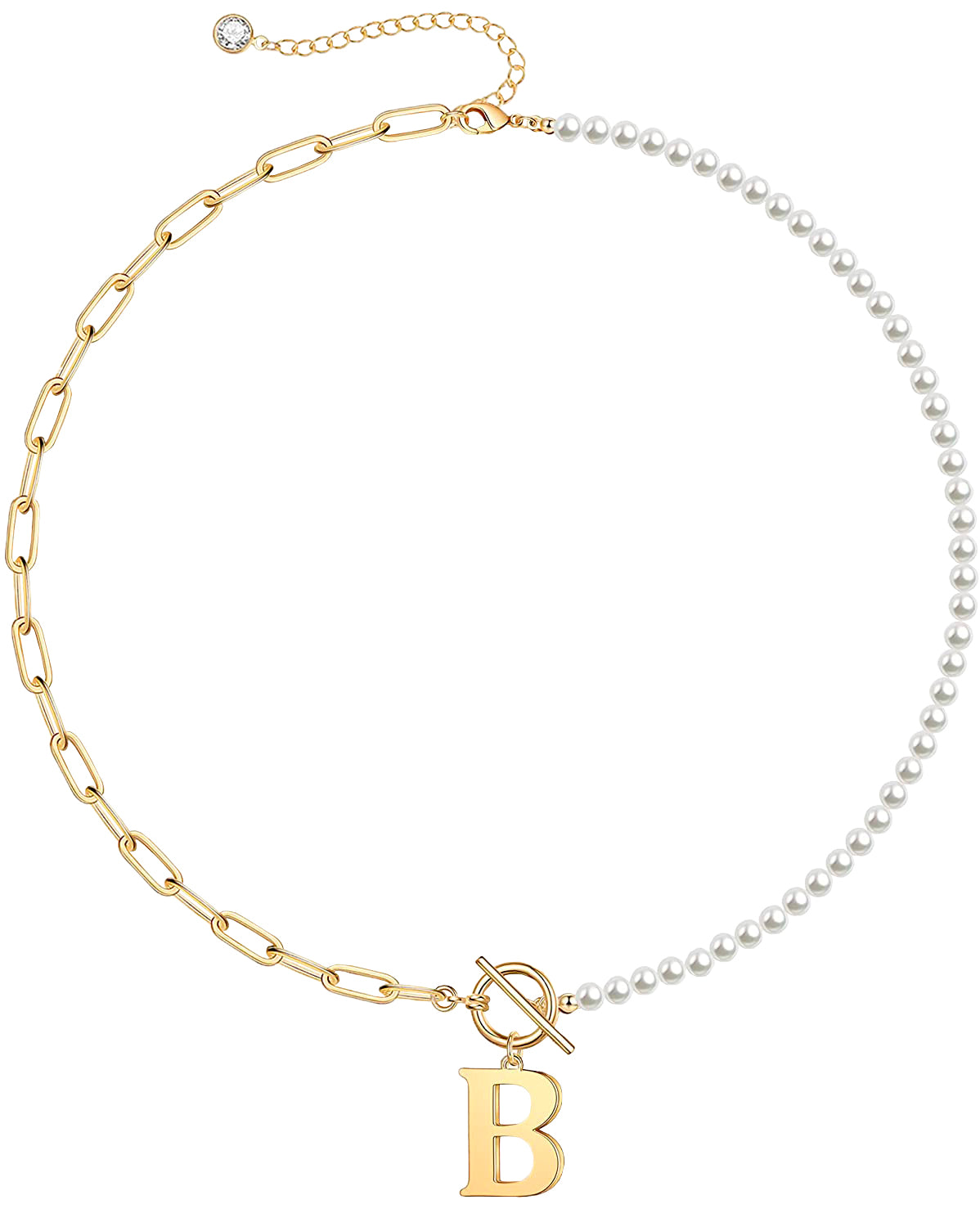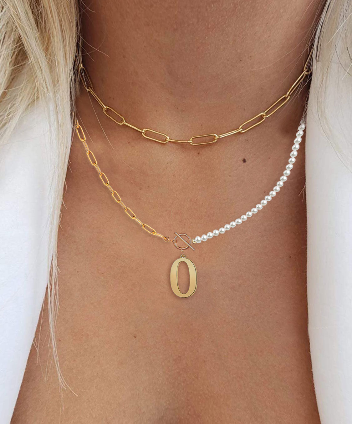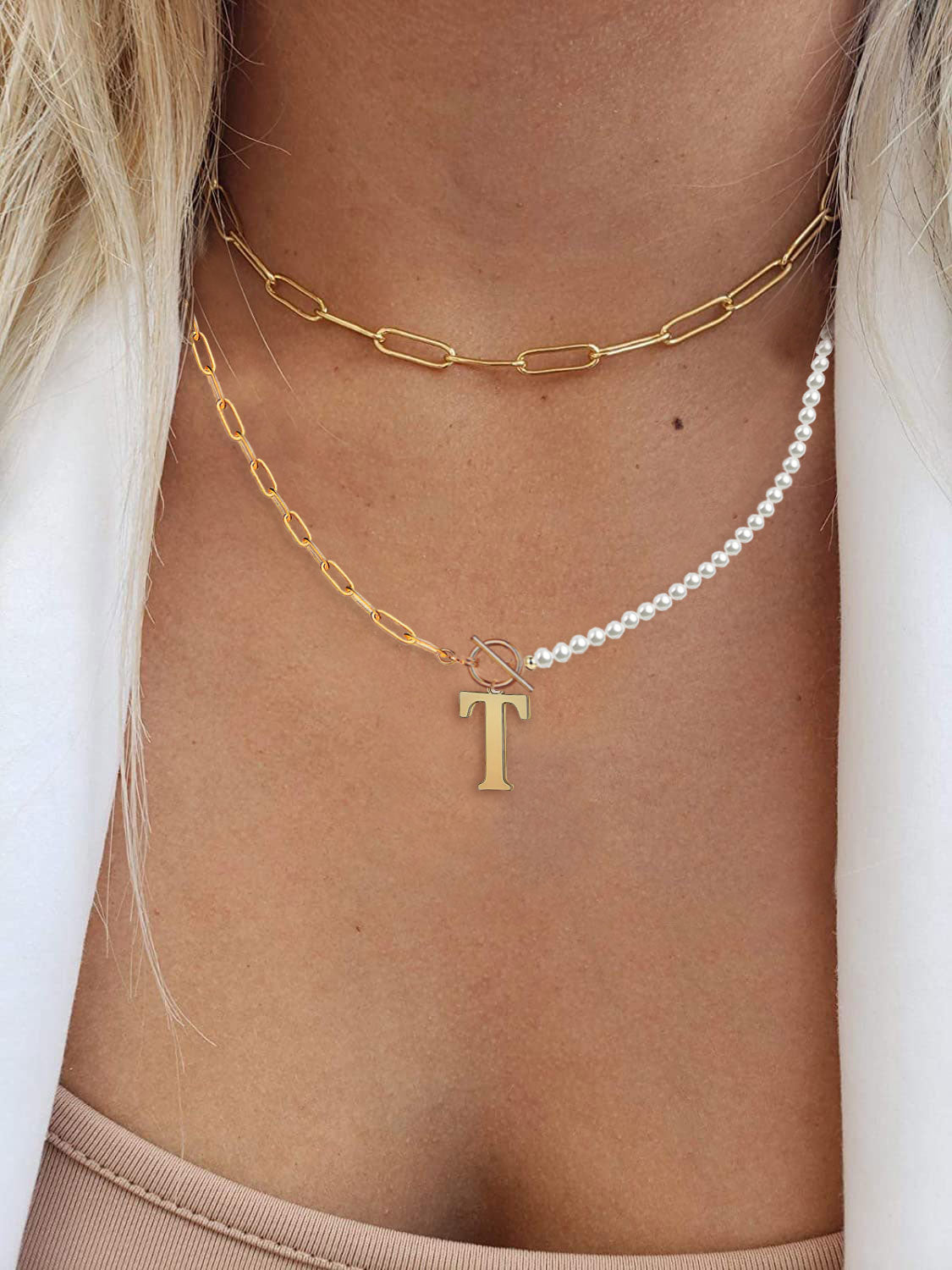 14K Gold Plated Initial Pearl Link Chain Necklace