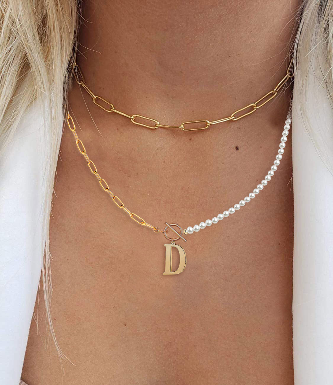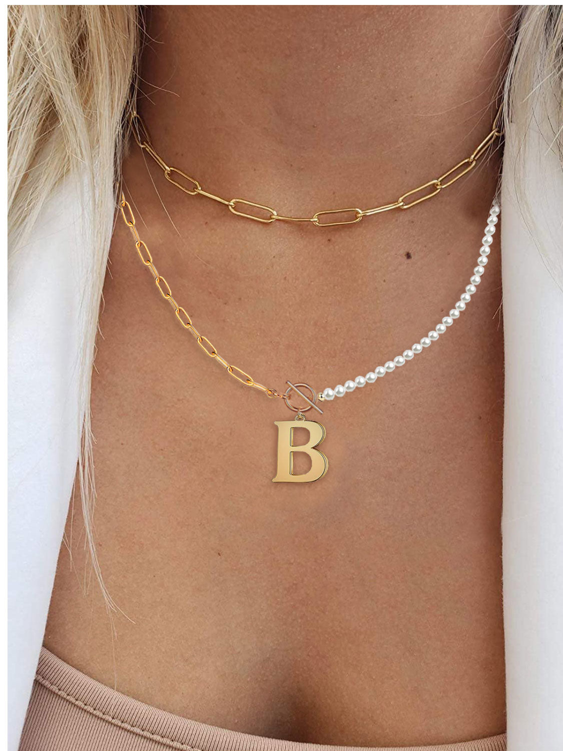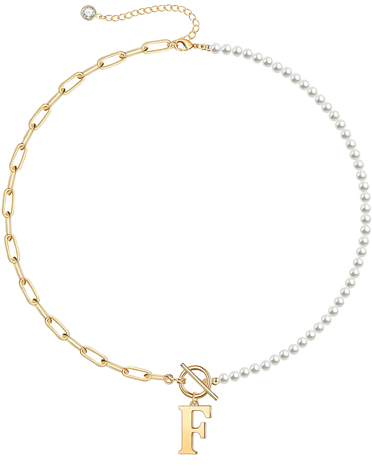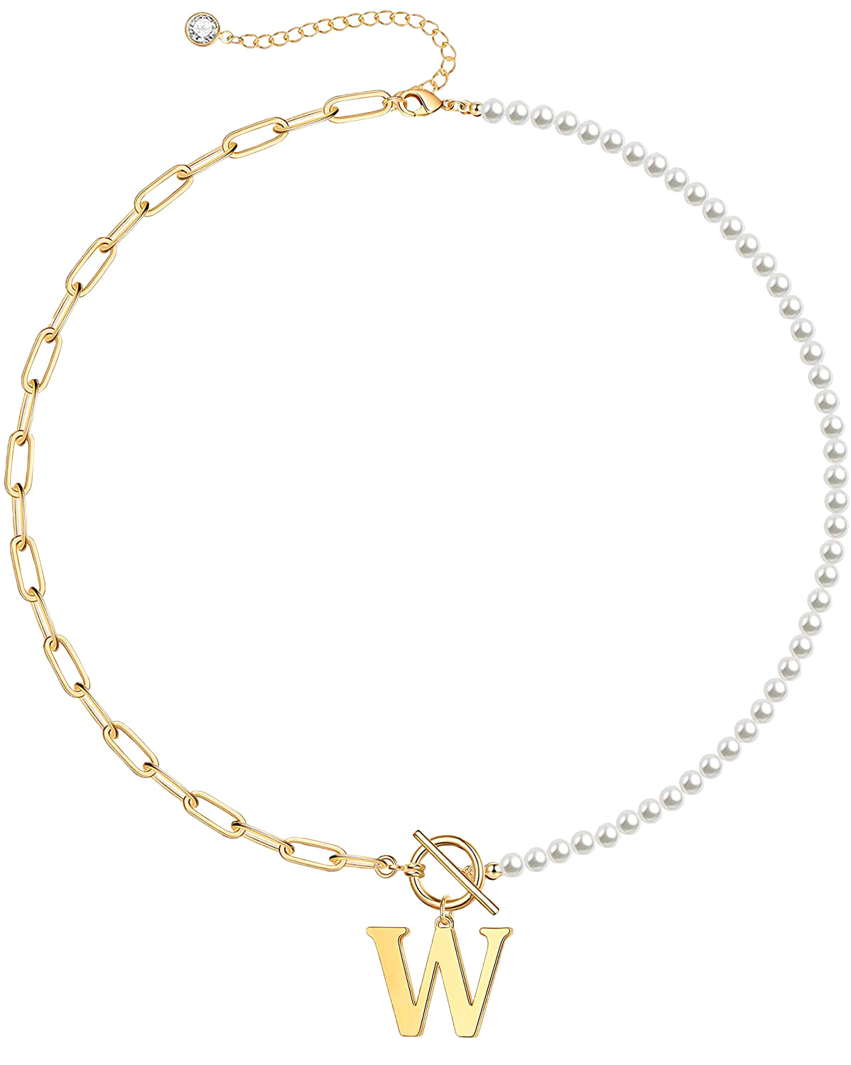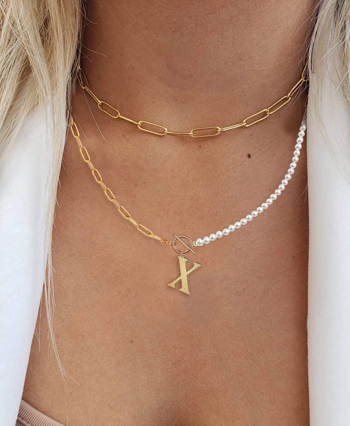 14K Gold Plated Initial Pearl Link Chain Necklace