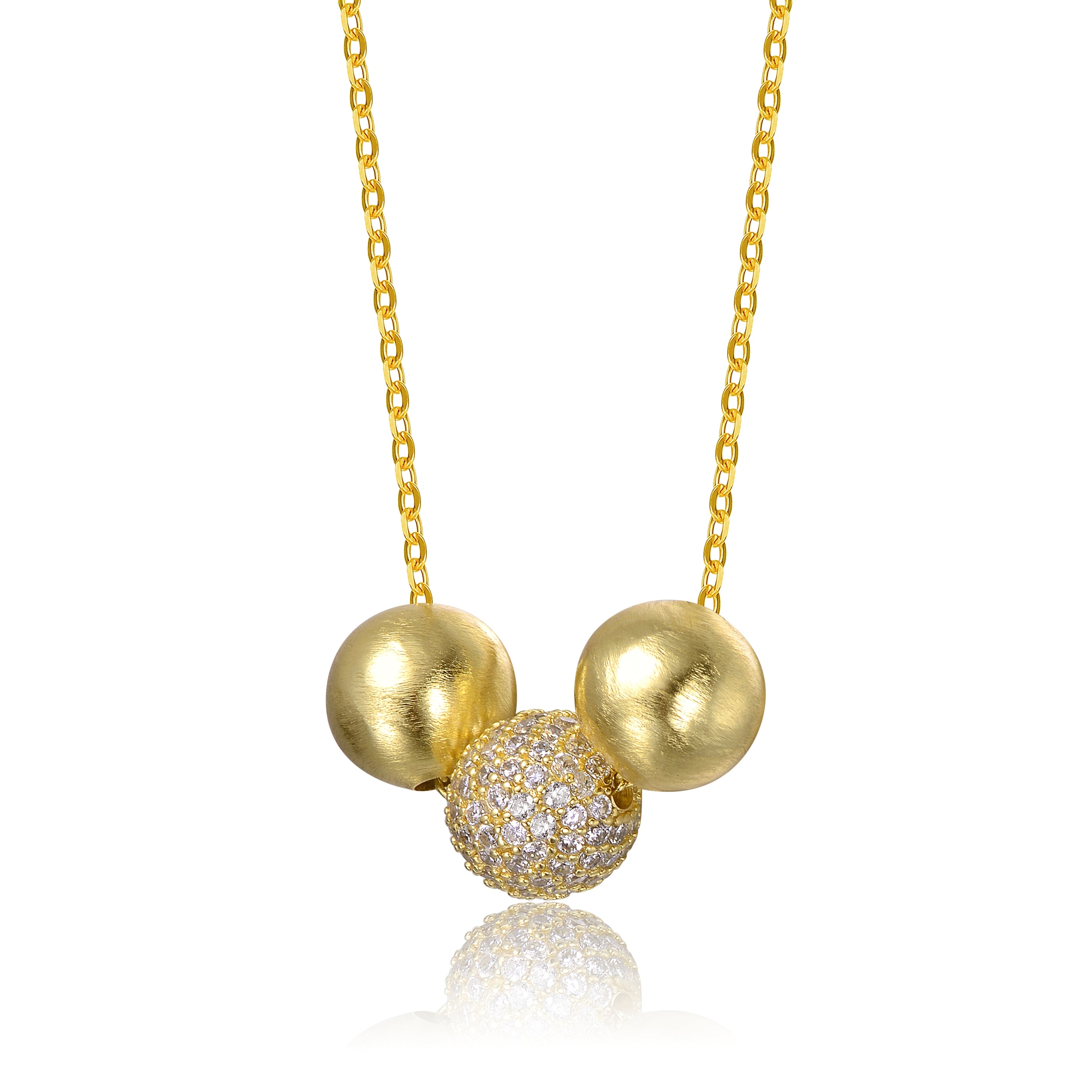 14k Gold Plated Matte & Bright Shine Cubic Zirconia Bead Pendant Necklace