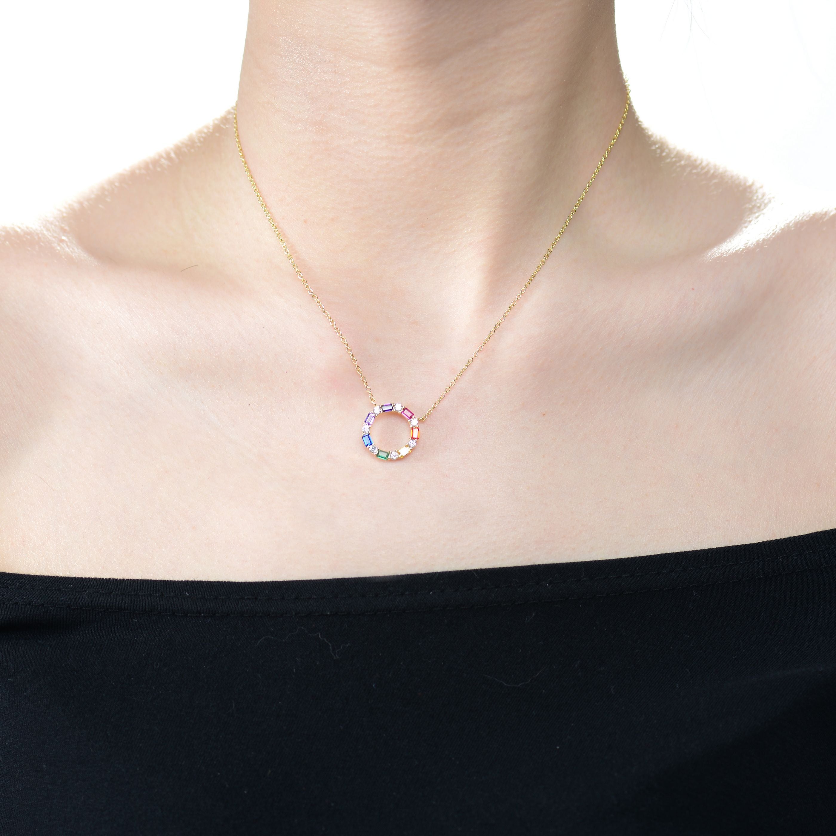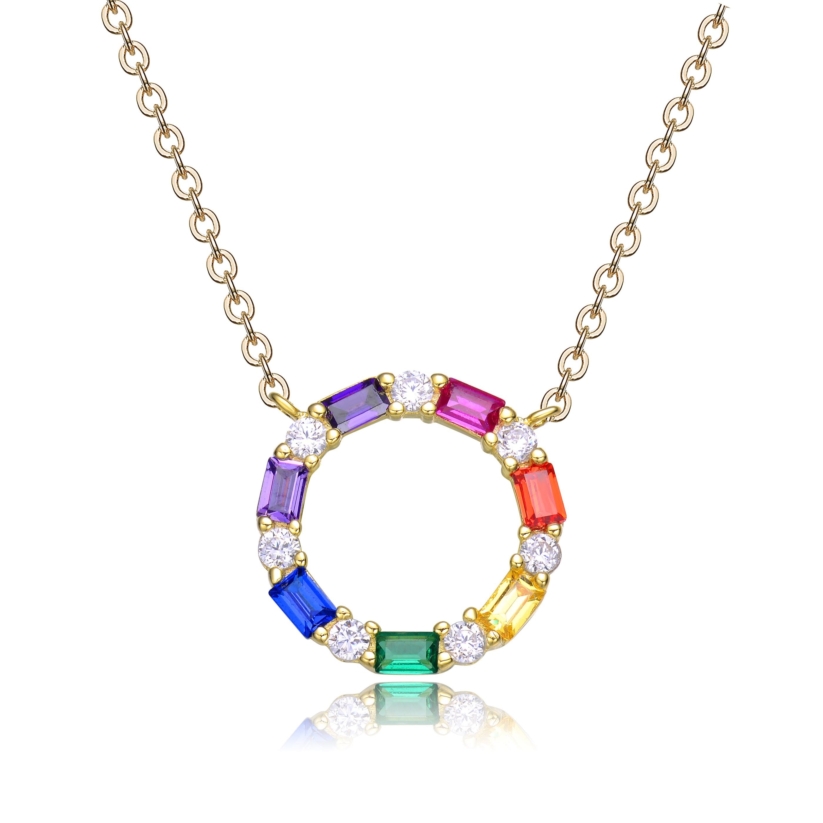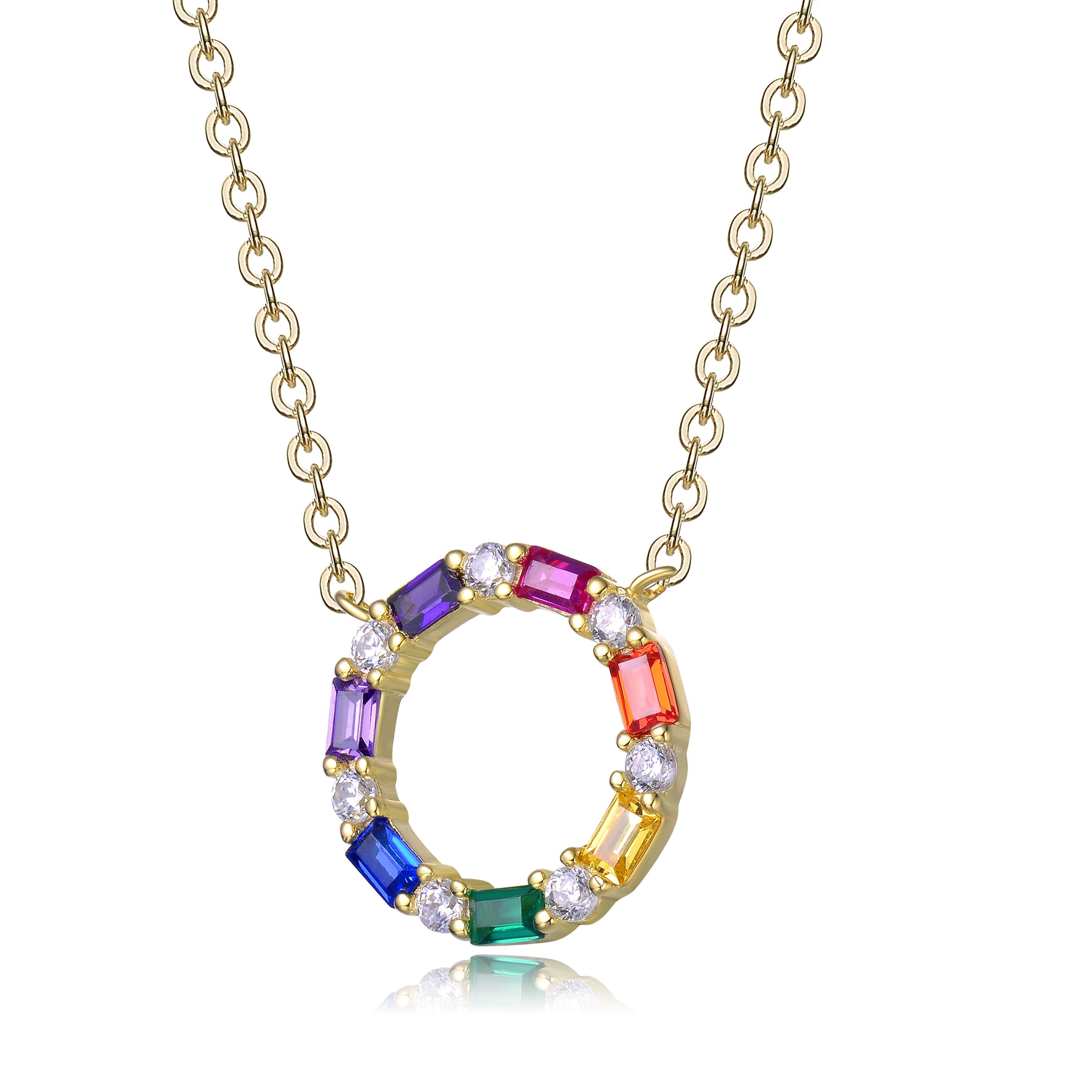 14K Gold Plated Rainnbow Cubic Zirconia Circle Pendant Necklace
