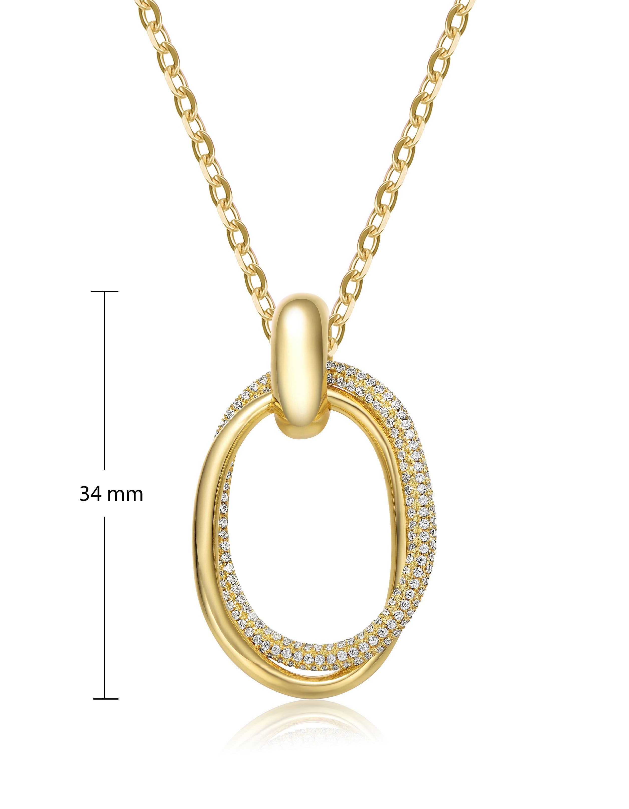 14k Gold Plated Sterlig Silver with Cubic Zirconia Double Entwined Oval Eternity Circle Pendant Necklace