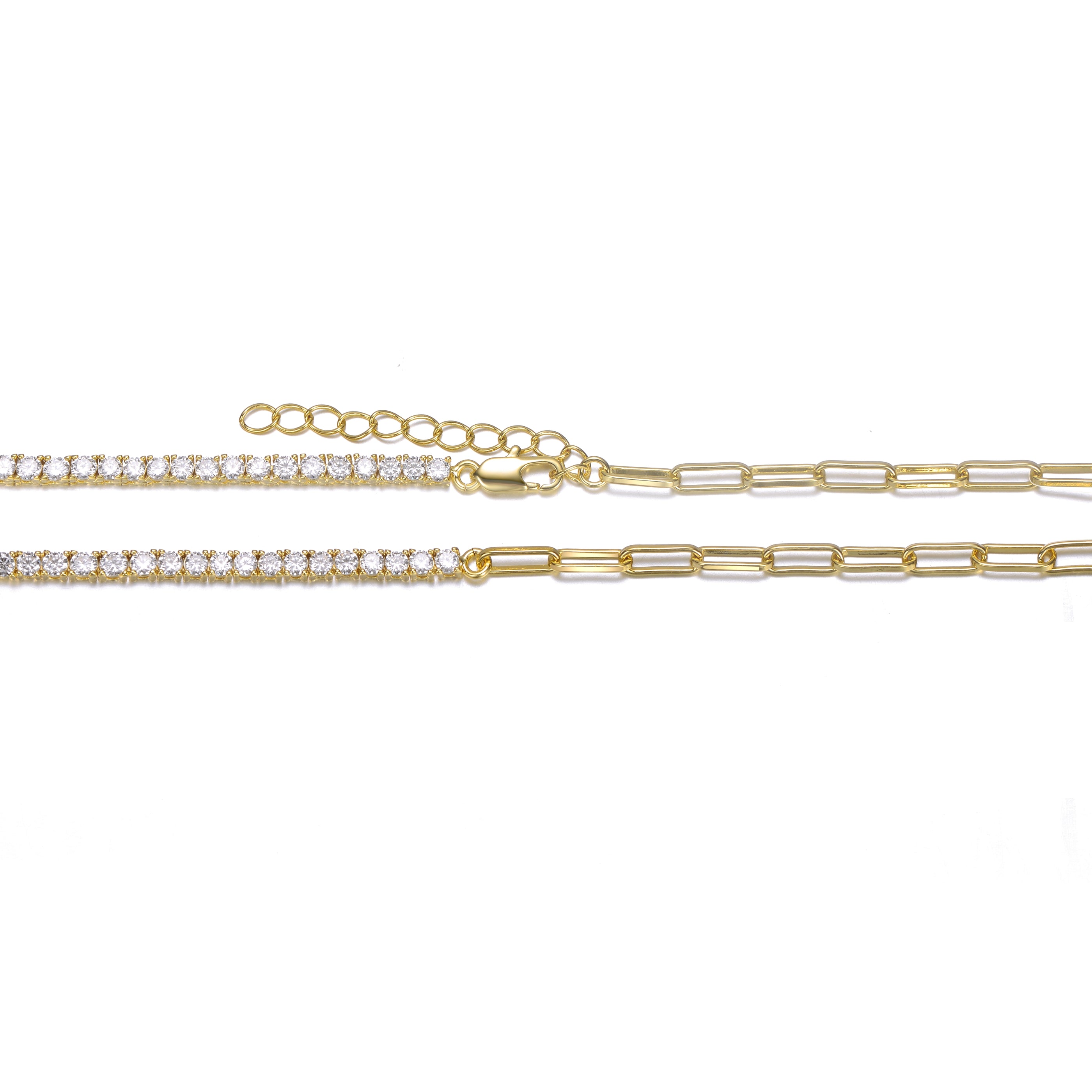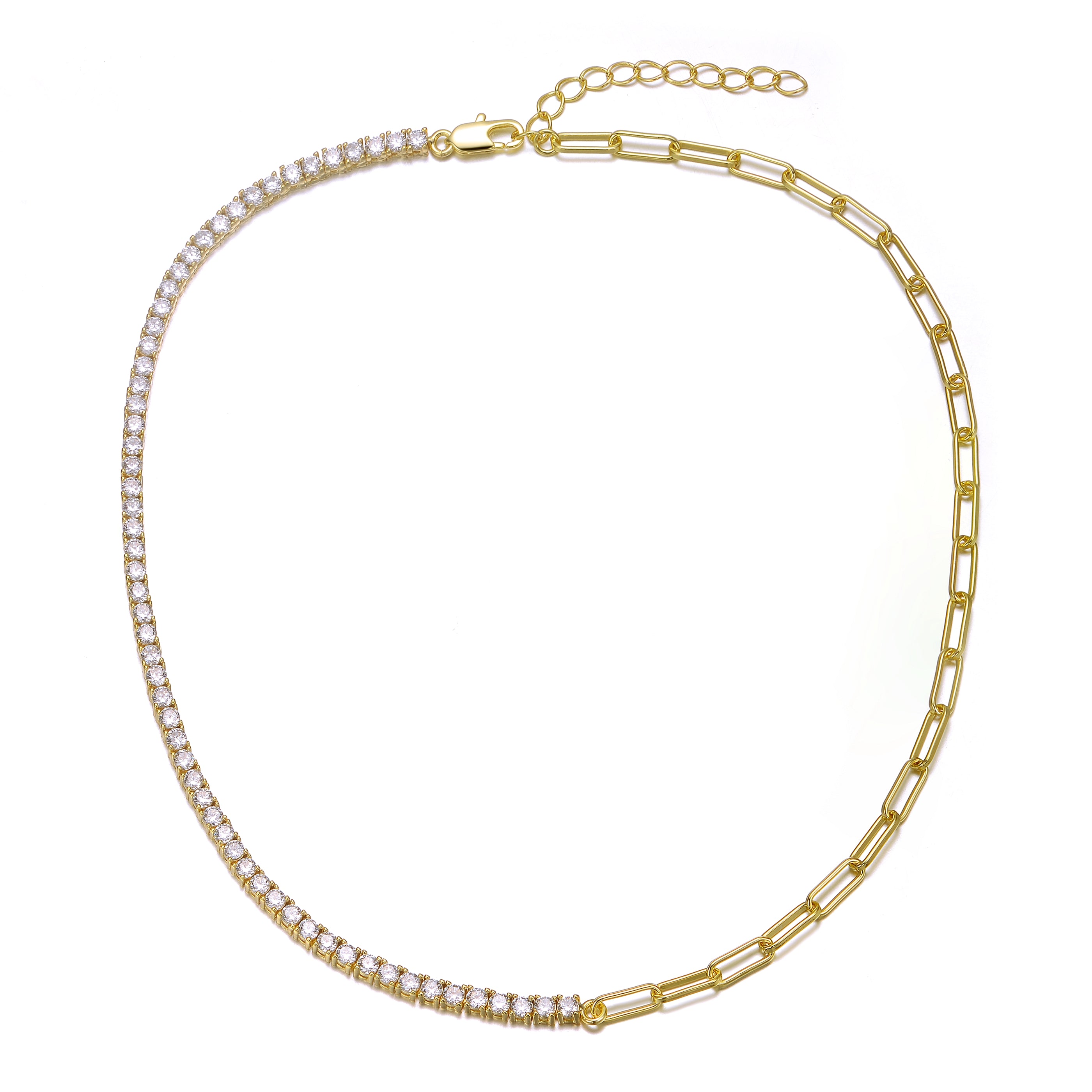 14K Gold Plated with Clear Cubic Zirconia Half Tennis Half Link Necklace
