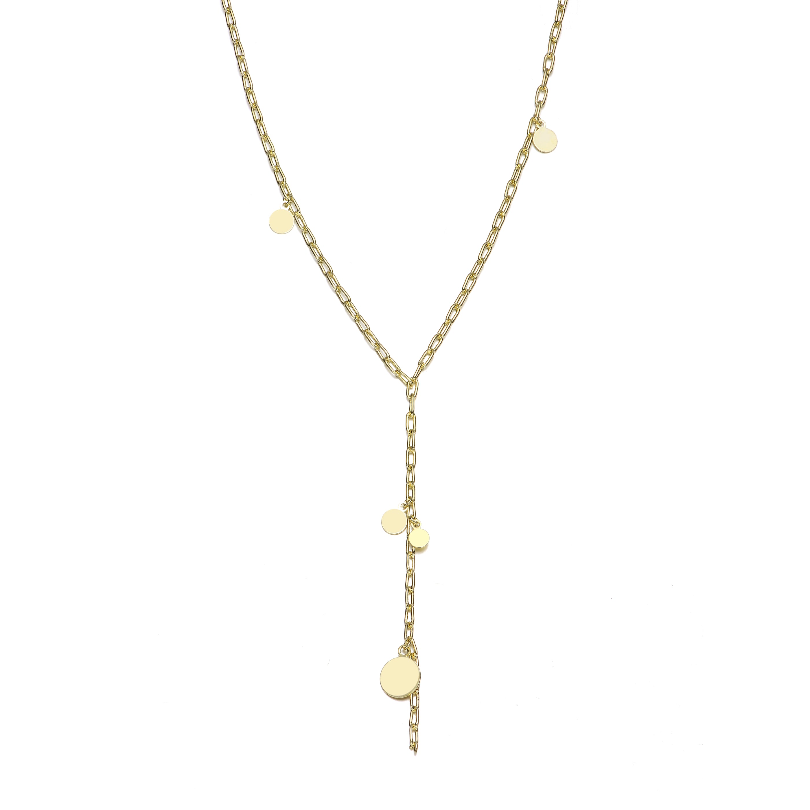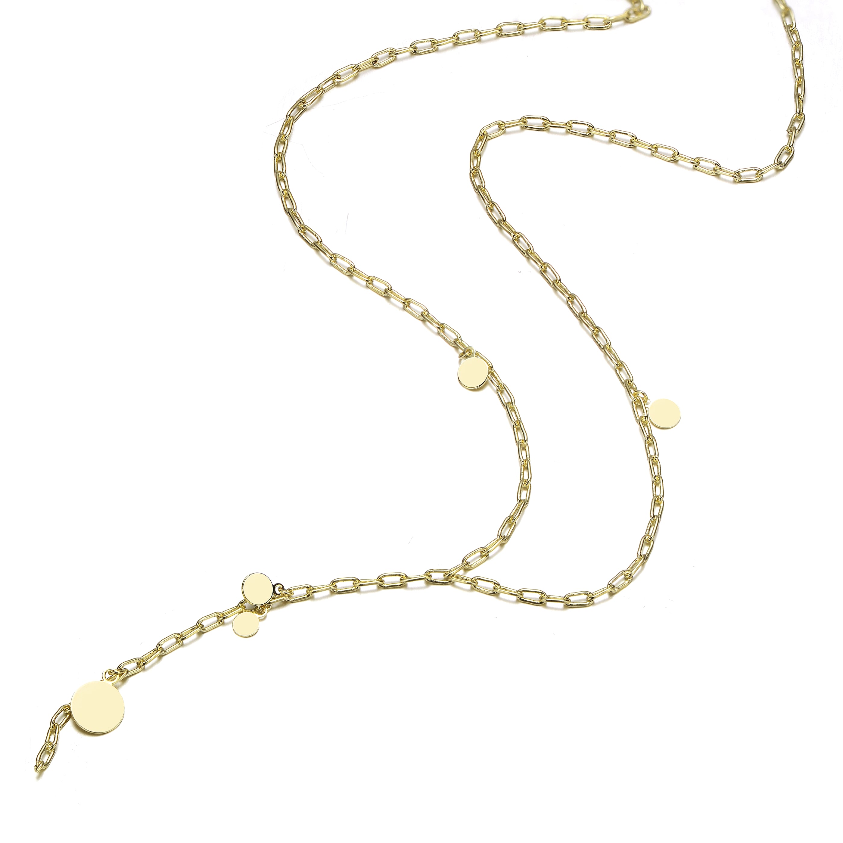 Classy 14K Gold Plated Cubic Zirconia Y Neck Necklace. This stylish item features interesting "y neck" design that is accented with five round bars made out of solid metal, one on the bottom, other on the chain. Crafted with 14K Gold Plating and secure with a spring ring closure. Perfect piece of jewelry for all combinations. These also make a sensational gift for a special birthday or occasion.