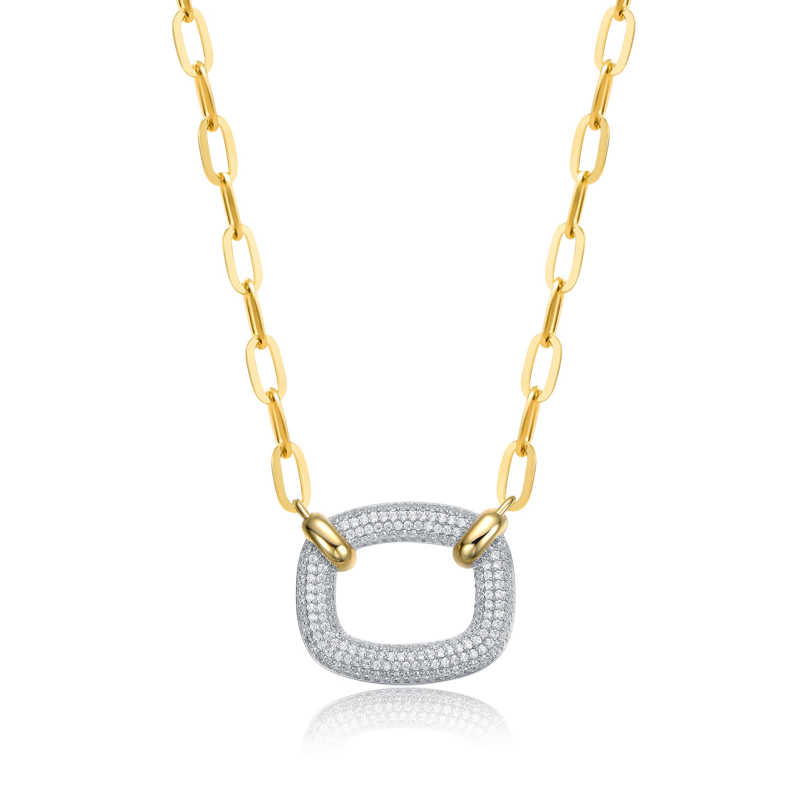 14k Yellow Gold Plated with Clear Cubic Zirconia Square Pendant Necklace