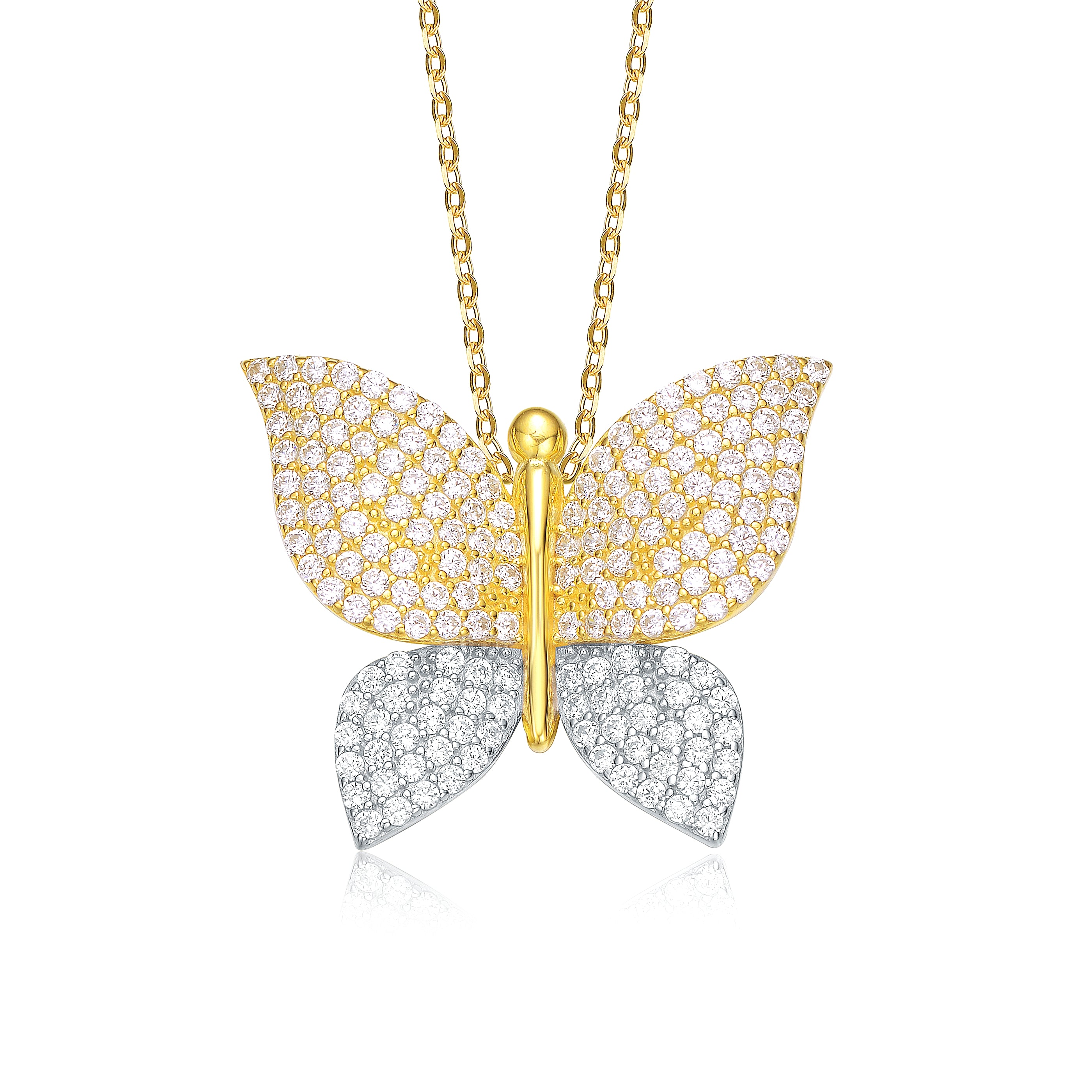 14k Yellow Gold Rhodium-Plated with Cubic Zirconia Butterfly Pendant Necklace