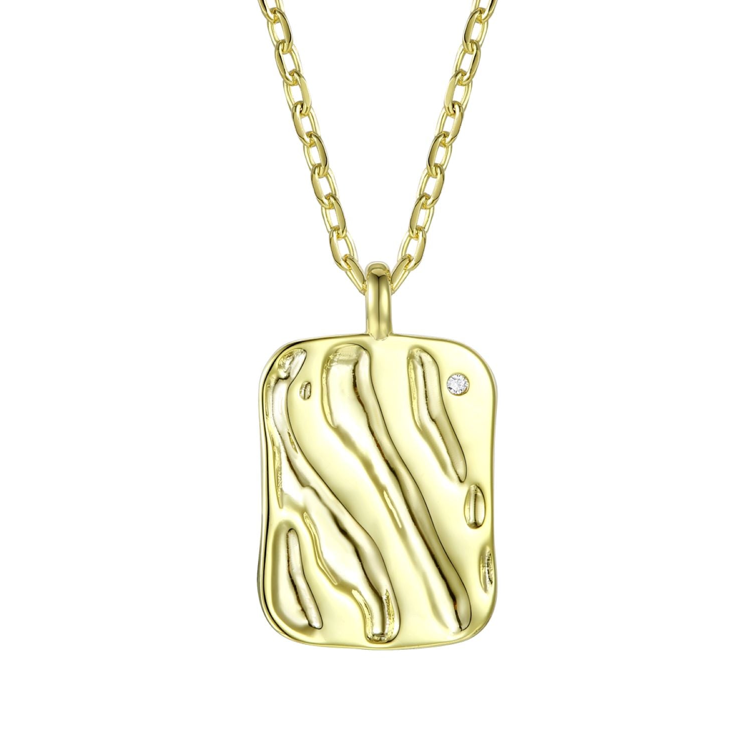 Stylish 14k gold plated square pendant necklace. This pendant features rounded rectangle charm design that is made out of solid metal, with relief structure with bumps and dents. Crafted with 14k gold plating and it is secured with spring ring closure. Perfect piece of jewelry for stylish combinations. This item also makes a great gift as well.