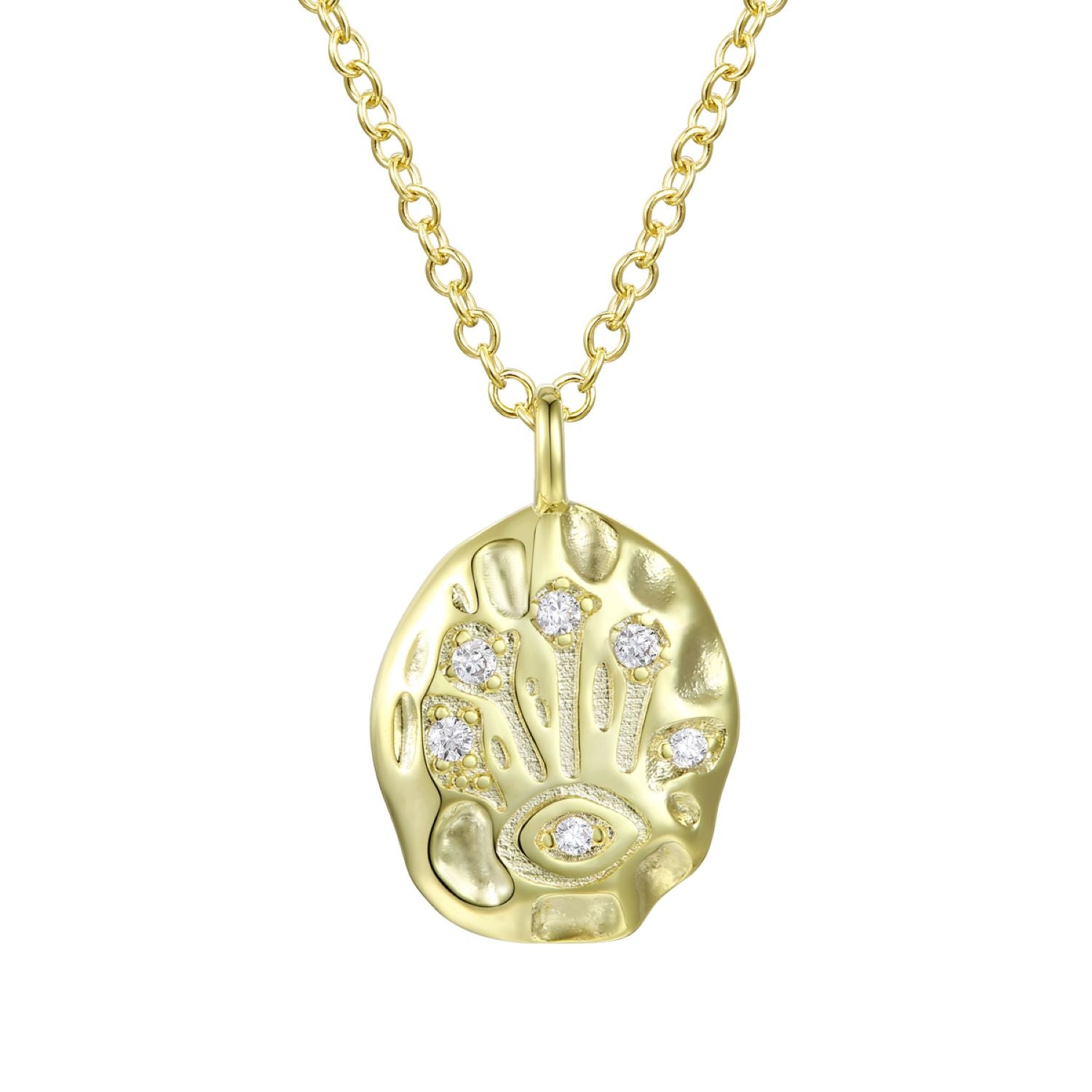 14k Gold Plated Cubic Zirconia Hammered Pendant Necklace