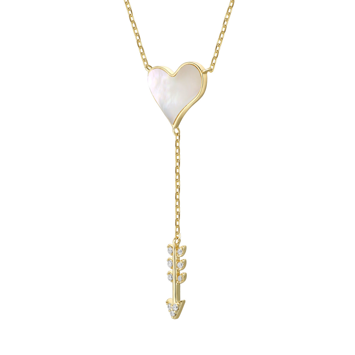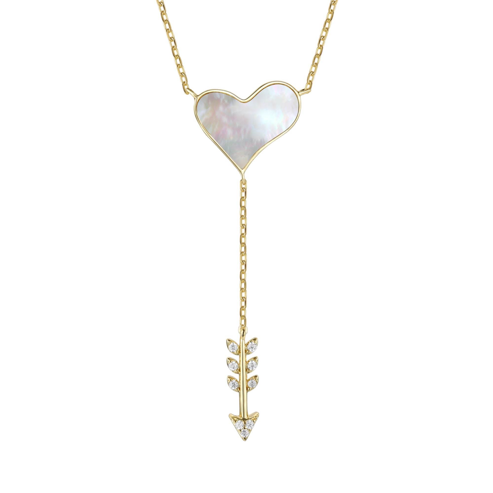 14k Gold Plated Sterling Silver With Diamond Cubic Zirconia & Mother Of Pearl Cupid’s Arrow Heart Y-necklace