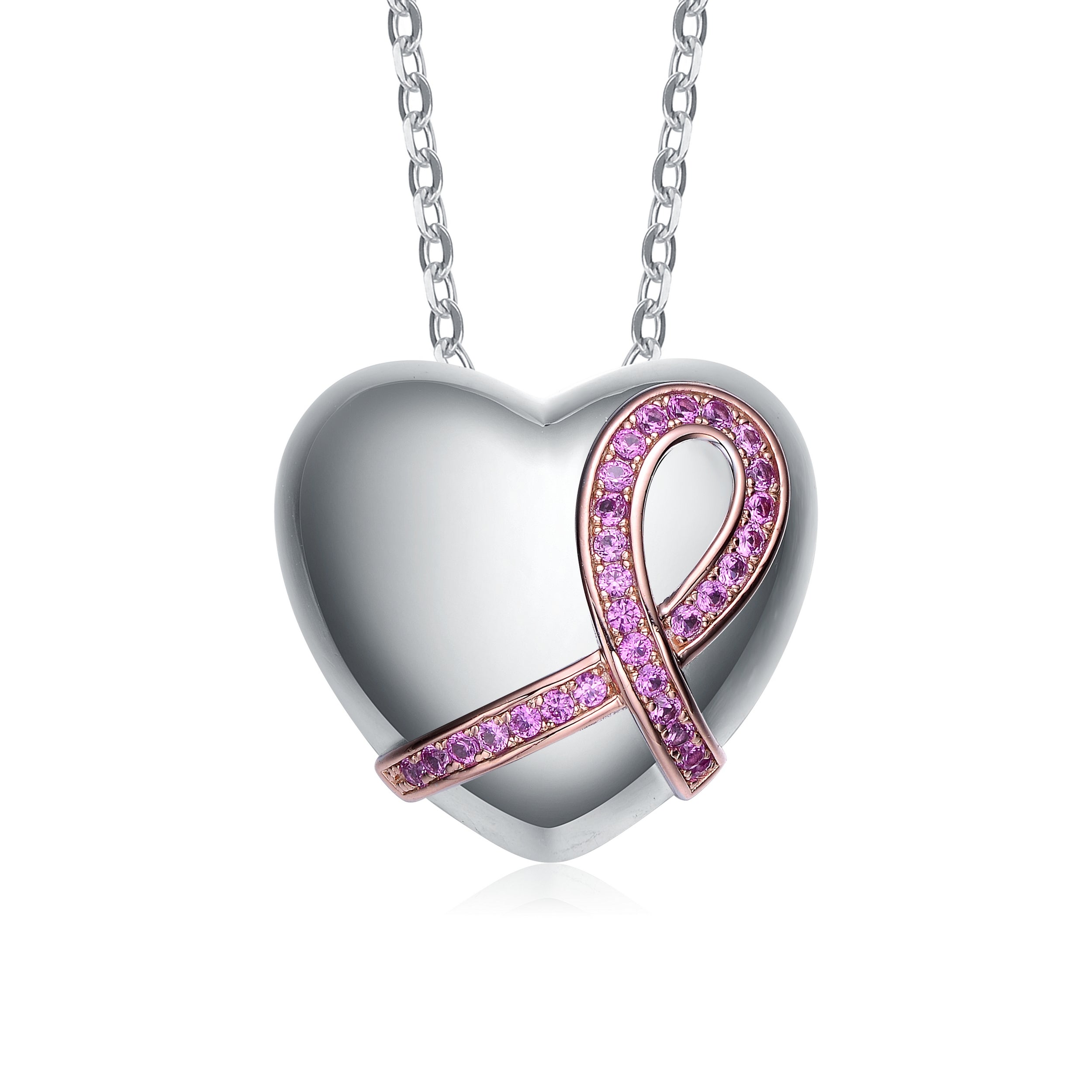 Sterling Silver Two Tone and Pink Cubic Zirconia Heart Necklace