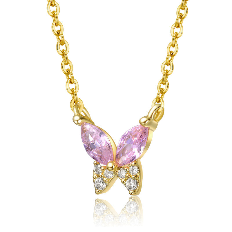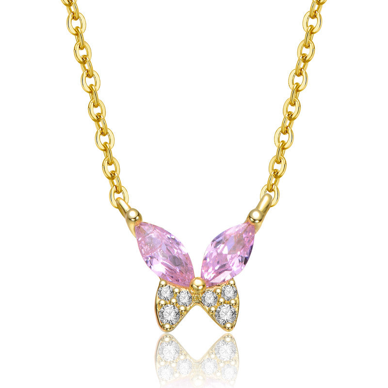 Kids 14k Gold Plated with Pink Cubic Zirconia Butterfly Pendant Necklace