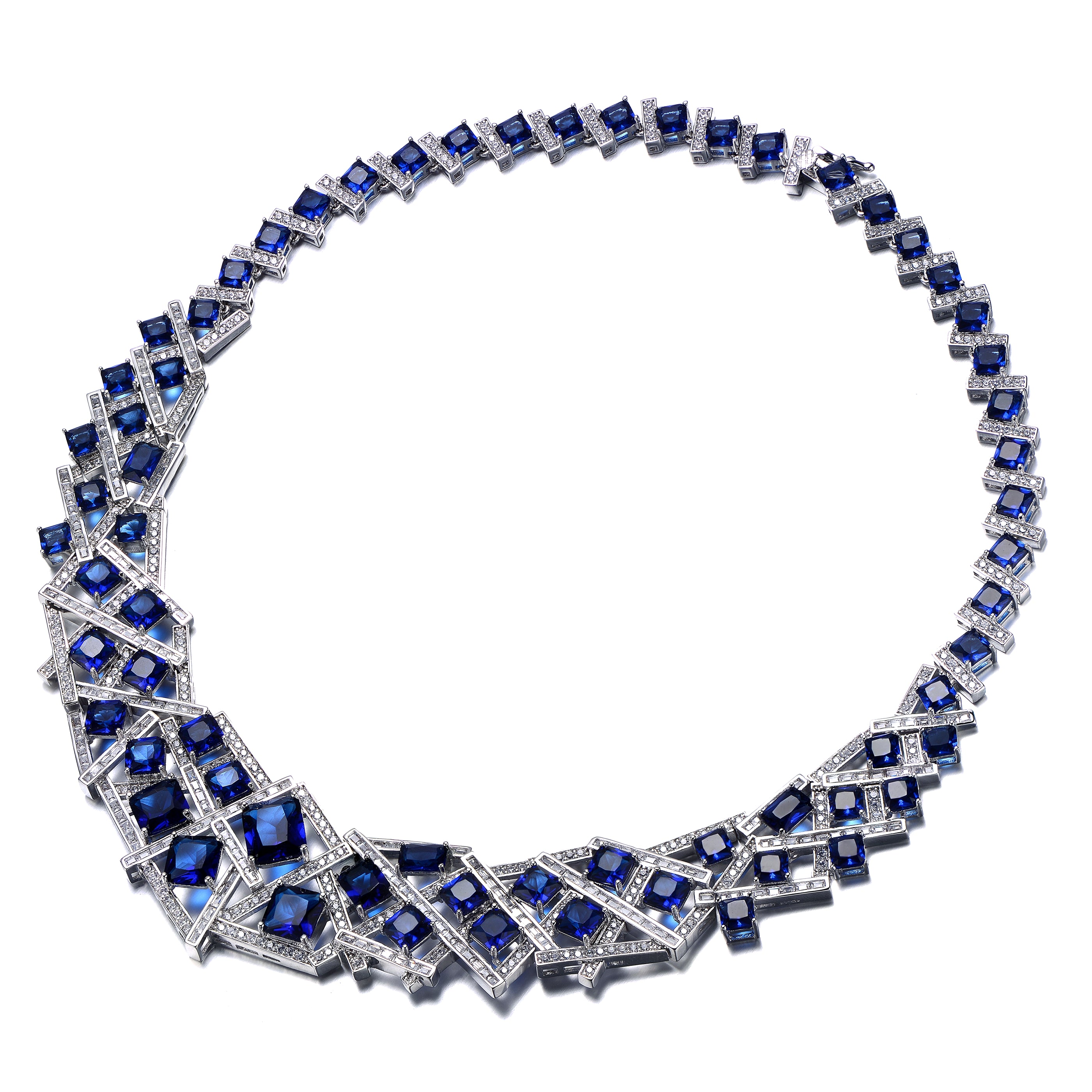 RG 3D Geometric Cluster Basketweave Stack Graduated Eternity Formal Necklace