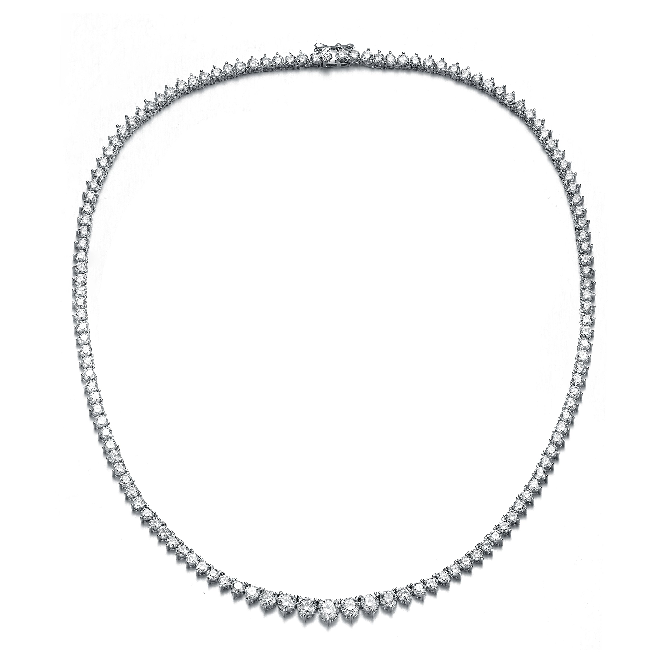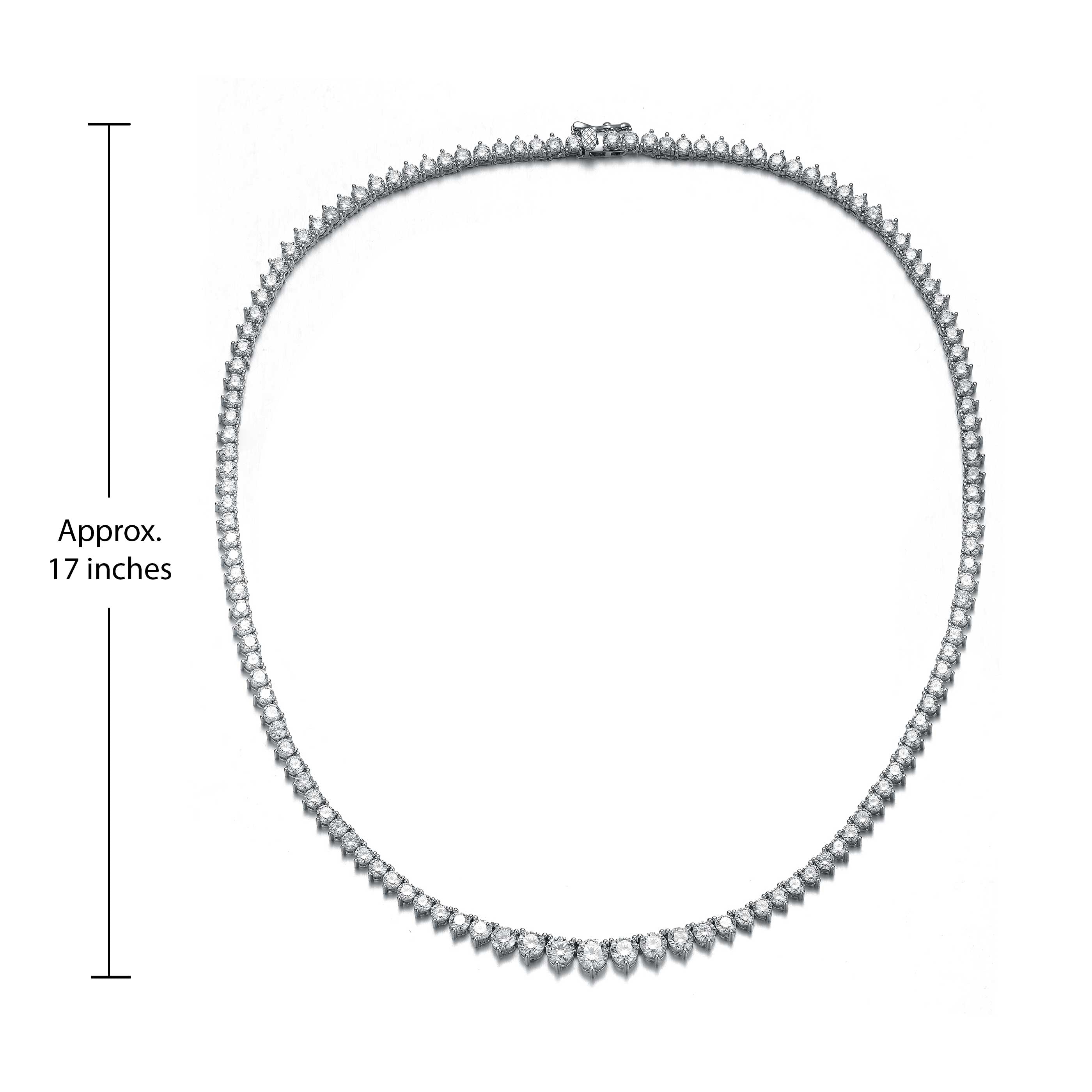 White Gold Plated with Cubic Zirconia Graduated Tennis Chain Necklace