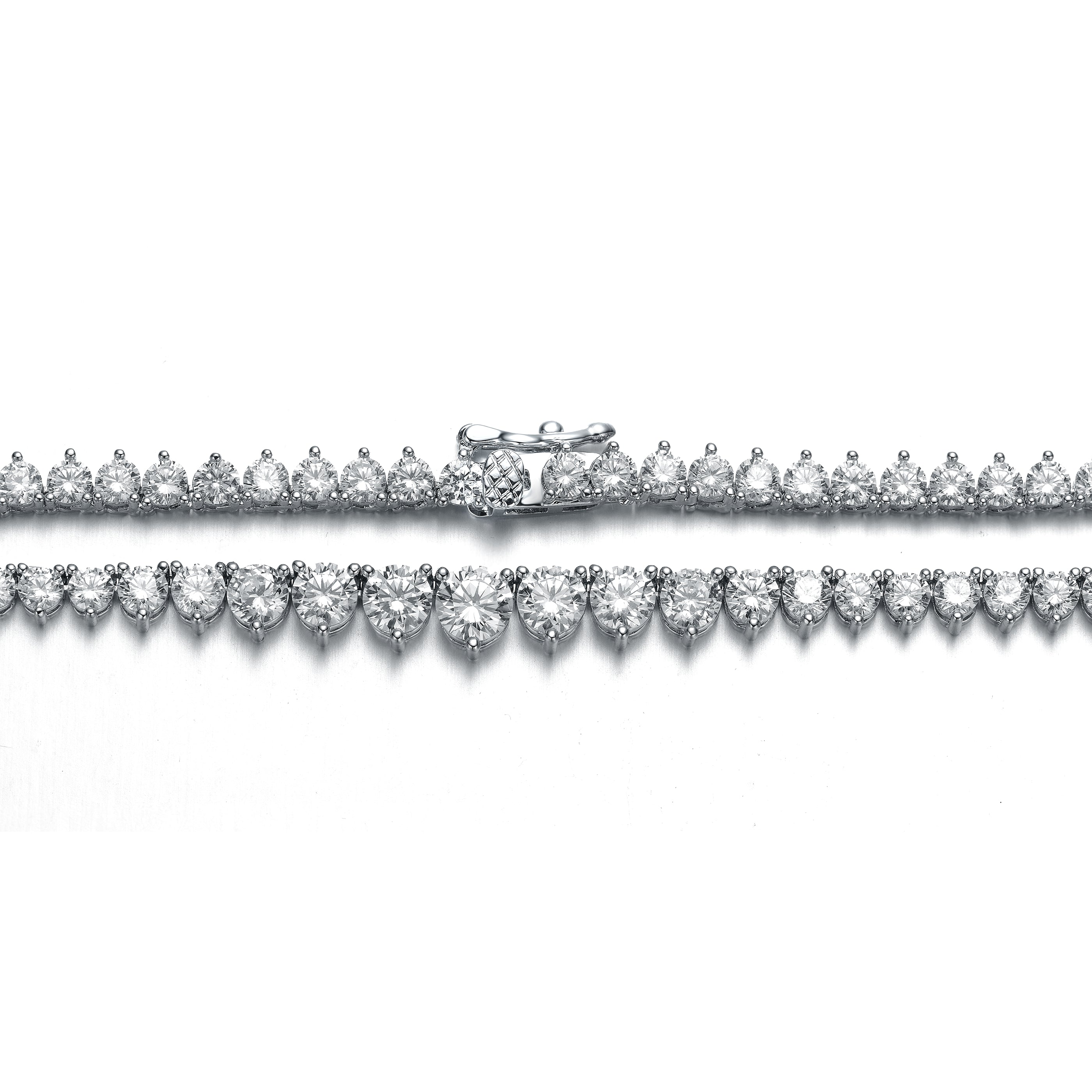 This super-glam necklace will make heads turn with its incredible sparkle! cubic zirconias are set in graduated sizes in rich white gold plating, giving it a stunning display of brilliance and a bright polished shine. A hidden box clasp and figure-eight safeties keep it secure.