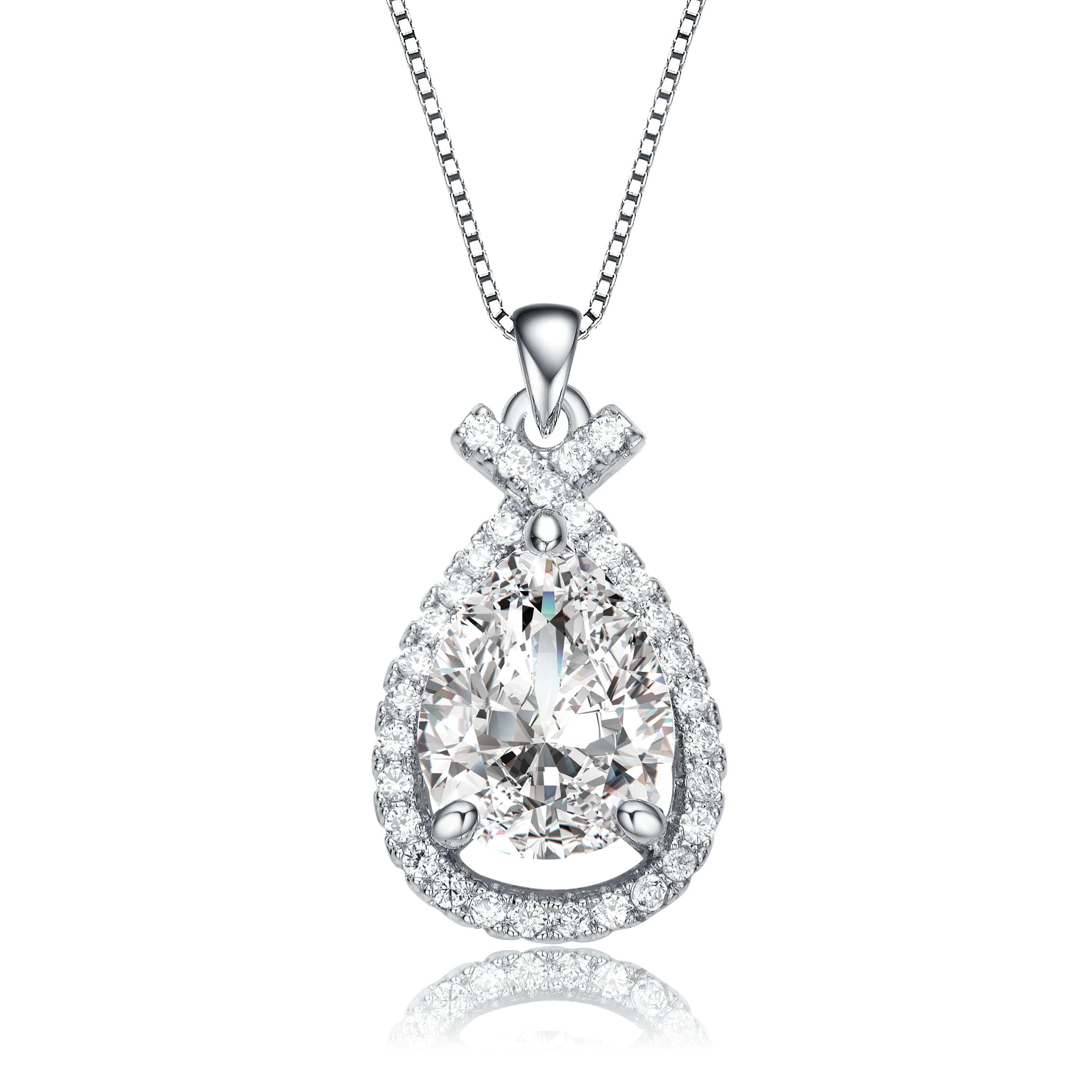 White Gold Plated with Cubic Zirconia Pear Rain Droplet Infinity Love Knot Pendant Necklace