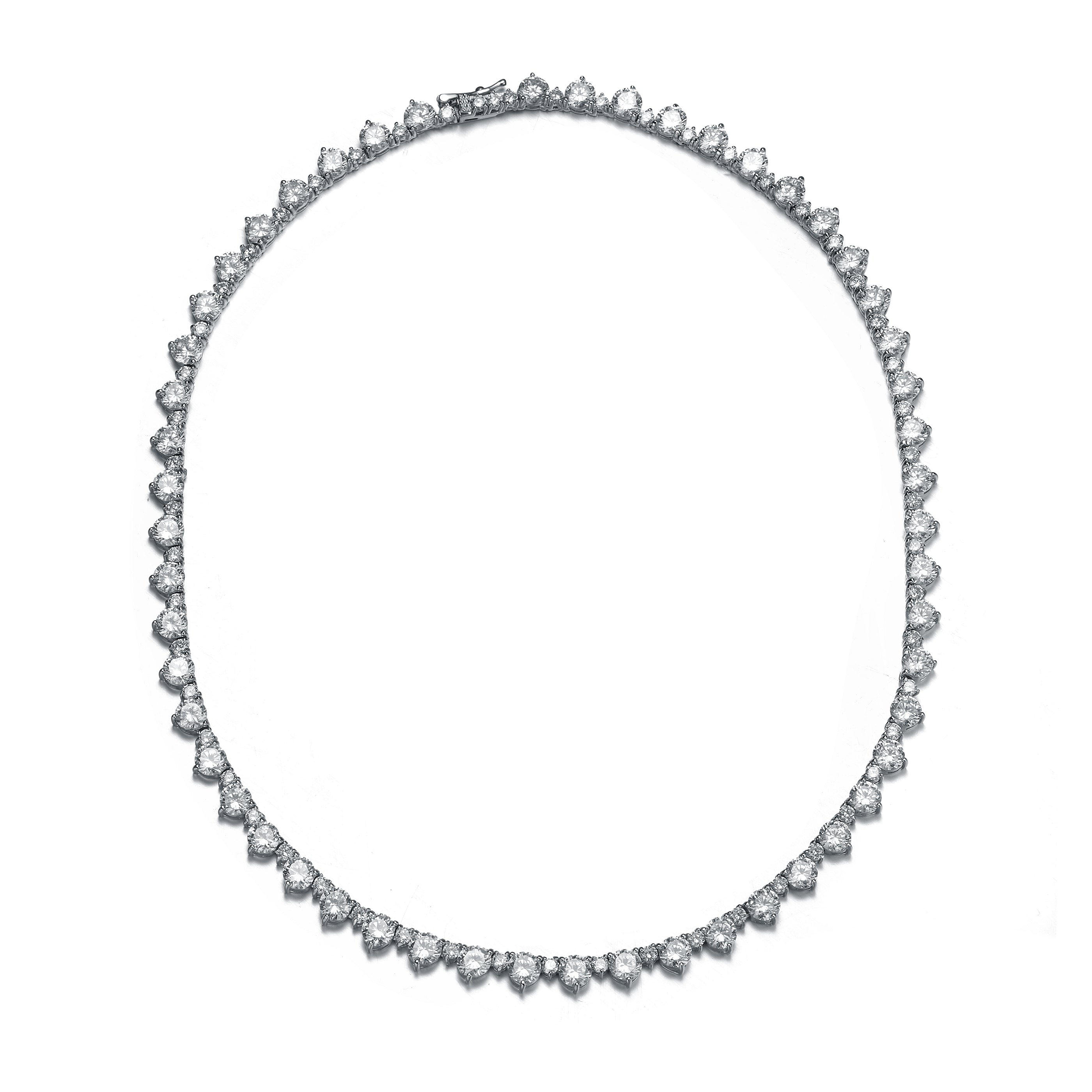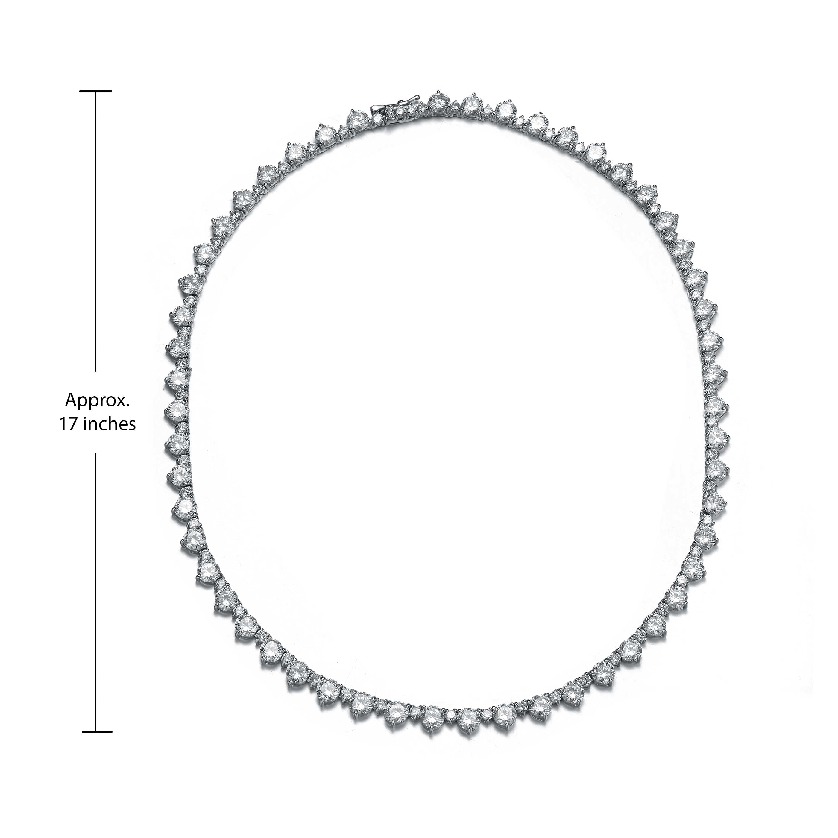 Add the finishing touch to your day or night wardrobe with this glam necklace! Sparkling round brilliant cut cubic zirconias prong set around this white gold plated necklace complemented by the high-shine finish. A hidden box clasp keeps it secure.