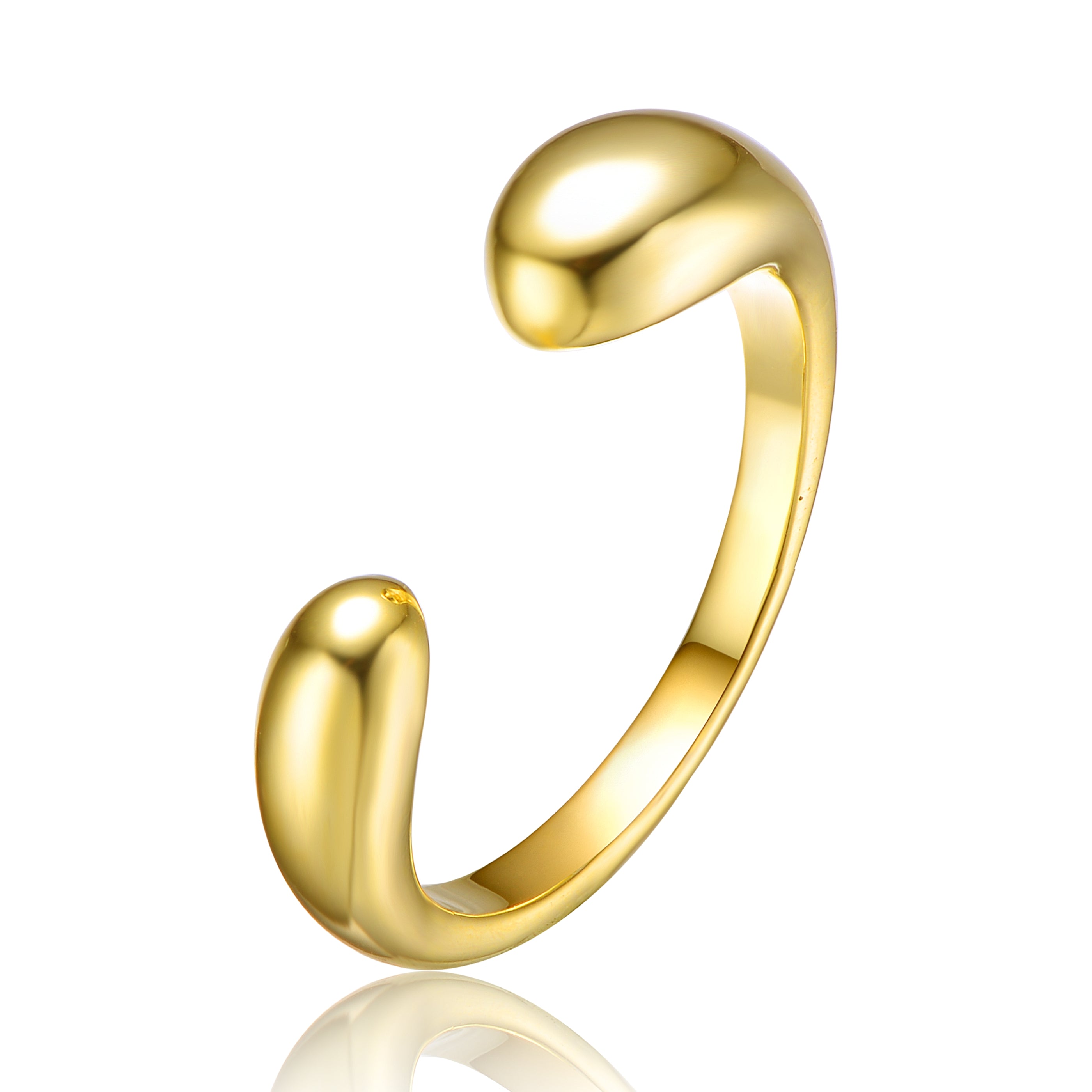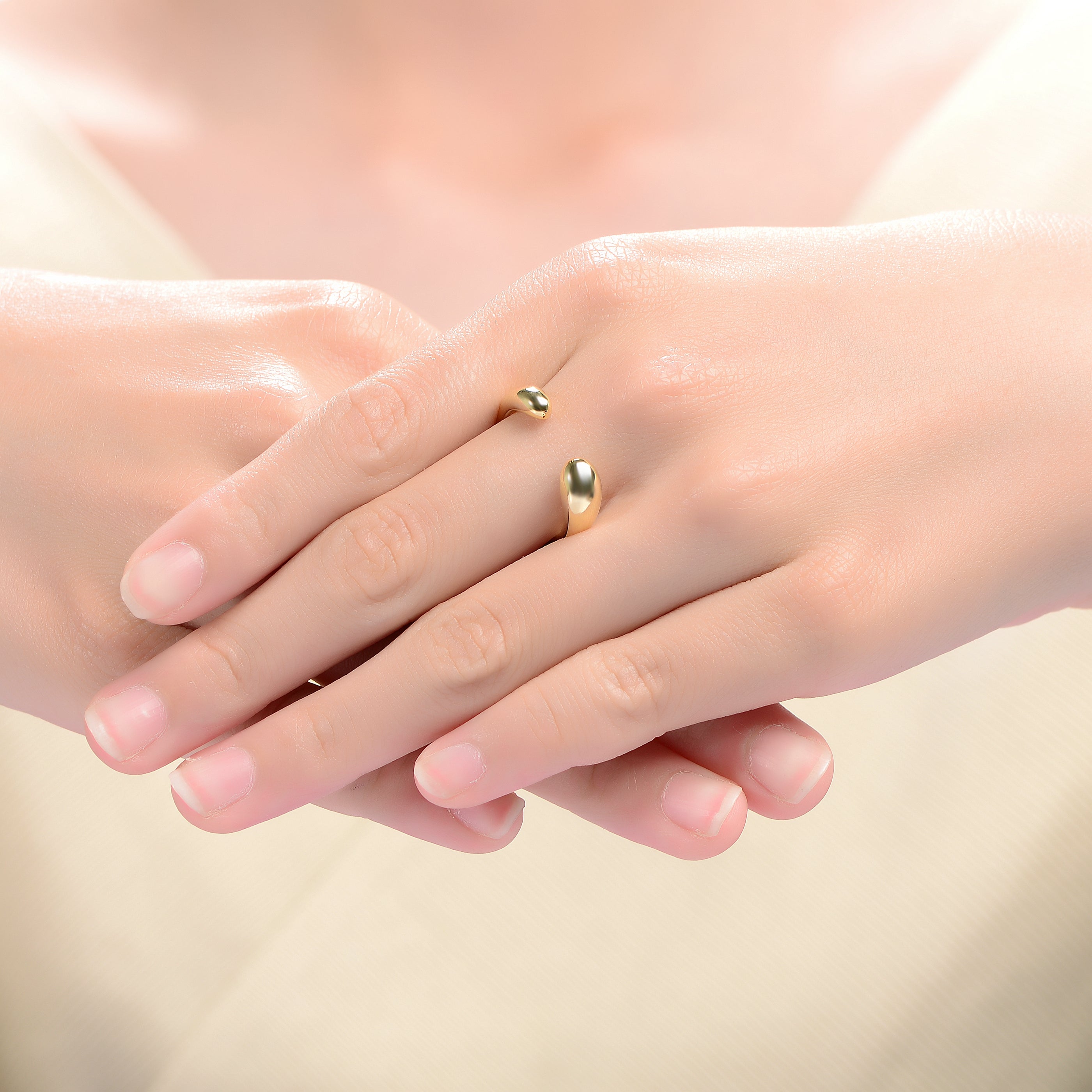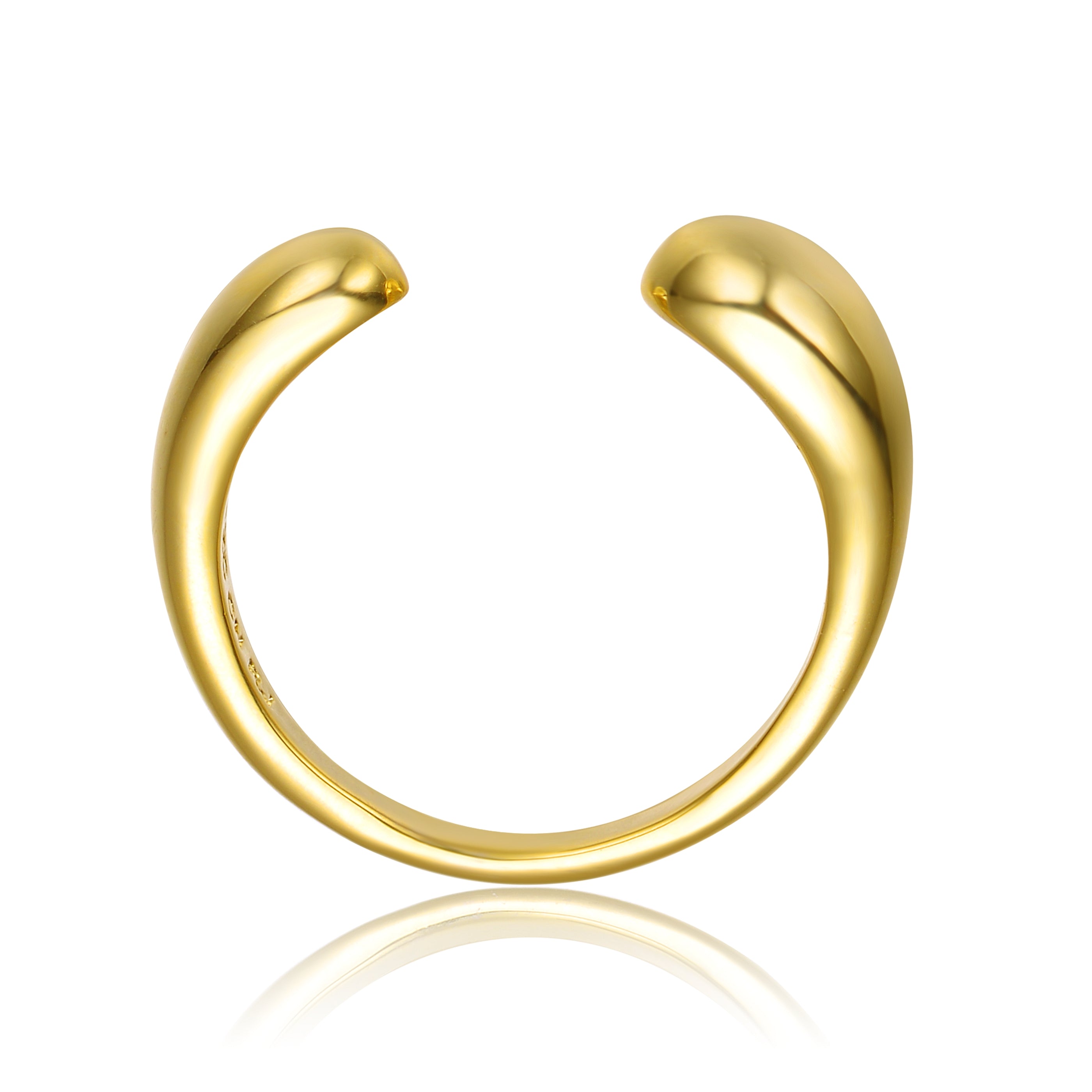 Sophisticated 14K Gold Plated Modern Open Ring. This ring features interesting design made out of one piece of solid metal elegantly curved to form the band, wider on the ends to form bypass alike design. Crafted with 14K Gold Plating and it is available in sizes 6, 7 or 8. It's a unique piece of jewelry for all combinations. occasion.