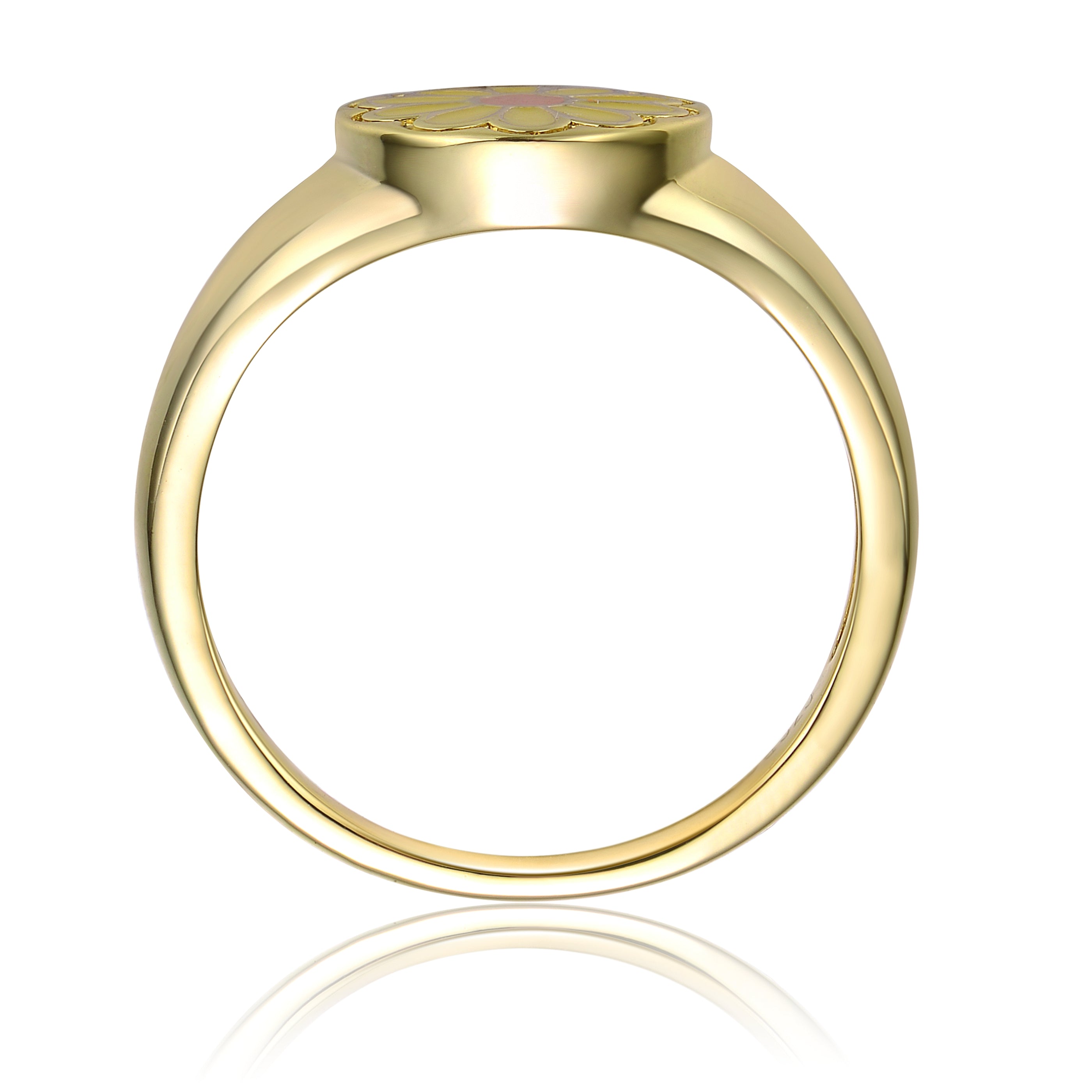 14k Yellow Gold Plated Modern Rings with Yellow Flower Enamel Kids/Teens