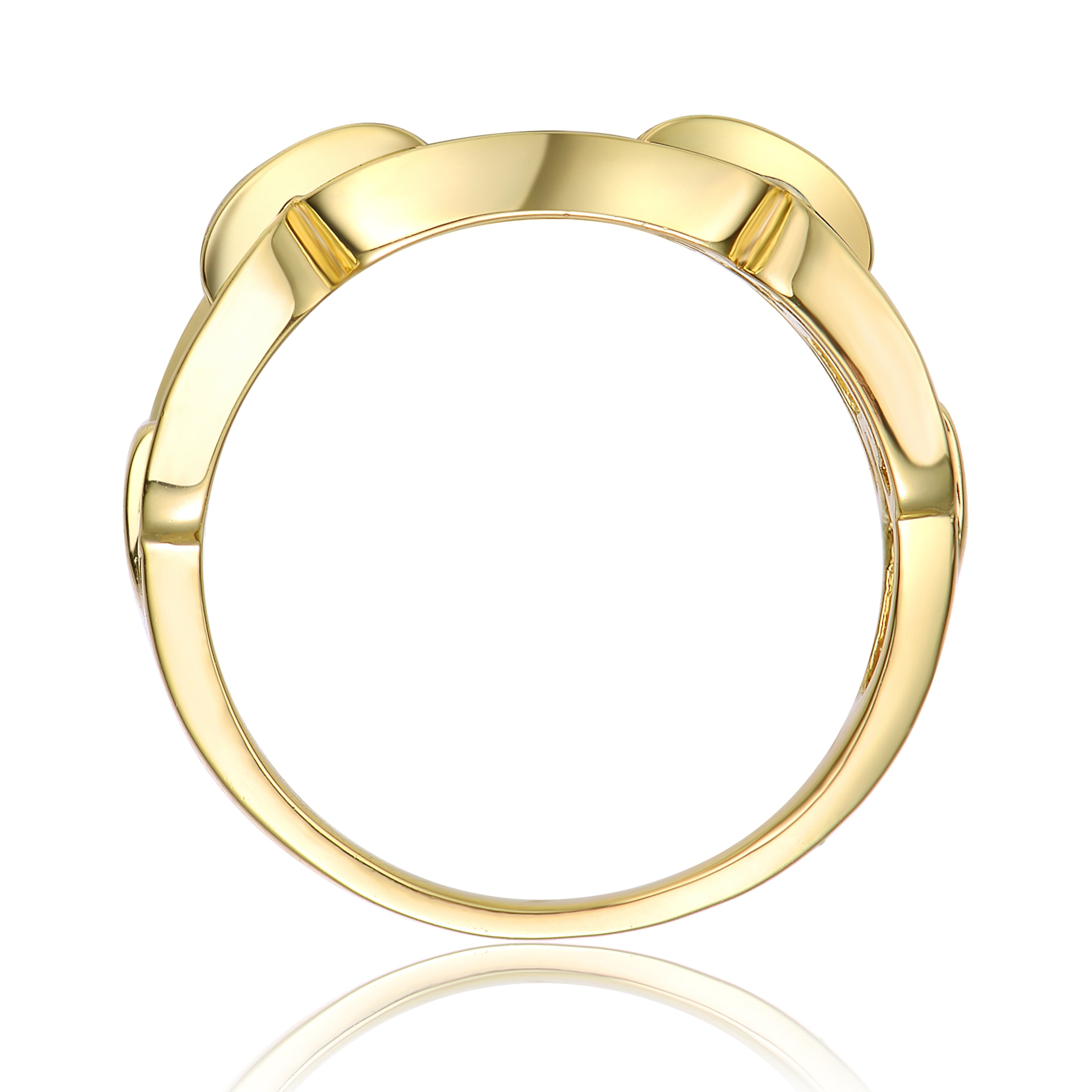14k Yellow Gold Plated with Cubic Zirconia Pave Chain Link Ring. Refresh your stacking ring collection with this brightly polished 14k yellow gold plate chain ring featuring glittering round brilliant cut cubic zirconias pave set on the top. Open spaces lend artistic ambiance to this modern ring, becoming the main focal point of your wardrobe. Add slim bands and statement rings, or wear this chunky top ring solo for a different look each time. Available ring sizes: 6, 7, 8.