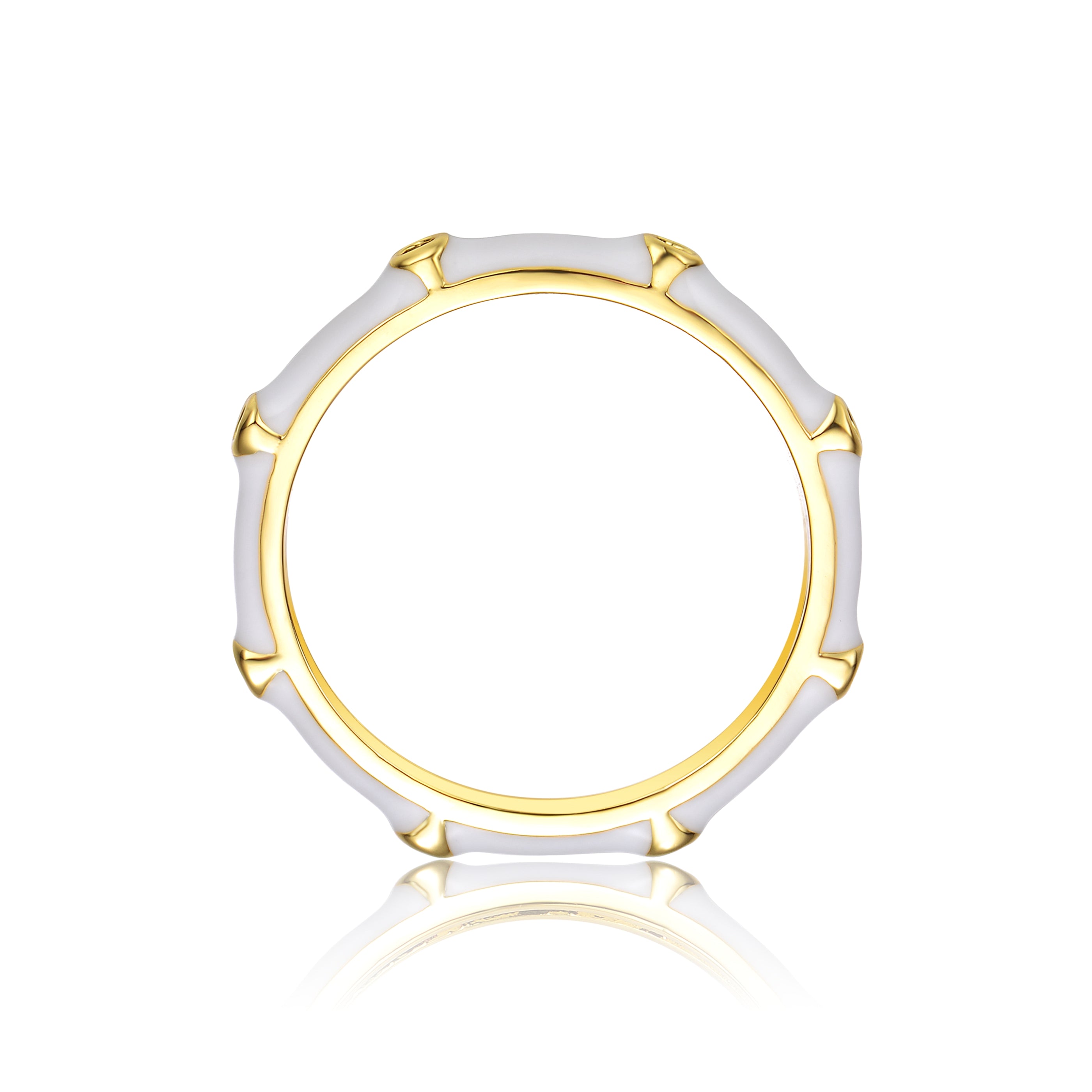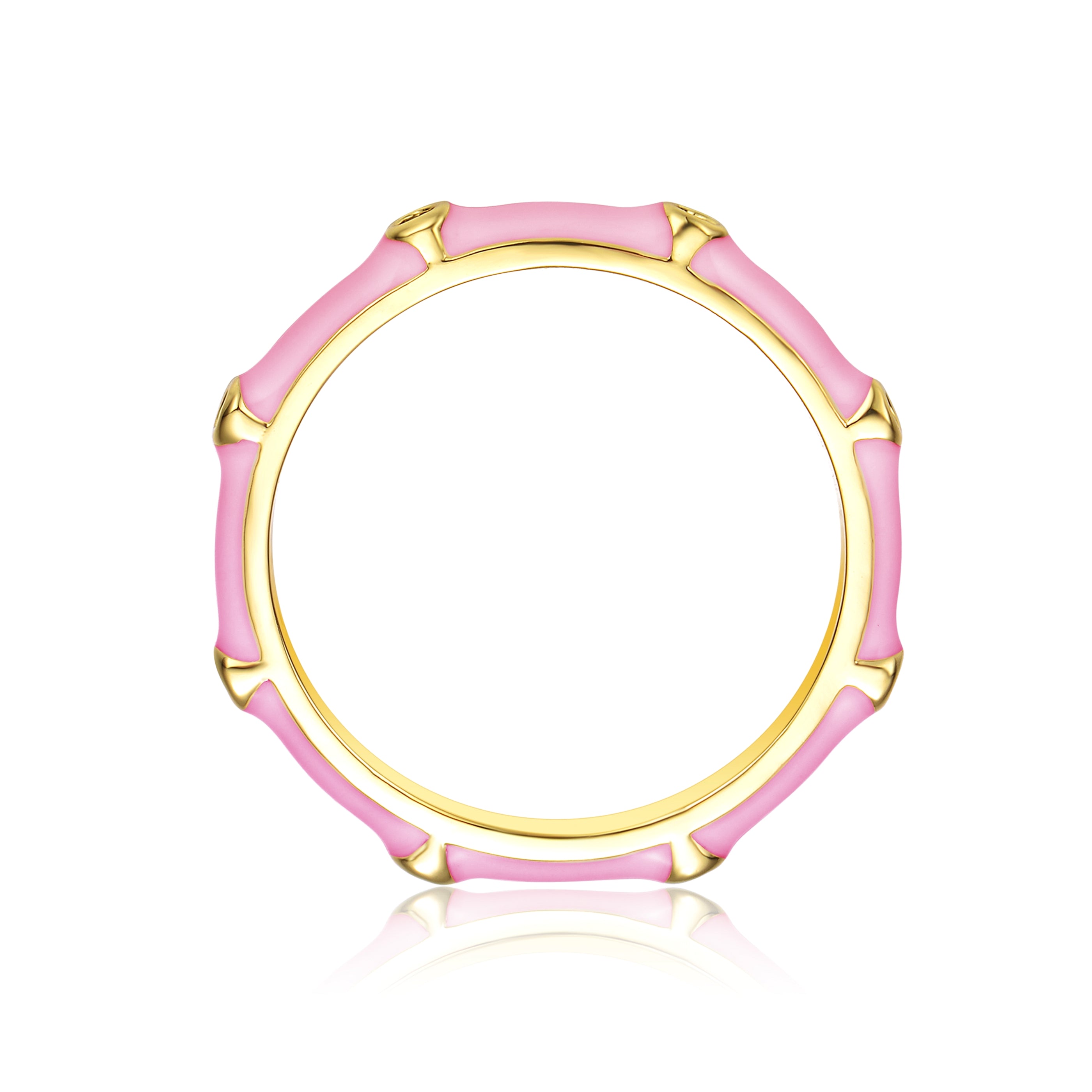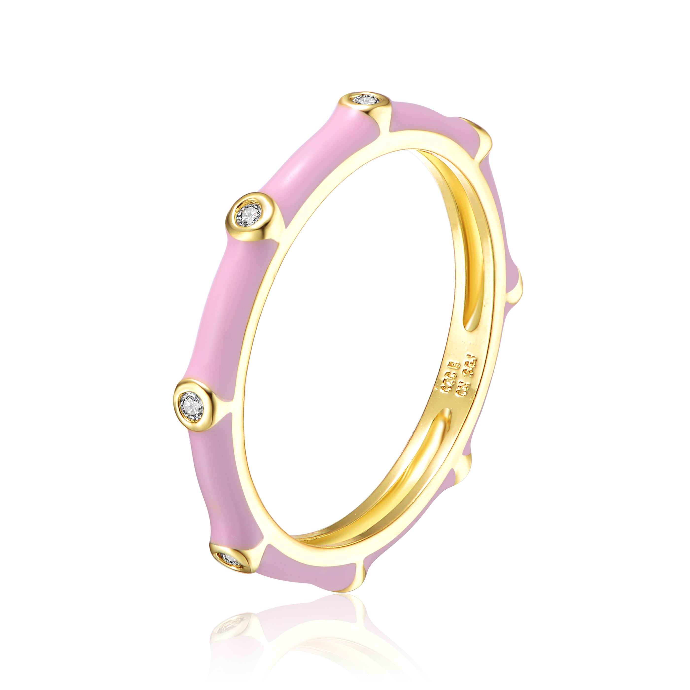 14k Yellow Gold Plated with Cubic Zirconia Pink Enamel Bamboo Kids/Teens Stacking Ring