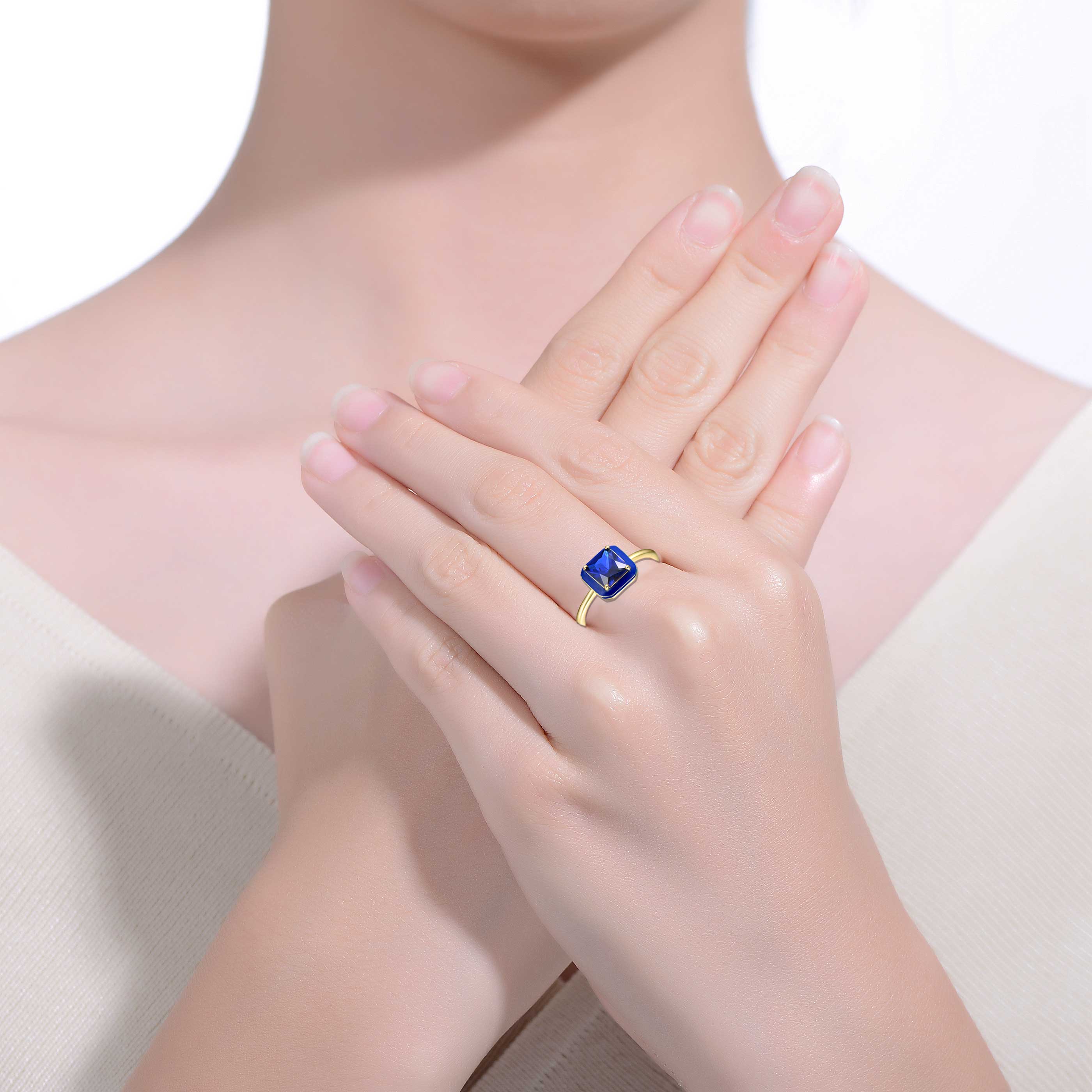 14k Yellow Gold Plated with Sapphire Cubic Zirconia Blue Enamel Radiant Halo Ring