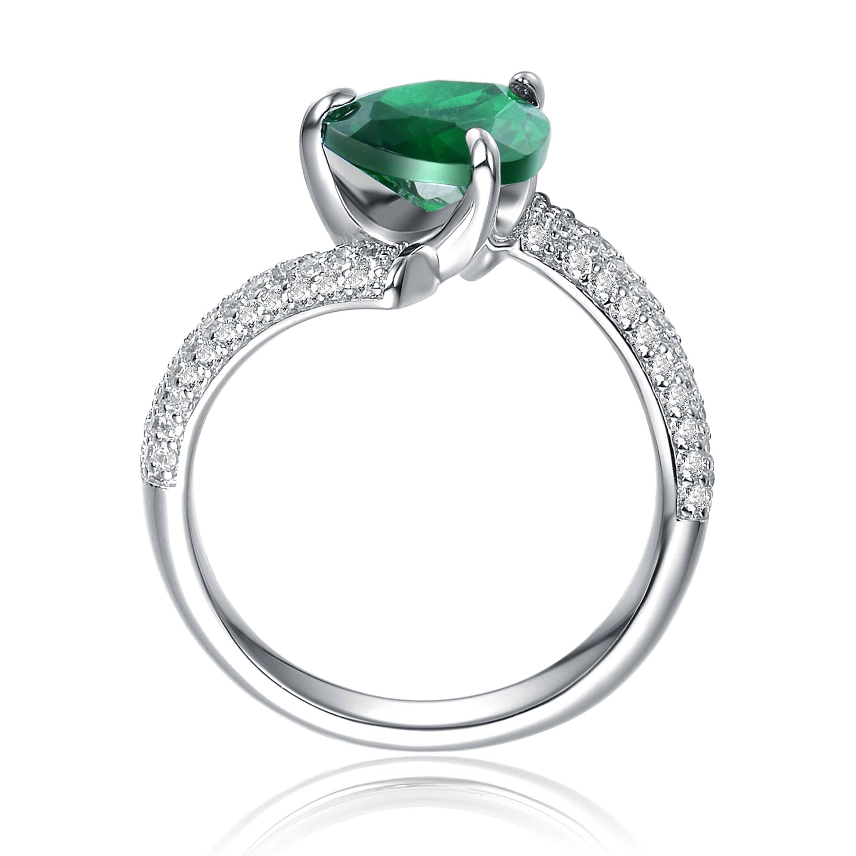 Elegant Rhodium-Plated Emerald Cubic Zirconia Ring