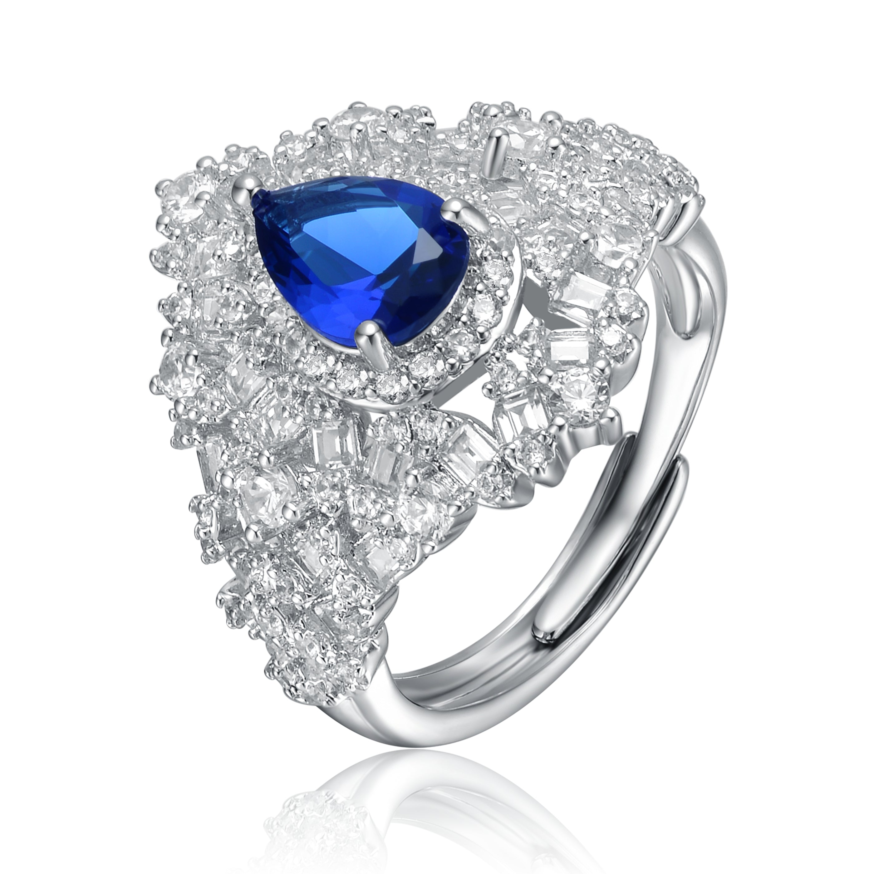 Elegant Rhodium-Plated Sapphire and Clear Cubic Zirconia Ring