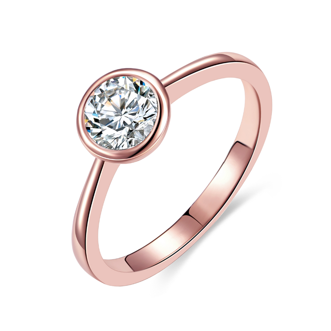Rg White Gold Plated With Diamond Cubic Zirconia Bezel Solitaire Ring