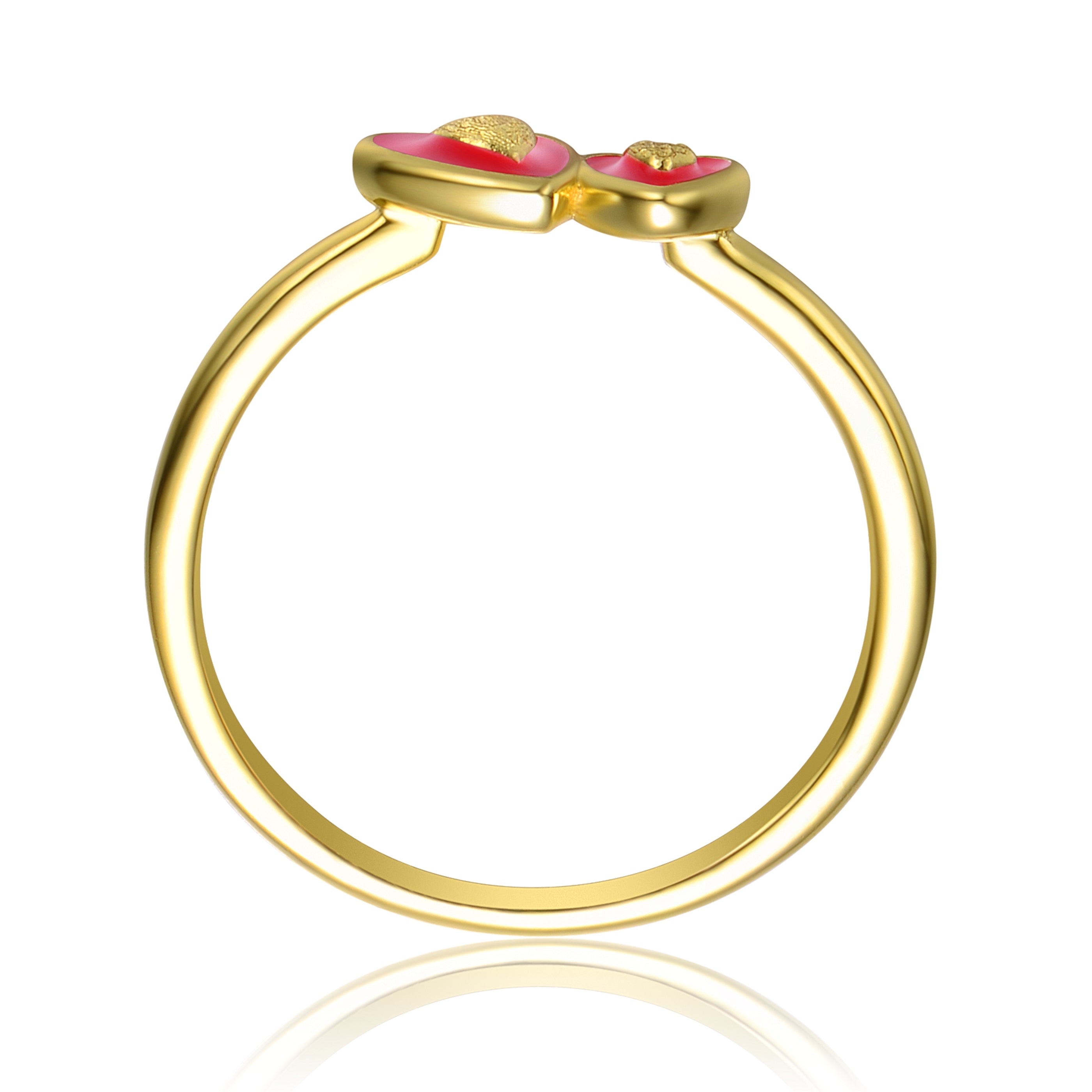 This brightly polished kid’s ring features two red enamel-coated hearts, one bigger and one smaller, denoting mother and child. A slim band adds comfort to this design, making it the perfect keepsake to give to a niece, best friend to your child, and any other youngster celebrating a birthday, Holiday and more with its classic look of sweet little hearts.